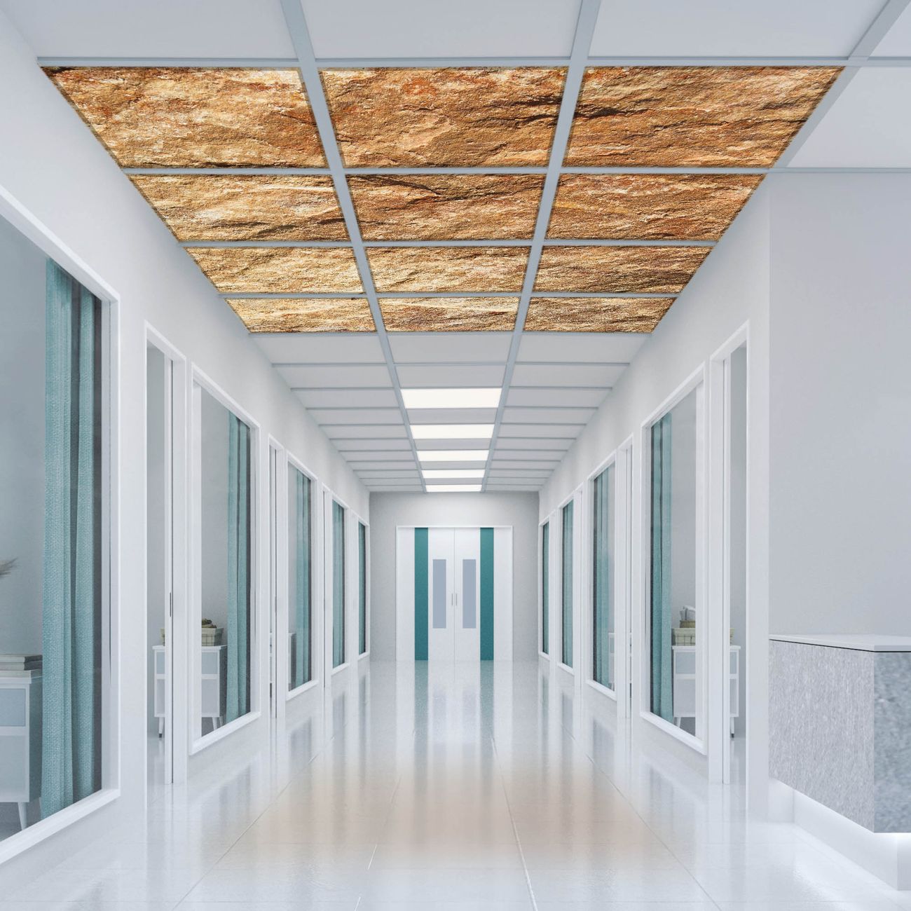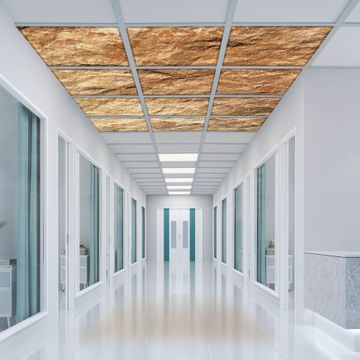 Entdecken Sie unsere vielseitigen Lichtdecken, hier in der Größe 186 x 248cm mit dem Motiv Motiv Steinstruktur - Ihre Beleuchtungslösung für jede Umgebung Beleuchten Sie Ihren Raum nicht nur, sondern schaffen Sie Atmosphäre! Die banjado Lichtdecke verwandelt jeden Ort, ob zu Hause, in Praxen, Büros oder Studios in eine Wohlfühloase. Unsere einzelnen Elemente haben eine genormte Einheitsgröße von 62 x 62cm und können somit in jede gängige Rasterdecken verbaut werden. So finden Sie Ihre passende Ausführung: Gern helfen wir Ihnen, die passende Ausführung zu wählen. Hierfür muss die aktuelle Gegebenheit Ihrer Decke oder Wand beachtet werden. Haben Sie bereits eine Rasterdecke (auch Odenwalddecke genannt)? Hier bestellen Sie lediglich das Motiv + Beleuchtungspanel, denn beides wird in die bereits vorhandene Decke eingelegt. Haben Sie eine glatte Decke mit Lichtauslass oder möchten die Lichtdecke an der Wand befestigen? Hier bestellen Sie bitte Motiv + Beleuchtungspanel + Deckenbefestigung, eine Aufbauanleitung liegt immer bei. Die Lichtdecke kann sowohl an der Decke als auch an der Wand montiert werden, perfekt für kreative Lichtakzente oder alternative Beleuchtungslösungen. Haben Sie bereits eine Lichtdecke und möchten nur das Motiv wechseln? Hier bestellen Sie bitte nur Motiv, der Wechsel ist denkbar einfach. Der Aufbau Ihrer banjado Lichtdecke gestaltet sich unkompliziert, dank einer verständlichen Anleitung, die Ihnen Schritt für Schritt durch den Montageprozess hilft. Für die endgültige Installation und den sicheren Anschluss empfehlen wir die Hinzuziehung eines Fachmanns, um die optimale Funktion und Sicherheit Ihrer Beleuchtung zu gewährleisten. Falls Sie einen Fachmann für die Installation benötigen, geben Sie uns gern Bescheid, wir vermitteln Ihnen gern einen geeigneten Ansprechpartner aus Ihrer Nähe. Steuerung: Steigern Sie Ihr Beleuchtungserlebnis mit der nahtlosen Integration in Ihr Smart Home. Durch die Kompatibilität mit der SmartLife App, Alexa und Google Assistant wird Ihr Smartphone zur zentralen Steuerungseinheit. Ihr Handy fungiert hierbei sozusagen als Fernbedienung. Legen Sie individuelle Lichtszenen in der App fest, die bei Aktivierung über den Wand-Ein-/Ausschalter immer wieder abgerufen werden können ohne Handy. Mit der Szenenfunktion in der Smart App können Sie die Beleuchtung personalisieren und steuern, sodass sie auf Ihre individuellen Bedürfnisse, Tagesrhythmus und Stimmung zugeschnitten ist. Beispielsweise können Sie sich in der Morgendämmerung durch ein sanftes Licht wecken lassen oder das Licht der Praxis werktags um 7 Uhr automatisch einschalten lassen. Dieses kann dann natürlich auch zu einer bestimmten Zeit automatisch ausgeschaltet werden. Motivwahl: Diese einzigartige Lichtdecke zeichnet sich durch ihre Fähigkeit aus, die Lichtfarbe je nach gewähltem Motiv anzupassen - ein Baum wirft ein sanftes grünes Licht, während eine Wolkendecke Ihren Raum in ein beruhigendes blaues Leuchten hüllt. Berücksichtigen Sie dies bitte bei Ihrer Motivauswahl. Sie können das Motiv jederzeit ohne großen Aufwand austauschen, ob nach Jahreszeit oder anderem Anlass, unsere Auswahl lässt kaum Wünsche offen. Wir fertigen Ihnen gern eine personalisierte Lichtdecke mit einem eigenen Motiv oder Logo oder Foto, schreiben Sie uns jederzeit an. Technische Daten: Das Motiv ist auf einer 4mm starken Acrylglas Scheibe aufgebracht, das Gesamtgewicht Ihrer Ausführung beträgt 53,1kg. Die Farbtemperatur lässt sich frei einstellen von 3000 bis 6000 Kelvin, damit können Sie stufenlos zwischen warmweiß, neutralweiß und kaltweiß wählen. Die Gesamtleistung bei Ihrer gewählten Ausführung beträgt 480W. Der Lichtstrom beträgt 3600 Lumen, die Nennspannung 230 V. Die Lichtdecke ist mit Schutzart IP20 für den Innenbereich konzipiert und sollte nicht im Nassbereich verwendet werden.
