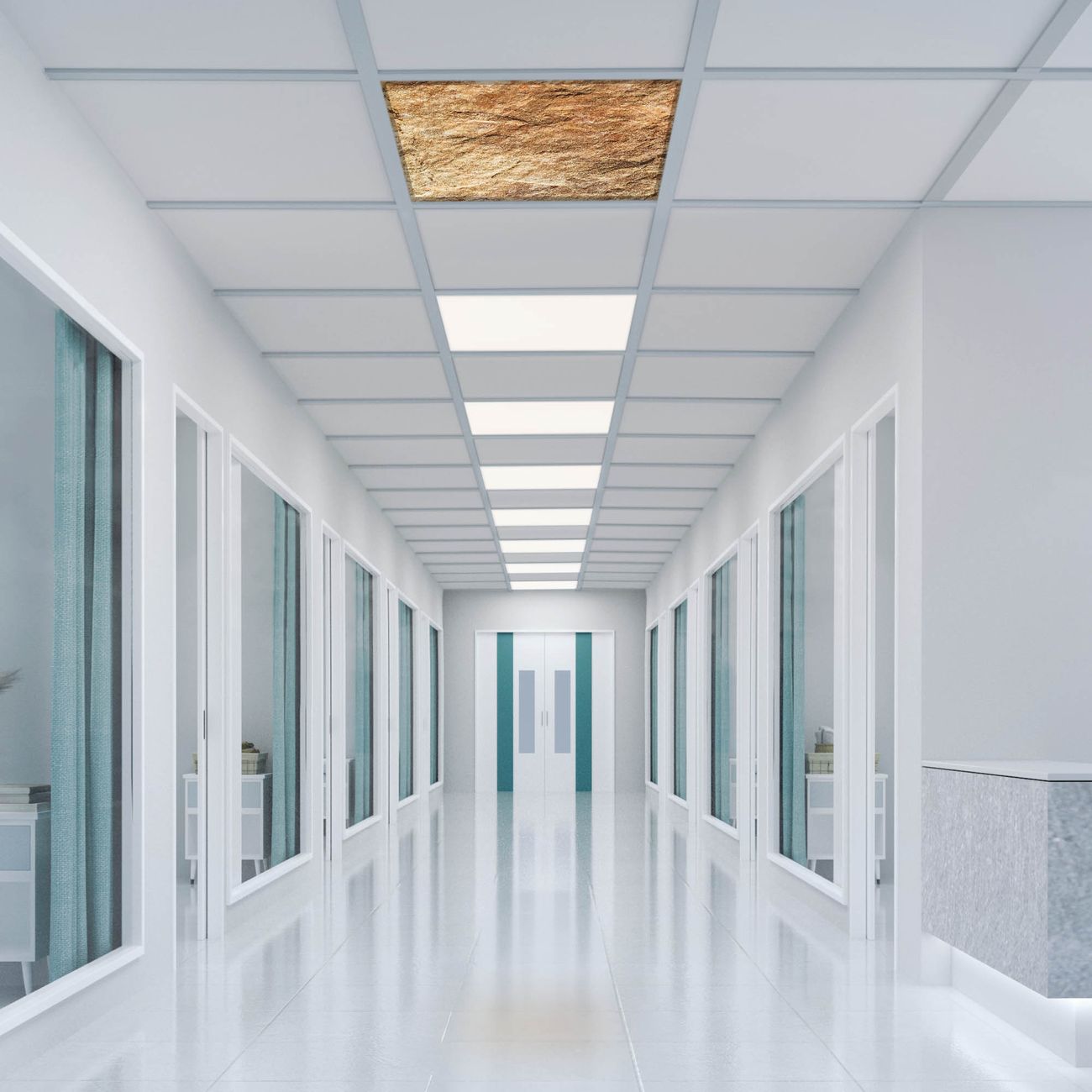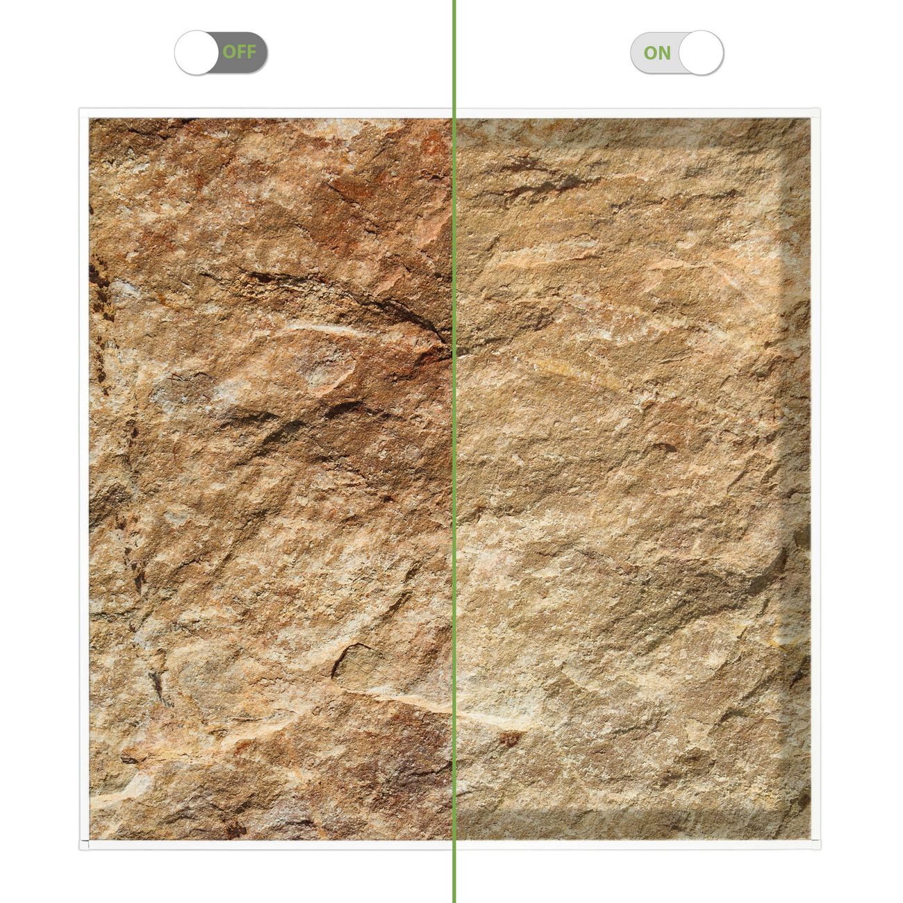 Entdecken Sie unsere vielseitigen Lichtdecken, hier in der Größe 62 x 62cm mit dem Motiv Motiv Steinstruktur - Ihre Beleuchtungslösung für jede Umgebung Beleuchten Sie Ihren Raum nicht nur, sondern schaffen Sie Atmosphäre! Die banjado Lichtdecke verwandelt jeden Ort, ob zu Hause, in Praxen, Büros oder Studios in eine Wohlfühloase. Unsere einzelnen Elemente haben eine genormte Einheitsgröße von 62 x 62cm und können somit in jede gängige Rasterdecken verbaut werden. So finden Sie Ihre passende Ausführung: Gern helfen wir Ihnen, die passende Ausführung zu wählen. Hierfür muss die aktuelle Gegebenheit Ihrer Decke oder Wand beachtet werden. Haben Sie bereits eine Rasterdecke (auch Odenwalddecke genannt)? Hier bestellen Sie lediglich das Motiv + Beleuchtungspanel, denn beides wird in die bereits vorhandene Decke eingelegt. Haben Sie eine glatte Decke mit Lichtauslass oder möchten die Lichtdecke an der Wand befestigen? Hier bestellen Sie bitte Motiv + Beleuchtungspanel + Deckenbefestigung, eine Aufbauanleitung liegt immer bei. Die Lichtdecke kann sowohl an der Decke als auch an der Wand montiert werden, perfekt für kreative Lichtakzente oder alternative Beleuchtungslösungen. Haben Sie bereits eine Lichtdecke und möchten nur das Motiv wechseln? Hier bestellen Sie bitte nur Motiv, der Wechsel ist denkbar einfach. Der Aufbau Ihrer banjado Lichtdecke gestaltet sich unkompliziert, dank einer verständlichen Anleitung, die Ihnen Schritt für Schritt durch den Montageprozess hilft. Für die endgültige Installation und den sicheren Anschluss empfehlen wir die Hinzuziehung eines Fachmanns, um die optimale Funktion und Sicherheit Ihrer Beleuchtung zu gewährleisten. Falls Sie einen Fachmann für die Installation benötigen, geben Sie uns gern Bescheid, wir vermitteln Ihnen gern einen geeigneten Ansprechpartner aus Ihrer Nähe. Steuerung: Steigern Sie Ihr Beleuchtungserlebnis mit der nahtlosen Integration in Ihr Smart Home. Durch die Kompatibilität mit der SmartLife App, Alexa und Google Assistant wird Ihr Smartphone zur zentralen Steuerungseinheit. Ihr Handy fungiert hierbei sozusagen als Fernbedienung. Legen Sie individuelle Lichtszenen in der App fest, die bei Aktivierung über den Wand-Ein-/Ausschalter immer wieder abgerufen werden können ohne Handy. Mit der Szenenfunktion in der Smart App können Sie die Beleuchtung personalisieren und steuern, sodass sie auf Ihre individuellen Bedürfnisse, Tagesrhythmus und Stimmung zugeschnitten ist. Beispielsweise können Sie sich in der Morgendämmerung durch ein sanftes Licht wecken lassen oder das Licht der Praxis werktags um 7 Uhr automatisch einschalten lassen. Dieses kann dann natürlich auch zu einer bestimmten Zeit automatisch ausgeschaltet werden. Motivwahl: Diese einzigartige Lichtdecke zeichnet sich durch ihre Fähigkeit aus, die Lichtfarbe je nach gewähltem Motiv anzupassen - ein Baum wirft ein sanftes grünes Licht, während eine Wolkendecke Ihren Raum in ein beruhigendes blaues Leuchten hüllt. Berücksichtigen Sie dies bitte bei Ihrer Motivauswahl. Sie können das Motiv jederzeit ohne großen Aufwand austauschen, ob nach Jahreszeit oder anderem Anlass, unsere Auswahl lässt kaum Wünsche offen. Wir fertigen Ihnen gern eine personalisierte Lichtdecke mit einem eigenen Motiv oder Logo oder Foto, schreiben Sie uns jederzeit an. Technische Daten: Das Motiv ist auf einer 4mm starken Acrylglas Scheibe aufgebracht, das Gesamtgewicht Ihrer Ausführung beträgt 4,4kg. Die Farbtemperatur lässt sich frei einstellen von 3000 bis 6000 Kelvin, damit können Sie stufenlos zwischen warmweiß, neutralweiß und kaltweiß wählen. Die Gesamtleistung bei Ihrer gewählten Ausführung beträgt 40W. Der Lichtstrom beträgt 3600 Lumen, die Nennspannung 230 V. Die Lichtdecke ist mit Schutzart IP20 für den Innenbereich konzipiert und sollte nicht im Nassbereich verwendet werden.