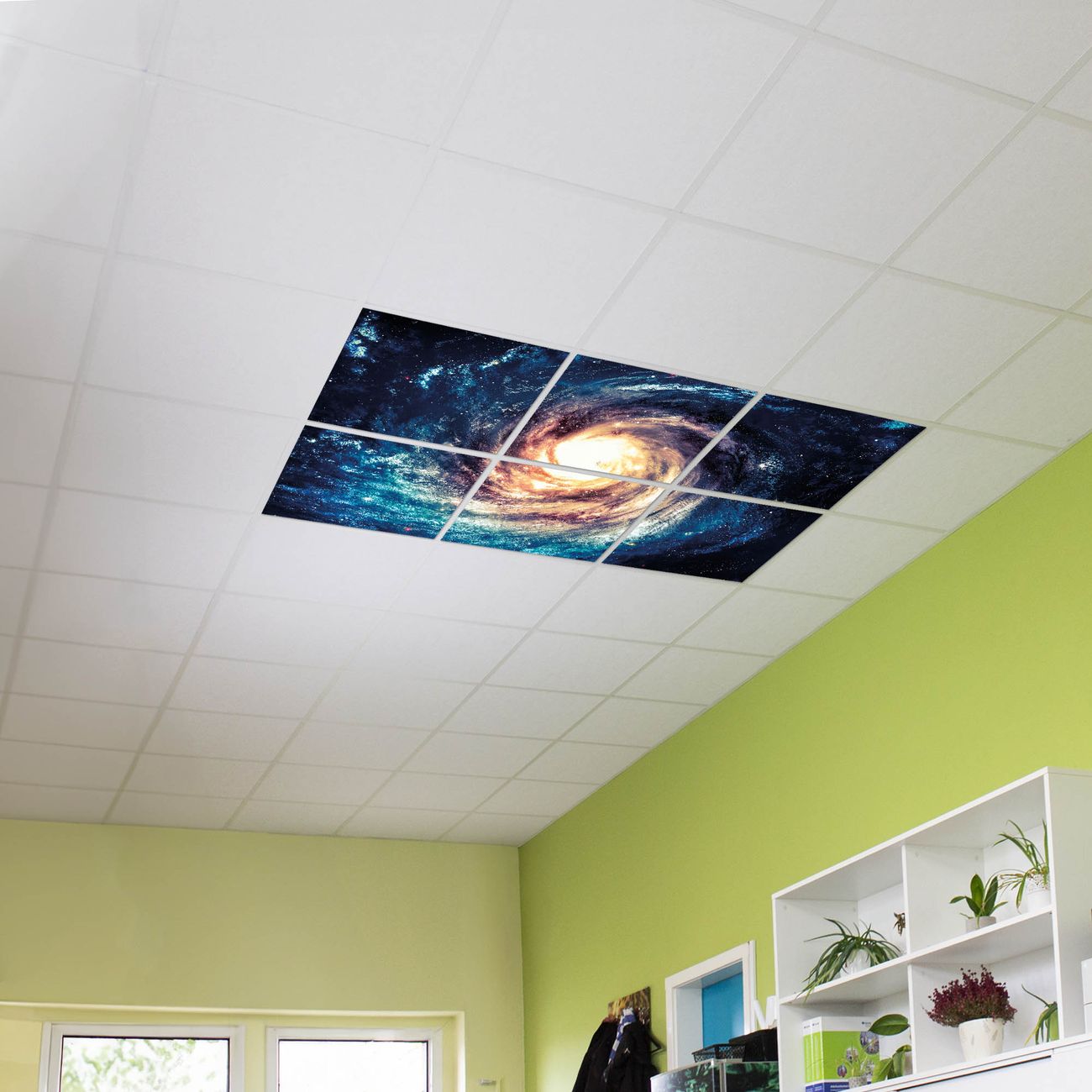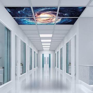 Entdecken Sie unsere vielseitigen Lichtdecken, hier in der Größe 186 x 124cm mit dem Motiv Motiv Sternenwirbel - Ihre Beleuchtungslösung für jede Umgebung Beleuchten Sie Ihren Raum nicht nur, sondern schaffen Sie Atmosphäre! Die banjado Lichtdecke verwandelt jeden Ort, ob zu Hause, in Praxen, Büros oder Studios in eine Wohlfühloase. Unsere einzelnen Elemente haben eine genormte Einheitsgröße von 62 x 62cm und können somit in jede gängige Rasterdecken verbaut werden. So finden Sie Ihre passende Ausführung: Gern helfen wir Ihnen, die passende Ausführung zu wählen. Hierfür muss die aktuelle Gegebenheit Ihrer Decke oder Wand beachtet werden. Haben Sie bereits eine Rasterdecke (auch Odenwalddecke genannt)? Hier bestellen Sie lediglich das Motiv + Beleuchtungspanel, denn beides wird in die bereits vorhandene Decke eingelegt. Haben Sie eine glatte Decke mit Lichtauslass oder möchten die Lichtdecke an der Wand befestigen? Hier bestellen Sie bitte Motiv + Beleuchtungspanel + Deckenbefestigung, eine Aufbauanleitung liegt immer bei. Die Lichtdecke kann sowohl an der Decke als auch an der Wand montiert werden, perfekt für kreative Lichtakzente oder alternative Beleuchtungslösungen. Haben Sie bereits eine Lichtdecke und möchten nur das Motiv wechseln? Hier bestellen Sie bitte nur Motiv, der Wechsel ist denkbar einfach. Der Aufbau Ihrer banjado Lichtdecke gestaltet sich unkompliziert, dank einer verständlichen Anleitung, die Ihnen Schritt für Schritt durch den Montageprozess hilft. Für die endgültige Installation und den sicheren Anschluss empfehlen wir die Hinzuziehung eines Fachmanns, um die optimale Funktion und Sicherheit Ihrer Beleuchtung zu gewährleisten. Falls Sie einen Fachmann für die Installation benötigen, geben Sie uns gern Bescheid, wir vermitteln Ihnen gern einen geeigneten Ansprechpartner aus Ihrer Nähe. Steuerung: Steigern Sie Ihr Beleuchtungserlebnis mit der nahtlosen Integration in Ihr Smart Home. Durch die Kompatibilität mit der SmartLife App, Alexa und Google Assistant wird Ihr Smartphone zur zentralen Steuerungseinheit. Ihr Handy fungiert hierbei sozusagen als Fernbedienung. Legen Sie individuelle Lichtszenen in der App fest, die bei Aktivierung über den Wand-Ein-/Ausschalter immer wieder abgerufen werden können ohne Handy. Mit der Szenenfunktion in der Smart App können Sie die Beleuchtung personalisieren und steuern, sodass sie auf Ihre individuellen Bedürfnisse, Tagesrhythmus und Stimmung zugeschnitten ist. Beispielsweise können Sie sich in der Morgendämmerung durch ein sanftes Licht wecken lassen oder das Licht der Praxis werktags um 7 Uhr automatisch einschalten lassen. Dieses kann dann natürlich auch zu einer bestimmten Zeit automatisch ausgeschaltet werden. Motivwahl: Diese einzigartige Lichtdecke zeichnet sich durch ihre Fähigkeit aus, die Lichtfarbe je nach gewähltem Motiv anzupassen - ein Baum wirft ein sanftes grünes Licht, während eine Wolkendecke Ihren Raum in ein beruhigendes blaues Leuchten hüllt. Berücksichtigen Sie dies bitte bei Ihrer Motivauswahl. Sie können das Motiv jederzeit ohne großen Aufwand austauschen, ob nach Jahreszeit oder anderem Anlass, unsere Auswahl lässt kaum Wünsche offen. Wir fertigen Ihnen gern eine personalisierte Lichtdecke mit einem eigenen Motiv oder Logo oder Foto, schreiben Sie uns jederzeit an. Technische Daten: Das Motiv ist auf einer 4mm starken Acrylglas Scheibe aufgebracht, das Gesamtgewicht Ihrer Ausführung beträgt 26,6kg. Die Farbtemperatur lässt sich frei einstellen von 3000 bis 6000 Kelvin, damit können Sie stufenlos zwischen warmweiß, neutralweiß und kaltweiß wählen. Die Gesamtleistung bei Ihrer gewählten Ausführung beträgt 240W. Der Lichtstrom beträgt 3600 Lumen, die Nennspannung 230 V. Die Lichtdecke ist mit Schutzart IP20 für den Innenbereich konzipiert und sollte nicht im Nassbereich verwendet werden.