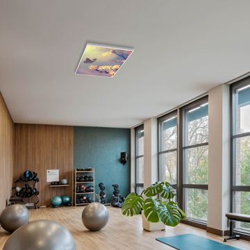 Entdecken Sie unsere vielseitigen Lichtdecken, hier in der Größe 62 x 62cm mit dem Motiv Motiv Tag Im Mai - Ihre Beleuchtungslösung für jede Umgebung Beleuchten Sie Ihren Raum nicht nur, sondern schaffen Sie Atmosphäre! Die banjado Lichtdecke verwandelt jeden Ort, ob zu Hause, in Praxen, Büros oder Studios in eine Wohlfühloase. Unsere einzelnen Elemente haben eine genormte Einheitsgröße von 62 x 62cm und können somit in jede gängige Rasterdecken verbaut werden. So finden Sie Ihre passende Ausführung: Gern helfen wir Ihnen, die passende Ausführung zu wählen. Hierfür muss die aktuelle Gegebenheit Ihrer Decke oder Wand beachtet werden. Haben Sie bereits eine Rasterdecke (auch Odenwalddecke genannt)? Hier bestellen Sie lediglich das Motiv + Beleuchtungspanel, denn beides wird in die bereits vorhandene Decke eingelegt. Haben Sie eine glatte Decke mit Lichtauslass oder möchten die Lichtdecke an der Wand befestigen? Hier bestellen Sie bitte Motiv + Beleuchtungspanel + Deckenbefestigung, eine Aufbauanleitung liegt immer bei. Die Lichtdecke kann sowohl an der Decke als auch an der Wand montiert werden, perfekt für kreative Lichtakzente oder alternative Beleuchtungslösungen. Haben Sie bereits eine Lichtdecke und möchten nur das Motiv wechseln? Hier bestellen Sie bitte nur Motiv, der Wechsel ist denkbar einfach. Der Aufbau Ihrer banjado Lichtdecke gestaltet sich unkompliziert, dank einer verständlichen Anleitung, die Ihnen Schritt für Schritt durch den Montageprozess hilft. Für die endgültige Installation und den sicheren Anschluss empfehlen wir die Hinzuziehung eines Fachmanns, um die optimale Funktion und Sicherheit Ihrer Beleuchtung zu gewährleisten. Falls Sie einen Fachmann für die Installation benötigen, geben Sie uns gern Bescheid, wir vermitteln Ihnen gern einen geeigneten Ansprechpartner aus Ihrer Nähe. Steuerung: Steigern Sie Ihr Beleuchtungserlebnis mit der nahtlosen Integration in Ihr Smart Home. Durch die Kompatibilität mit der SmartLife App, Alexa und Google Assistant wird Ihr Smartphone zur zentralen Steuerungseinheit. Ihr Handy fungiert hierbei sozusagen als Fernbedienung. Legen Sie individuelle Lichtszenen in der App fest, die bei Aktivierung über den Wand-Ein-/Ausschalter immer wieder abgerufen werden können ohne Handy. Mit der Szenenfunktion in der Smart App können Sie die Beleuchtung personalisieren und steuern, sodass sie auf Ihre individuellen Bedürfnisse, Tagesrhythmus und Stimmung zugeschnitten ist. Beispielsweise können Sie sich in der Morgendämmerung durch ein sanftes Licht wecken lassen oder das Licht der Praxis werktags um 7 Uhr automatisch einschalten lassen. Dieses kann dann natürlich auch zu einer bestimmten Zeit automatisch ausgeschaltet werden. Motivwahl: Diese einzigartige Lichtdecke zeichnet sich durch ihre Fähigkeit aus, die Lichtfarbe je nach gewähltem Motiv anzupassen - ein Baum wirft ein sanftes grünes Licht, während eine Wolkendecke Ihren Raum in ein beruhigendes blaues Leuchten hüllt. Berücksichtigen Sie dies bitte bei Ihrer Motivauswahl. Sie können das Motiv jederzeit ohne großen Aufwand austauschen, ob nach Jahreszeit oder anderem Anlass, unsere Auswahl lässt kaum Wünsche offen. Wir fertigen Ihnen gern eine personalisierte Lichtdecke mit einem eigenen Motiv oder Logo oder Foto, schreiben Sie uns jederzeit an. Technische Daten: Das Motiv ist auf einer 4mm starken Acrylglas Scheibe aufgebracht, das Gesamtgewicht Ihrer Ausführung beträgt 4,9kg. Die Farbtemperatur lässt sich frei einstellen von 3000 bis 6000 Kelvin, damit können Sie stufenlos zwischen warmweiß, neutralweiß und kaltweiß wählen. Die Gesamtleistung bei Ihrer gewählten Ausführung beträgt 40W. Der Lichtstrom beträgt 3600 Lumen, die Nennspannung 230 V. Die Lichtdecke ist mit Schutzart IP20 für den Innenbereich konzipiert und sollte nicht im Nassbereich verwendet werden.