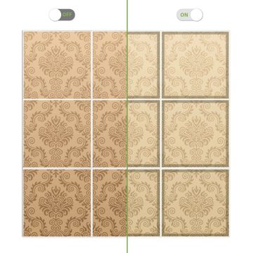 Motiv Tapete Beige Nr. 10057 Größe: 186x186x0,3cm BxHxT Gewicht: ca. 17,10 kg Material: Acylglas, hochwertig bedruckte Premiumfolie Druck: farbbrilliant, hochauflösend Stärke Glas: 4mm Acylglas Einzelelement: 62x62cm groß