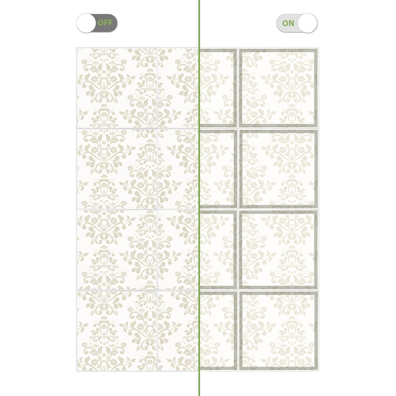 Motiv Tapete Weiß Nr. 10935 Größe: 186x248x0,3cm BxHxT Gewicht: ca. 22,80 kg Material: Acylglas, hochwertig bedruckte Premiumfolie Druck: farbbrilliant, hochauflösend Stärke Glas: 4mm Acylglas Einzelelement: 62x62cm groß