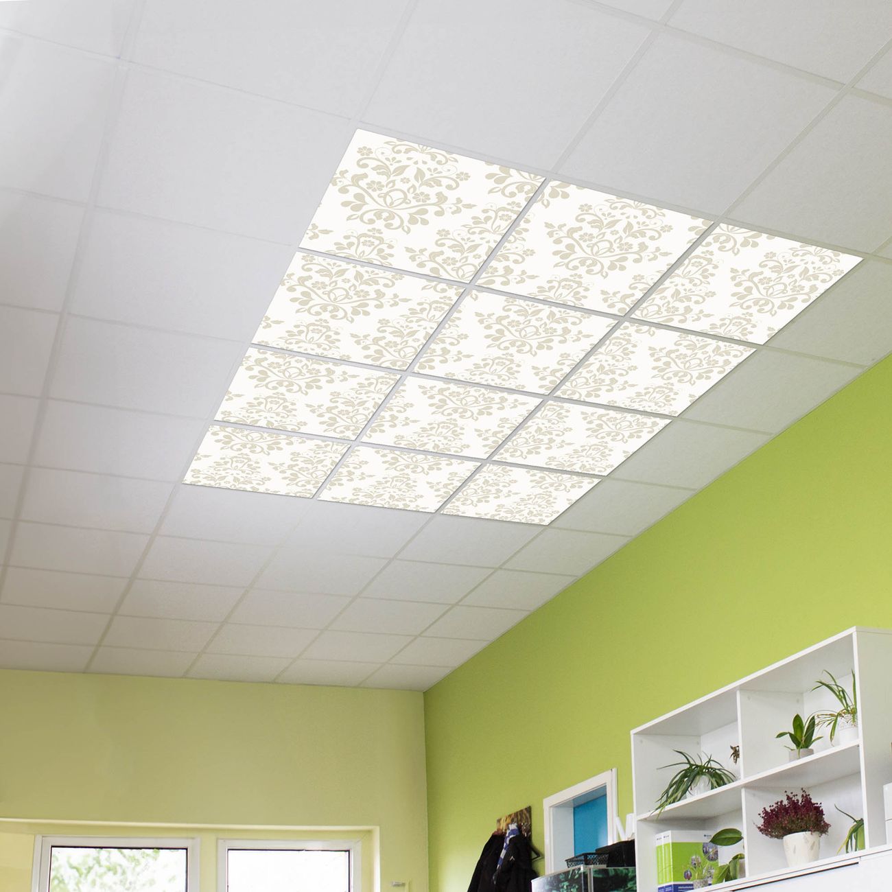 Entdecken Sie unsere vielseitigen Lichtdecken, hier in der Größe 186 x 248cm mit dem Motiv Motiv Tapete Weiß - Ihre Beleuchtungslösung für jede Umgebung Beleuchten Sie Ihren Raum nicht nur, sondern schaffen Sie Atmosphäre! Die banjado Lichtdecke verwandelt jeden Ort, ob zu Hause, in Praxen, Büros oder Studios in eine Wohlfühloase. Unsere einzelnen Elemente haben eine genormte Einheitsgröße von 62 x 62cm und können somit in jede gängige Rasterdecken verbaut werden. So finden Sie Ihre passende Ausführung: Gern helfen wir Ihnen, die passende Ausführung zu wählen. Hierfür muss die aktuelle Gegebenheit Ihrer Decke oder Wand beachtet werden. Haben Sie bereits eine Rasterdecke (auch Odenwalddecke genannt)? Hier bestellen Sie lediglich das Motiv + Beleuchtungspanel, denn beides wird in die bereits vorhandene Decke eingelegt. Haben Sie eine glatte Decke mit Lichtauslass oder möchten die Lichtdecke an der Wand befestigen? Hier bestellen Sie bitte Motiv + Beleuchtungspanel + Deckenbefestigung, eine Aufbauanleitung liegt immer bei. Die Lichtdecke kann sowohl an der Decke als auch an der Wand montiert werden, perfekt für kreative Lichtakzente oder alternative Beleuchtungslösungen. Haben Sie bereits eine Lichtdecke und möchten nur das Motiv wechseln? Hier bestellen Sie bitte nur Motiv, der Wechsel ist denkbar einfach. Der Aufbau Ihrer banjado Lichtdecke gestaltet sich unkompliziert, dank einer verständlichen Anleitung, die Ihnen Schritt für Schritt durch den Montageprozess hilft. Für die endgültige Installation und den sicheren Anschluss empfehlen wir die Hinzuziehung eines Fachmanns, um die optimale Funktion und Sicherheit Ihrer Beleuchtung zu gewährleisten. Falls Sie einen Fachmann für die Installation benötigen, geben Sie uns gern Bescheid, wir vermitteln Ihnen gern einen geeigneten Ansprechpartner aus Ihrer Nähe. Steuerung: Steigern Sie Ihr Beleuchtungserlebnis mit der nahtlosen Integration in Ihr Smart Home. Durch die Kompatibilität mit der SmartLife App, Alexa und Google Assistant wird Ihr Smartphone zur zentralen Steuerungseinheit. Ihr Handy fungiert hierbei sozusagen als Fernbedienung. Legen Sie individuelle Lichtszenen in der App fest, die bei Aktivierung über den Wand-Ein-/Ausschalter immer wieder abgerufen werden können ohne Handy. Mit der Szenenfunktion in der Smart App können Sie die Beleuchtung personalisieren und steuern, sodass sie auf Ihre individuellen Bedürfnisse, Tagesrhythmus und Stimmung zugeschnitten ist. Beispielsweise können Sie sich in der Morgendämmerung durch ein sanftes Licht wecken lassen oder das Licht der Praxis werktags um 7 Uhr automatisch einschalten lassen. Dieses kann dann natürlich auch zu einer bestimmten Zeit automatisch ausgeschaltet werden. Motivwahl: Diese einzigartige Lichtdecke zeichnet sich durch ihre Fähigkeit aus, die Lichtfarbe je nach gewähltem Motiv anzupassen - ein Baum wirft ein sanftes grünes Licht, während eine Wolkendecke Ihren Raum in ein beruhigendes blaues Leuchten hüllt. Berücksichtigen Sie dies bitte bei Ihrer Motivauswahl. Sie können das Motiv jederzeit ohne großen Aufwand austauschen, ob nach Jahreszeit oder anderem Anlass, unsere Auswahl lässt kaum Wünsche offen. Wir fertigen Ihnen gern eine personalisierte Lichtdecke mit einem eigenen Motiv oder Logo oder Foto, schreiben Sie uns jederzeit an. Technische Daten: Das Motiv ist auf einer 4mm starken Acrylglas Scheibe aufgebracht, das Gesamtgewicht Ihrer Ausführung beträgt 27,1kg. Die Farbtemperatur lässt sich frei einstellen von 3000 bis 6000 Kelvin, damit können Sie stufenlos zwischen warmweiß, neutralweiß und kaltweiß wählen. Die Gesamtleistung bei Ihrer gewählten Ausführung beträgt 480W. Der Lichtstrom beträgt 3600 Lumen, die Nennspannung 230 V. Die Lichtdecke ist mit Schutzart IP20 für den Innenbereich konzipiert und sollte nicht im Nassbereich verwendet werden.