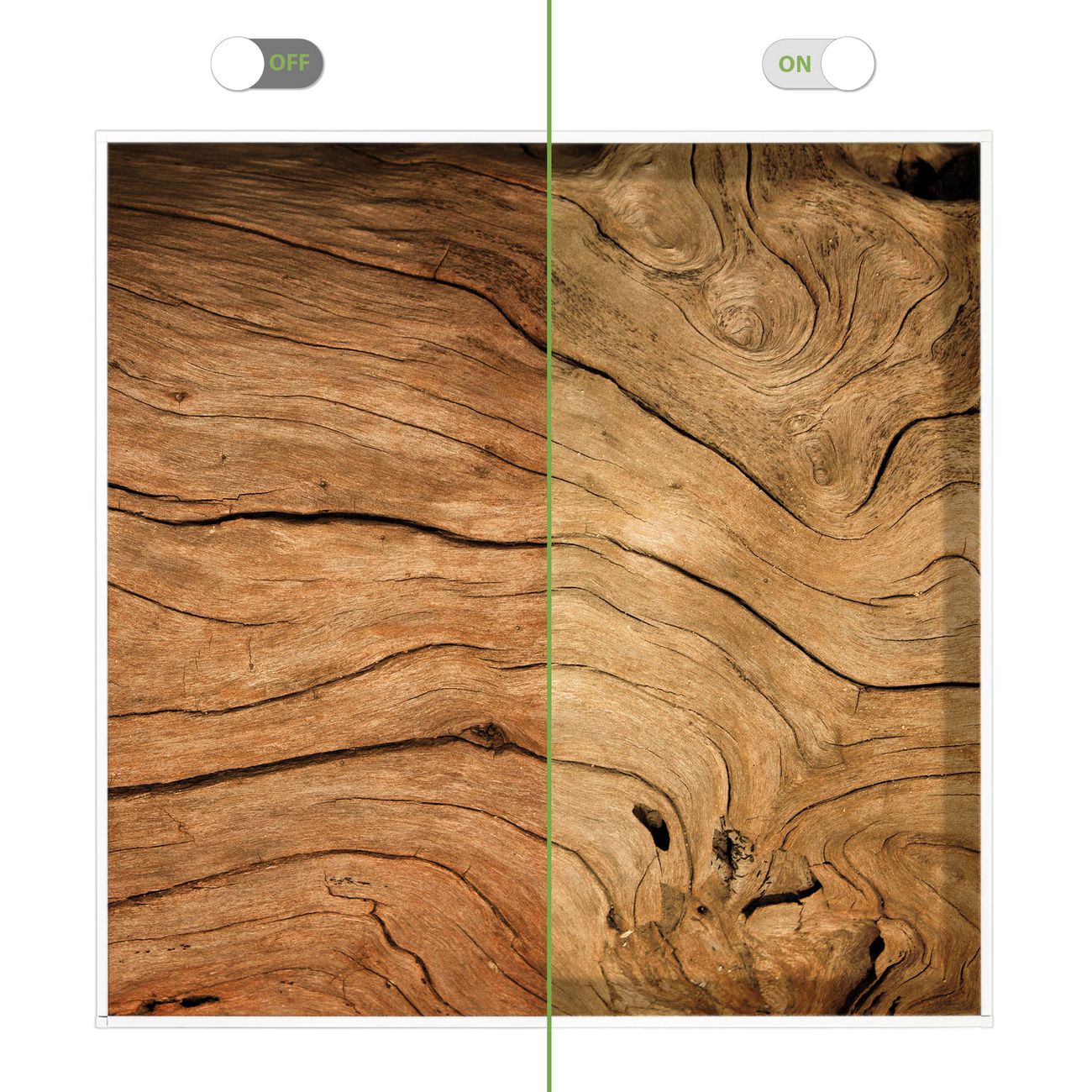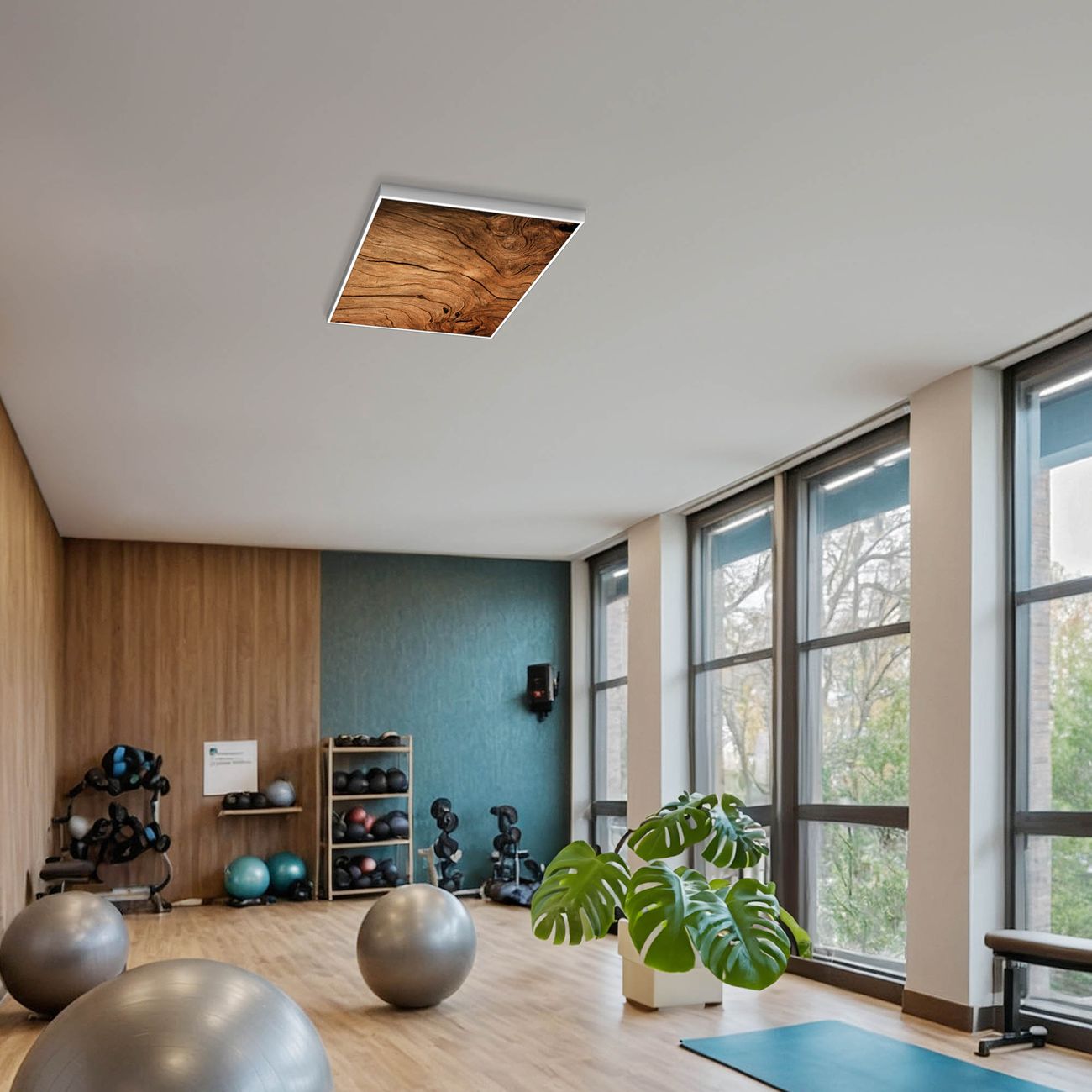 Entdecken Sie unsere vielseitigen Lichtdecken, hier in der Größe 62 x 62cm mit dem Motiv Motiv Trockenes Holz - Ihre Beleuchtungslösung für jede Umgebung Beleuchten Sie Ihren Raum nicht nur, sondern schaffen Sie Atmosphäre! Die banjado Lichtdecke verwandelt jeden Ort, ob zu Hause, in Praxen, Büros oder Studios in eine Wohlfühloase. Unsere einzelnen Elemente haben eine genormte Einheitsgröße von 62 x 62cm und können somit in jede gängige Rasterdecken verbaut werden. So finden Sie Ihre passende Ausführung: Gern helfen wir Ihnen, die passende Ausführung zu wählen. Hierfür muss die aktuelle Gegebenheit Ihrer Decke oder Wand beachtet werden. Haben Sie bereits eine Rasterdecke (auch Odenwalddecke genannt)? Hier bestellen Sie lediglich das Motiv + Beleuchtungspanel, denn beides wird in die bereits vorhandene Decke eingelegt. Haben Sie eine glatte Decke mit Lichtauslass oder möchten die Lichtdecke an der Wand befestigen? Hier bestellen Sie bitte Motiv + Beleuchtungspanel + Deckenbefestigung, eine Aufbauanleitung liegt immer bei. Die Lichtdecke kann sowohl an der Decke als auch an der Wand montiert werden, perfekt für kreative Lichtakzente oder alternative Beleuchtungslösungen. Haben Sie bereits eine Lichtdecke und möchten nur das Motiv wechseln? Hier bestellen Sie bitte nur Motiv, der Wechsel ist denkbar einfach. Der Aufbau Ihrer banjado Lichtdecke gestaltet sich unkompliziert, dank einer verständlichen Anleitung, die Ihnen Schritt für Schritt durch den Montageprozess hilft. Für die endgültige Installation und den sicheren Anschluss empfehlen wir die Hinzuziehung eines Fachmanns, um die optimale Funktion und Sicherheit Ihrer Beleuchtung zu gewährleisten. Falls Sie einen Fachmann für die Installation benötigen, geben Sie uns gern Bescheid, wir vermitteln Ihnen gern einen geeigneten Ansprechpartner aus Ihrer Nähe. Steuerung: Steigern Sie Ihr Beleuchtungserlebnis mit der nahtlosen Integration in Ihr Smart Home. Durch die Kompatibilität mit der SmartLife App, Alexa und Google Assistant wird Ihr Smartphone zur zentralen Steuerungseinheit. Ihr Handy fungiert hierbei sozusagen als Fernbedienung. Legen Sie individuelle Lichtszenen in der App fest, die bei Aktivierung über den Wand-Ein-/Ausschalter immer wieder abgerufen werden können ohne Handy. Mit der Szenenfunktion in der Smart App können Sie die Beleuchtung personalisieren und steuern, sodass sie auf Ihre individuellen Bedürfnisse, Tagesrhythmus und Stimmung zugeschnitten ist. Beispielsweise können Sie sich in der Morgendämmerung durch ein sanftes Licht wecken lassen oder das Licht der Praxis werktags um 7 Uhr automatisch einschalten lassen. Dieses kann dann natürlich auch zu einer bestimmten Zeit automatisch ausgeschaltet werden. Motivwahl: Diese einzigartige Lichtdecke zeichnet sich durch ihre Fähigkeit aus, die Lichtfarbe je nach gewähltem Motiv anzupassen - ein Baum wirft ein sanftes grünes Licht, während eine Wolkendecke Ihren Raum in ein beruhigendes blaues Leuchten hüllt. Berücksichtigen Sie dies bitte bei Ihrer Motivauswahl. Sie können das Motiv jederzeit ohne großen Aufwand austauschen, ob nach Jahreszeit oder anderem Anlass, unsere Auswahl lässt kaum Wünsche offen. Wir fertigen Ihnen gern eine personalisierte Lichtdecke mit einem eigenen Motiv oder Logo oder Foto, schreiben Sie uns jederzeit an. Technische Daten: Das Motiv ist auf einer 4mm starken Acrylglas Scheibe aufgebracht, das Gesamtgewicht Ihrer Ausführung beträgt 4,9kg. Die Farbtemperatur lässt sich frei einstellen von 3000 bis 6000 Kelvin, damit können Sie stufenlos zwischen warmweiß, neutralweiß und kaltweiß wählen. Die Gesamtleistung bei Ihrer gewählten Ausführung beträgt 40W. Der Lichtstrom beträgt 3600 Lumen, die Nennspannung 230 V. Die Lichtdecke ist mit Schutzart IP20 für den Innenbereich konzipiert und sollte nicht im Nassbereich verwendet werden.