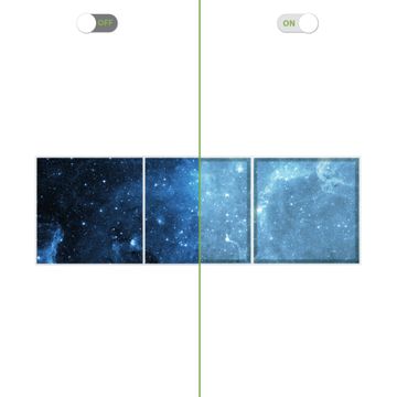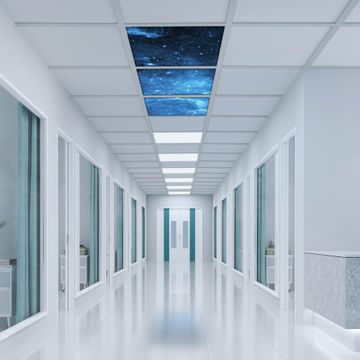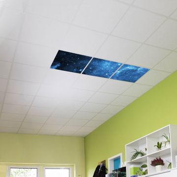 Entdecken Sie unsere vielseitigen Lichtdecken, hier in der Größe 186 x 62cm mit dem Motiv Motiv Universum - Ihre Beleuchtungslösung für jede Umgebung Beleuchten Sie Ihren Raum nicht nur, sondern schaffen Sie Atmosphäre! Die banjado Lichtdecke verwandelt jeden Ort, ob zu Hause, in Praxen, Büros oder Studios in eine Wohlfühloase. Unsere einzelnen Elemente haben eine genormte Einheitsgröße von 62 x 62cm und können somit in jede gängige Rasterdecken verbaut werden. So finden Sie Ihre passende Ausführung: Gern helfen wir Ihnen, die passende Ausführung zu wählen. Hierfür muss die aktuelle Gegebenheit Ihrer Decke oder Wand beachtet werden. Haben Sie bereits eine Rasterdecke (auch Odenwalddecke genannt)? Hier bestellen Sie lediglich das Motiv + Beleuchtungspanel, denn beides wird in die bereits vorhandene Decke eingelegt. Haben Sie eine glatte Decke mit Lichtauslass oder möchten die Lichtdecke an der Wand befestigen? Hier bestellen Sie bitte Motiv + Beleuchtungspanel + Deckenbefestigung, eine Aufbauanleitung liegt immer bei. Die Lichtdecke kann sowohl an der Decke als auch an der Wand montiert werden, perfekt für kreative Lichtakzente oder alternative Beleuchtungslösungen. Haben Sie bereits eine Lichtdecke und möchten nur das Motiv wechseln? Hier bestellen Sie bitte nur Motiv, der Wechsel ist denkbar einfach. Der Aufbau Ihrer banjado Lichtdecke gestaltet sich unkompliziert, dank einer verständlichen Anleitung, die Ihnen Schritt für Schritt durch den Montageprozess hilft. Für die endgültige Installation und den sicheren Anschluss empfehlen wir die Hinzuziehung eines Fachmanns, um die optimale Funktion und Sicherheit Ihrer Beleuchtung zu gewährleisten. Falls Sie einen Fachmann für die Installation benötigen, geben Sie uns gern Bescheid, wir vermitteln Ihnen gern einen geeigneten Ansprechpartner aus Ihrer Nähe. Steuerung: Steigern Sie Ihr Beleuchtungserlebnis mit der nahtlosen Integration in Ihr Smart Home. Durch die Kompatibilität mit der SmartLife App, Alexa und Google Assistant wird Ihr Smartphone zur zentralen Steuerungseinheit. Ihr Handy fungiert hierbei sozusagen als Fernbedienung. Legen Sie individuelle Lichtszenen in der App fest, die bei Aktivierung über den Wand-Ein-/Ausschalter immer wieder abgerufen werden können ohne Handy. Mit der Szenenfunktion in der Smart App können Sie die Beleuchtung personalisieren und steuern, sodass sie auf Ihre individuellen Bedürfnisse, Tagesrhythmus und Stimmung zugeschnitten ist. Beispielsweise können Sie sich in der Morgendämmerung durch ein sanftes Licht wecken lassen oder das Licht der Praxis werktags um 7 Uhr automatisch einschalten lassen. Dieses kann dann natürlich auch zu einer bestimmten Zeit automatisch ausgeschaltet werden. Motivwahl: Diese einzigartige Lichtdecke zeichnet sich durch ihre Fähigkeit aus, die Lichtfarbe je nach gewähltem Motiv anzupassen - ein Baum wirft ein sanftes grünes Licht, während eine Wolkendecke Ihren Raum in ein beruhigendes blaues Leuchten hüllt. Berücksichtigen Sie dies bitte bei Ihrer Motivauswahl. Sie können das Motiv jederzeit ohne großen Aufwand austauschen, ob nach Jahreszeit oder anderem Anlass, unsere Auswahl lässt kaum Wünsche offen. Wir fertigen Ihnen gern eine personalisierte Lichtdecke mit einem eigenen Motiv oder Logo oder Foto, schreiben Sie uns jederzeit an. Technische Daten: Das Motiv ist auf einer 4mm starken Acrylglas Scheibe aufgebracht, das Gesamtgewicht Ihrer Ausführung beträgt 6,8kg. Die Farbtemperatur lässt sich frei einstellen von 3000 bis 6000 Kelvin, damit können Sie stufenlos zwischen warmweiß, neutralweiß und kaltweiß wählen. Die Gesamtleistung bei Ihrer gewählten Ausführung beträgt 120W. Der Lichtstrom beträgt 3600 Lumen, die Nennspannung 230 V. Die Lichtdecke ist mit Schutzart IP20 für den Innenbereich konzipiert und sollte nicht im Nassbereich verwendet werden.