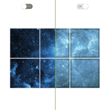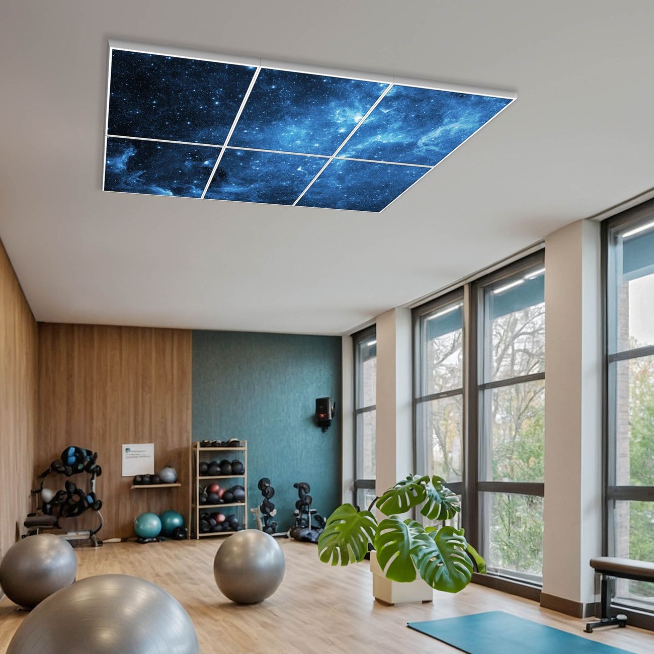 Entdecken Sie unsere vielseitigen Lichtdecken, hier in der Größe 186 x 124cm mit dem Motiv Motiv Universum - Ihre Beleuchtungslösung für jede Umgebung Beleuchten Sie Ihren Raum nicht nur, sondern schaffen Sie Atmosphäre! Die banjado Lichtdecke verwandelt jeden Ort, ob zu Hause, in Praxen, Büros oder Studios in eine Wohlfühloase. Unsere einzelnen Elemente haben eine genormte Einheitsgröße von 62 x 62cm und können somit in jede gängige Rasterdecken verbaut werden. So finden Sie Ihre passende Ausführung: Gern helfen wir Ihnen, die passende Ausführung zu wählen. Hierfür muss die aktuelle Gegebenheit Ihrer Decke oder Wand beachtet werden. Haben Sie bereits eine Rasterdecke (auch Odenwalddecke genannt)? Hier bestellen Sie lediglich das Motiv + Beleuchtungspanel, denn beides wird in die bereits vorhandene Decke eingelegt. Haben Sie eine glatte Decke mit Lichtauslass oder möchten die Lichtdecke an der Wand befestigen? Hier bestellen Sie bitte Motiv + Beleuchtungspanel + Deckenbefestigung, eine Aufbauanleitung liegt immer bei. Die Lichtdecke kann sowohl an der Decke als auch an der Wand montiert werden, perfekt für kreative Lichtakzente oder alternative Beleuchtungslösungen. Haben Sie bereits eine Lichtdecke und möchten nur das Motiv wechseln? Hier bestellen Sie bitte nur Motiv, der Wechsel ist denkbar einfach. Der Aufbau Ihrer banjado Lichtdecke gestaltet sich unkompliziert, dank einer verständlichen Anleitung, die Ihnen Schritt für Schritt durch den Montageprozess hilft. Für die endgültige Installation und den sicheren Anschluss empfehlen wir die Hinzuziehung eines Fachmanns, um die optimale Funktion und Sicherheit Ihrer Beleuchtung zu gewährleisten. Falls Sie einen Fachmann für die Installation benötigen, geben Sie uns gern Bescheid, wir vermitteln Ihnen gern einen geeigneten Ansprechpartner aus Ihrer Nähe. Steuerung: Steigern Sie Ihr Beleuchtungserlebnis mit der nahtlosen Integration in Ihr Smart Home. Durch die Kompatibilität mit der SmartLife App, Alexa und Google Assistant wird Ihr Smartphone zur zentralen Steuerungseinheit. Ihr Handy fungiert hierbei sozusagen als Fernbedienung. Legen Sie individuelle Lichtszenen in der App fest, die bei Aktivierung über den Wand-Ein-/Ausschalter immer wieder abgerufen werden können ohne Handy. Mit der Szenenfunktion in der Smart App können Sie die Beleuchtung personalisieren und steuern, sodass sie auf Ihre individuellen Bedürfnisse, Tagesrhythmus und Stimmung zugeschnitten ist. Beispielsweise können Sie sich in der Morgendämmerung durch ein sanftes Licht wecken lassen oder das Licht der Praxis werktags um 7 Uhr automatisch einschalten lassen. Dieses kann dann natürlich auch zu einer bestimmten Zeit automatisch ausgeschaltet werden. Motivwahl: Diese einzigartige Lichtdecke zeichnet sich durch ihre Fähigkeit aus, die Lichtfarbe je nach gewähltem Motiv anzupassen - ein Baum wirft ein sanftes grünes Licht, während eine Wolkendecke Ihren Raum in ein beruhigendes blaues Leuchten hüllt. Berücksichtigen Sie dies bitte bei Ihrer Motivauswahl. Sie können das Motiv jederzeit ohne großen Aufwand austauschen, ob nach Jahreszeit oder anderem Anlass, unsere Auswahl lässt kaum Wünsche offen. Wir fertigen Ihnen gern eine personalisierte Lichtdecke mit einem eigenen Motiv oder Logo oder Foto, schreiben Sie uns jederzeit an. Technische Daten: Das Motiv ist auf einer 4mm starken Acrylglas Scheibe aufgebracht, das Gesamtgewicht Ihrer Ausführung beträgt 29,6kg. Die Farbtemperatur lässt sich frei einstellen von 3000 bis 6000 Kelvin, damit können Sie stufenlos zwischen warmweiß, neutralweiß und kaltweiß wählen. Die Gesamtleistung bei Ihrer gewählten Ausführung beträgt 240W. Der Lichtstrom beträgt 3600 Lumen, die Nennspannung 230 V. Die Lichtdecke ist mit Schutzart IP20 für den Innenbereich konzipiert und sollte nicht im Nassbereich verwendet werden.