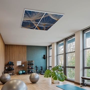 Entdecken Sie unsere vielseitigen Lichtdecken, hier in der Größe 124 x 124cm mit dem Motiv Motiv Verblüht - Ihre Beleuchtungslösung für jede Umgebung Beleuchten Sie Ihren Raum nicht nur, sondern schaffen Sie Atmosphäre! Die banjado Lichtdecke verwandelt jeden Ort, ob zu Hause, in Praxen, Büros oder Studios in eine Wohlfühloase. Unsere einzelnen Elemente haben eine genormte Einheitsgröße von 62 x 62cm und können somit in jede gängige Rasterdecken verbaut werden. So finden Sie Ihre passende Ausführung: Gern helfen wir Ihnen, die passende Ausführung zu wählen. Hierfür muss die aktuelle Gegebenheit Ihrer Decke oder Wand beachtet werden. Haben Sie bereits eine Rasterdecke (auch Odenwalddecke genannt)? Hier bestellen Sie lediglich das Motiv + Beleuchtungspanel, denn beides wird in die bereits vorhandene Decke eingelegt. Haben Sie eine glatte Decke mit Lichtauslass oder möchten die Lichtdecke an der Wand befestigen? Hier bestellen Sie bitte Motiv + Beleuchtungspanel + Deckenbefestigung, eine Aufbauanleitung liegt immer bei. Die Lichtdecke kann sowohl an der Decke als auch an der Wand montiert werden, perfekt für kreative Lichtakzente oder alternative Beleuchtungslösungen. Haben Sie bereits eine Lichtdecke und möchten nur das Motiv wechseln? Hier bestellen Sie bitte nur Motiv, der Wechsel ist denkbar einfach. Der Aufbau Ihrer banjado Lichtdecke gestaltet sich unkompliziert, dank einer verständlichen Anleitung, die Ihnen Schritt für Schritt durch den Montageprozess hilft. Für die endgültige Installation und den sicheren Anschluss empfehlen wir die Hinzuziehung eines Fachmanns, um die optimale Funktion und Sicherheit Ihrer Beleuchtung zu gewährleisten. Falls Sie einen Fachmann für die Installation benötigen, geben Sie uns gern Bescheid, wir vermitteln Ihnen gern einen geeigneten Ansprechpartner aus Ihrer Nähe. Steuerung: Steigern Sie Ihr Beleuchtungserlebnis mit der nahtlosen Integration in Ihr Smart Home. Durch die Kompatibilität mit der SmartLife App, Alexa und Google Assistant wird Ihr Smartphone zur zentralen Steuerungseinheit. Ihr Handy fungiert hierbei sozusagen als Fernbedienung. Legen Sie individuelle Lichtszenen in der App fest, die bei Aktivierung über den Wand-Ein-/Ausschalter immer wieder abgerufen werden können ohne Handy. Mit der Szenenfunktion in der Smart App können Sie die Beleuchtung personalisieren und steuern, sodass sie auf Ihre individuellen Bedürfnisse, Tagesrhythmus und Stimmung zugeschnitten ist. Beispielsweise können Sie sich in der Morgendämmerung durch ein sanftes Licht wecken lassen oder das Licht der Praxis werktags um 7 Uhr automatisch einschalten lassen. Dieses kann dann natürlich auch zu einer bestimmten Zeit automatisch ausgeschaltet werden. Motivwahl: Diese einzigartige Lichtdecke zeichnet sich durch ihre Fähigkeit aus, die Lichtfarbe je nach gewähltem Motiv anzupassen - ein Baum wirft ein sanftes grünes Licht, während eine Wolkendecke Ihren Raum in ein beruhigendes blaues Leuchten hüllt. Berücksichtigen Sie dies bitte bei Ihrer Motivauswahl. Sie können das Motiv jederzeit ohne großen Aufwand austauschen, ob nach Jahreszeit oder anderem Anlass, unsere Auswahl lässt kaum Wünsche offen. Wir fertigen Ihnen gern eine personalisierte Lichtdecke mit einem eigenen Motiv oder Logo oder Foto, schreiben Sie uns jederzeit an. Technische Daten: Das Motiv ist auf einer 4mm starken Acrylglas Scheibe aufgebracht, das Gesamtgewicht Ihrer Ausführung beträgt 19,7kg. Die Farbtemperatur lässt sich frei einstellen von 3000 bis 6000 Kelvin, damit können Sie stufenlos zwischen warmweiß, neutralweiß und kaltweiß wählen. Die Gesamtleistung bei Ihrer gewählten Ausführung beträgt 160W. Der Lichtstrom beträgt 3600 Lumen, die Nennspannung 230 V. Die Lichtdecke ist mit Schutzart IP20 für den Innenbereich konzipiert und sollte nicht im Nassbereich verwendet werden.