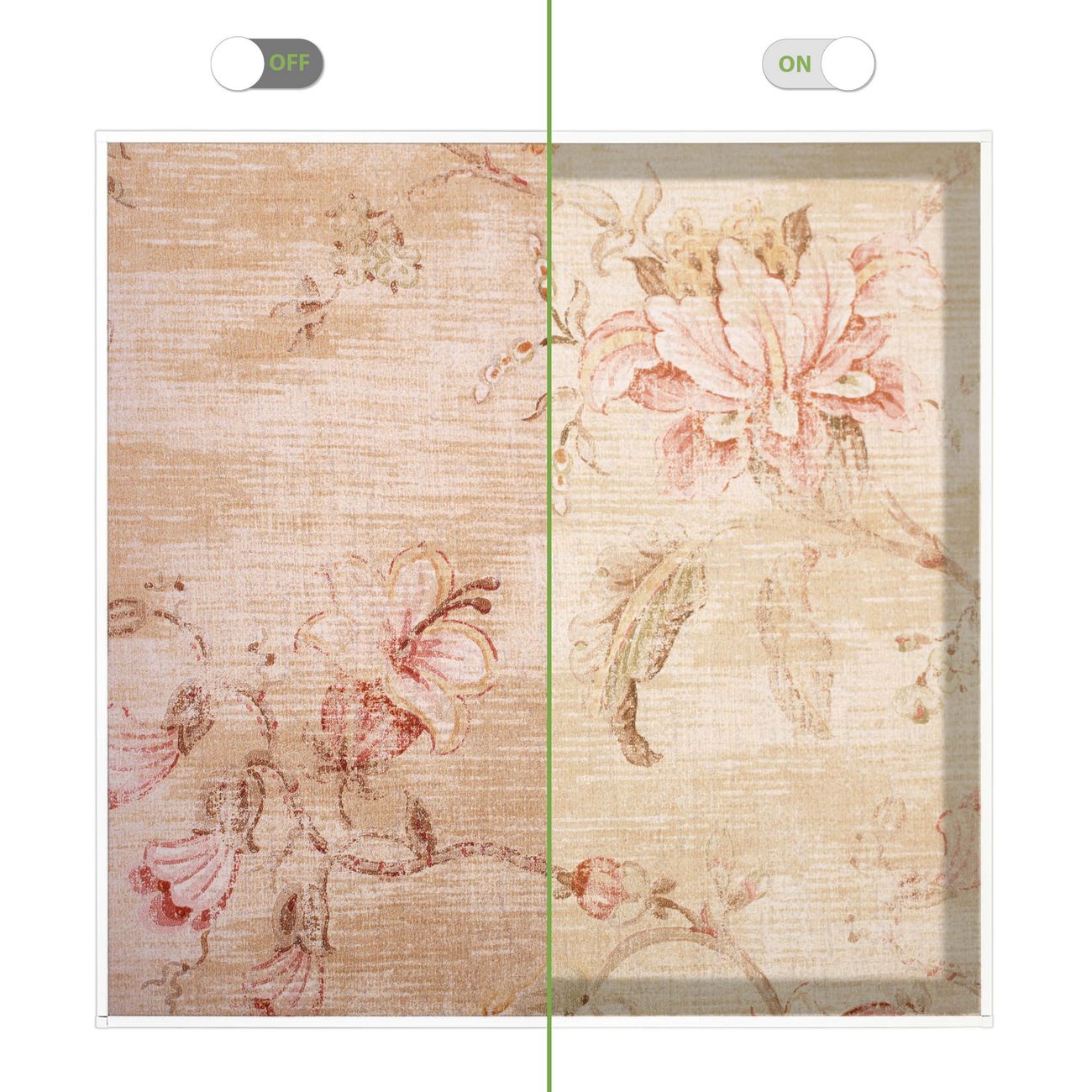 Entdecken Sie unsere vielseitigen Lichtdecken, hier in der Größe 62 x 62cm mit dem Motiv Motiv Verschwindend - Ihre Beleuchtungslösung für jede Umgebung Beleuchten Sie Ihren Raum nicht nur, sondern schaffen Sie Atmosphäre! Die banjado Lichtdecke verwandelt jeden Ort, ob zu Hause, in Praxen, Büros oder Studios in eine Wohlfühloase. Unsere einzelnen Elemente haben eine genormte Einheitsgröße von 62 x 62cm und können somit in jede gängige Rasterdecken verbaut werden. So finden Sie Ihre passende Ausführung: Gern helfen wir Ihnen, die passende Ausführung zu wählen. Hierfür muss die aktuelle Gegebenheit Ihrer Decke oder Wand beachtet werden. Haben Sie bereits eine Rasterdecke (auch Odenwalddecke genannt)? Hier bestellen Sie lediglich das Motiv + Beleuchtungspanel, denn beides wird in die bereits vorhandene Decke eingelegt. Haben Sie eine glatte Decke mit Lichtauslass oder möchten die Lichtdecke an der Wand befestigen? Hier bestellen Sie bitte Motiv + Beleuchtungspanel + Deckenbefestigung, eine Aufbauanleitung liegt immer bei. Die Lichtdecke kann sowohl an der Decke als auch an der Wand montiert werden, perfekt für kreative Lichtakzente oder alternative Beleuchtungslösungen. Haben Sie bereits eine Lichtdecke und möchten nur das Motiv wechseln? Hier bestellen Sie bitte nur Motiv, der Wechsel ist denkbar einfach. Der Aufbau Ihrer banjado Lichtdecke gestaltet sich unkompliziert, dank einer verständlichen Anleitung, die Ihnen Schritt für Schritt durch den Montageprozess hilft. Für die endgültige Installation und den sicheren Anschluss empfehlen wir die Hinzuziehung eines Fachmanns, um die optimale Funktion und Sicherheit Ihrer Beleuchtung zu gewährleisten. Falls Sie einen Fachmann für die Installation benötigen, geben Sie uns gern Bescheid, wir vermitteln Ihnen gern einen geeigneten Ansprechpartner aus Ihrer Nähe. Steuerung: Steigern Sie Ihr Beleuchtungserlebnis mit der nahtlosen Integration in Ihr Smart Home. Durch die Kompatibilität mit der SmartLife App, Alexa und Google Assistant wird Ihr Smartphone zur zentralen Steuerungseinheit. Ihr Handy fungiert hierbei sozusagen als Fernbedienung. Legen Sie individuelle Lichtszenen in der App fest, die bei Aktivierung über den Wand-Ein-/Ausschalter immer wieder abgerufen werden können ohne Handy. Mit der Szenenfunktion in der Smart App können Sie die Beleuchtung personalisieren und steuern, sodass sie auf Ihre individuellen Bedürfnisse, Tagesrhythmus und Stimmung zugeschnitten ist. Beispielsweise können Sie sich in der Morgendämmerung durch ein sanftes Licht wecken lassen oder das Licht der Praxis werktags um 7 Uhr automatisch einschalten lassen. Dieses kann dann natürlich auch zu einer bestimmten Zeit automatisch ausgeschaltet werden. Motivwahl: Diese einzigartige Lichtdecke zeichnet sich durch ihre Fähigkeit aus, die Lichtfarbe je nach gewähltem Motiv anzupassen - ein Baum wirft ein sanftes grünes Licht, während eine Wolkendecke Ihren Raum in ein beruhigendes blaues Leuchten hüllt. Berücksichtigen Sie dies bitte bei Ihrer Motivauswahl. Sie können das Motiv jederzeit ohne großen Aufwand austauschen, ob nach Jahreszeit oder anderem Anlass, unsere Auswahl lässt kaum Wünsche offen. Wir fertigen Ihnen gern eine personalisierte Lichtdecke mit einem eigenen Motiv oder Logo oder Foto, schreiben Sie uns jederzeit an. Technische Daten: Das Motiv ist auf einer 4mm starken Acrylglas Scheibe aufgebracht, das Gesamtgewicht Ihrer Ausführung beträgt 2,3kg. Die Farbtemperatur lässt sich frei einstellen von 3000 bis 6000 Kelvin, damit können Sie stufenlos zwischen warmweiß, neutralweiß und kaltweiß wählen. Die Gesamtleistung bei Ihrer gewählten Ausführung beträgt 40W. Der Lichtstrom beträgt 3600 Lumen, die Nennspannung 230 V. Die Lichtdecke ist mit Schutzart IP20 für den Innenbereich konzipiert und sollte nicht im Nassbereich verwendet werden.