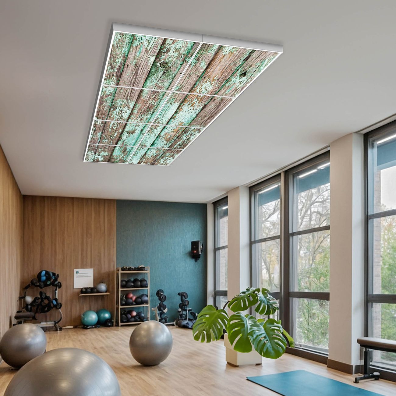 Entdecken Sie unsere vielseitigen Lichtdecken, hier in der Größe 124 x 248cm mit dem Motiv Motiv Verwittertes Holz - Ihre Beleuchtungslösung für jede Umgebung Beleuchten Sie Ihren Raum nicht nur, sondern schaffen Sie Atmosphäre! Die banjado Lichtdecke verwandelt jeden Ort, ob zu Hause, in Praxen, Büros oder Studios in eine Wohlfühloase. Unsere einzelnen Elemente haben eine genormte Einheitsgröße von 62 x 62cm und können somit in jede gängige Rasterdecken verbaut werden. So finden Sie Ihre passende Ausführung: Gern helfen wir Ihnen, die passende Ausführung zu wählen. Hierfür muss die aktuelle Gegebenheit Ihrer Decke oder Wand beachtet werden. Haben Sie bereits eine Rasterdecke (auch Odenwalddecke genannt)? Hier bestellen Sie lediglich das Motiv + Beleuchtungspanel, denn beides wird in die bereits vorhandene Decke eingelegt. Haben Sie eine glatte Decke mit Lichtauslass oder möchten die Lichtdecke an der Wand befestigen? Hier bestellen Sie bitte Motiv + Beleuchtungspanel + Deckenbefestigung, eine Aufbauanleitung liegt immer bei. Die Lichtdecke kann sowohl an der Decke als auch an der Wand montiert werden, perfekt für kreative Lichtakzente oder alternative Beleuchtungslösungen. Haben Sie bereits eine Lichtdecke und möchten nur das Motiv wechseln? Hier bestellen Sie bitte nur Motiv, der Wechsel ist denkbar einfach. Der Aufbau Ihrer banjado Lichtdecke gestaltet sich unkompliziert, dank einer verständlichen Anleitung, die Ihnen Schritt für Schritt durch den Montageprozess hilft. Für die endgültige Installation und den sicheren Anschluss empfehlen wir die Hinzuziehung eines Fachmanns, um die optimale Funktion und Sicherheit Ihrer Beleuchtung zu gewährleisten. Falls Sie einen Fachmann für die Installation benötigen, geben Sie uns gern Bescheid, wir vermitteln Ihnen gern einen geeigneten Ansprechpartner aus Ihrer Nähe. Steuerung: Steigern Sie Ihr Beleuchtungserlebnis mit der nahtlosen Integration in Ihr Smart Home. Durch die Kompatibilität mit der SmartLife App, Alexa und Google Assistant wird Ihr Smartphone zur zentralen Steuerungseinheit. Ihr Handy fungiert hierbei sozusagen als Fernbedienung. Legen Sie individuelle Lichtszenen in der App fest, die bei Aktivierung über den Wand-Ein-/Ausschalter immer wieder abgerufen werden können ohne Handy. Mit der Szenenfunktion in der Smart App können Sie die Beleuchtung personalisieren und steuern, sodass sie auf Ihre individuellen Bedürfnisse, Tagesrhythmus und Stimmung zugeschnitten ist. Beispielsweise können Sie sich in der Morgendämmerung durch ein sanftes Licht wecken lassen oder das Licht der Praxis werktags um 7 Uhr automatisch einschalten lassen. Dieses kann dann natürlich auch zu einer bestimmten Zeit automatisch ausgeschaltet werden. Motivwahl: Diese einzigartige Lichtdecke zeichnet sich durch ihre Fähigkeit aus, die Lichtfarbe je nach gewähltem Motiv anzupassen - ein Baum wirft ein sanftes grünes Licht, während eine Wolkendecke Ihren Raum in ein beruhigendes blaues Leuchten hüllt. Berücksichtigen Sie dies bitte bei Ihrer Motivauswahl. Sie können das Motiv jederzeit ohne großen Aufwand austauschen, ob nach Jahreszeit oder anderem Anlass, unsere Auswahl lässt kaum Wünsche offen. Wir fertigen Ihnen gern eine personalisierte Lichtdecke mit einem eigenen Motiv oder Logo oder Foto, schreiben Sie uns jederzeit an. Technische Daten: Das Motiv ist auf einer 4mm starken Acrylglas Scheibe aufgebracht, das Gesamtgewicht Ihrer Ausführung beträgt 39,4kg. Die Farbtemperatur lässt sich frei einstellen von 3000 bis 6000 Kelvin, damit können Sie stufenlos zwischen warmweiß, neutralweiß und kaltweiß wählen. Die Gesamtleistung bei Ihrer gewählten Ausführung beträgt 320W. Der Lichtstrom beträgt 3600 Lumen, die Nennspannung 230 V. Die Lichtdecke ist mit Schutzart IP20 für den Innenbereich konzipiert und sollte nicht im Nassbereich verwendet werden.