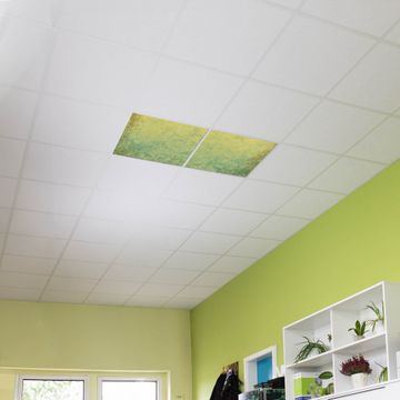 Entdecken Sie unsere vielseitigen Lichtdecken, hier in der Größe 124 x 62cm mit dem Motiv Motiv Vintage Messing - Ihre Beleuchtungslösung für jede Umgebung Beleuchten Sie Ihren Raum nicht nur, sondern schaffen Sie Atmosphäre! Die banjado Lichtdecke verwandelt jeden Ort, ob zu Hause, in Praxen, Büros oder Studios in eine Wohlfühloase. Unsere einzelnen Elemente haben eine genormte Einheitsgröße von 62 x 62cm und können somit in jede gängige Rasterdecken verbaut werden. So finden Sie Ihre passende Ausführung: Gern helfen wir Ihnen, die passende Ausführung zu wählen. Hierfür muss die aktuelle Gegebenheit Ihrer Decke oder Wand beachtet werden. Haben Sie bereits eine Rasterdecke (auch Odenwalddecke genannt)? Hier bestellen Sie lediglich das Motiv + Beleuchtungspanel, denn beides wird in die bereits vorhandene Decke eingelegt. Haben Sie eine glatte Decke mit Lichtauslass oder möchten die Lichtdecke an der Wand befestigen? Hier bestellen Sie bitte Motiv + Beleuchtungspanel + Deckenbefestigung, eine Aufbauanleitung liegt immer bei. Die Lichtdecke kann sowohl an der Decke als auch an der Wand montiert werden, perfekt für kreative Lichtakzente oder alternative Beleuchtungslösungen. Haben Sie bereits eine Lichtdecke und möchten nur das Motiv wechseln? Hier bestellen Sie bitte nur Motiv, der Wechsel ist denkbar einfach. Der Aufbau Ihrer banjado Lichtdecke gestaltet sich unkompliziert, dank einer verständlichen Anleitung, die Ihnen Schritt für Schritt durch den Montageprozess hilft. Für die endgültige Installation und den sicheren Anschluss empfehlen wir die Hinzuziehung eines Fachmanns, um die optimale Funktion und Sicherheit Ihrer Beleuchtung zu gewährleisten. Falls Sie einen Fachmann für die Installation benötigen, geben Sie uns gern Bescheid, wir vermitteln Ihnen gern einen geeigneten Ansprechpartner aus Ihrer Nähe. Steuerung: Steigern Sie Ihr Beleuchtungserlebnis mit der nahtlosen Integration in Ihr Smart Home. Durch die Kompatibilität mit der SmartLife App, Alexa und Google Assistant wird Ihr Smartphone zur zentralen Steuerungseinheit. Ihr Handy fungiert hierbei sozusagen als Fernbedienung. Legen Sie individuelle Lichtszenen in der App fest, die bei Aktivierung über den Wand-Ein-/Ausschalter immer wieder abgerufen werden können ohne Handy. Mit der Szenenfunktion in der Smart App können Sie die Beleuchtung personalisieren und steuern, sodass sie auf Ihre individuellen Bedürfnisse, Tagesrhythmus und Stimmung zugeschnitten ist. Beispielsweise können Sie sich in der Morgendämmerung durch ein sanftes Licht wecken lassen oder das Licht der Praxis werktags um 7 Uhr automatisch einschalten lassen. Dieses kann dann natürlich auch zu einer bestimmten Zeit automatisch ausgeschaltet werden. Motivwahl: Diese einzigartige Lichtdecke zeichnet sich durch ihre Fähigkeit aus, die Lichtfarbe je nach gewähltem Motiv anzupassen - ein Baum wirft ein sanftes grünes Licht, während eine Wolkendecke Ihren Raum in ein beruhigendes blaues Leuchten hüllt. Berücksichtigen Sie dies bitte bei Ihrer Motivauswahl. Sie können das Motiv jederzeit ohne großen Aufwand austauschen, ob nach Jahreszeit oder anderem Anlass, unsere Auswahl lässt kaum Wünsche offen. Wir fertigen Ihnen gern eine personalisierte Lichtdecke mit einem eigenen Motiv oder Logo oder Foto, schreiben Sie uns jederzeit an. Technische Daten: Das Motiv ist auf einer 4mm starken Acrylglas Scheibe aufgebracht, das Gesamtgewicht Ihrer Ausführung beträgt 8,9kg. Die Farbtemperatur lässt sich frei einstellen von 3000 bis 6000 Kelvin, damit können Sie stufenlos zwischen warmweiß, neutralweiß und kaltweiß wählen. Die Gesamtleistung bei Ihrer gewählten Ausführung beträgt 80W. Der Lichtstrom beträgt 3600 Lumen, die Nennspannung 230 V. Die Lichtdecke ist mit Schutzart IP20 für den Innenbereich konzipiert und sollte nicht im Nassbereich verwendet werden.