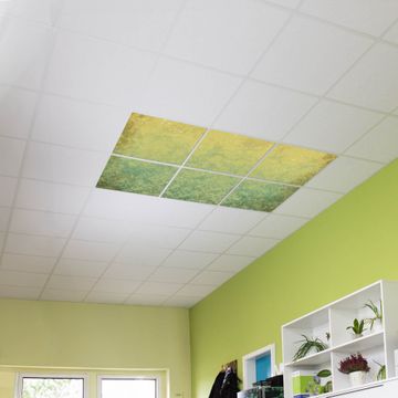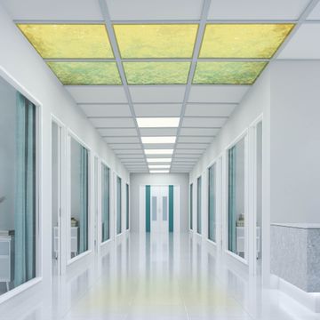 Entdecken Sie unsere vielseitigen Lichtdecken, hier in der Größe 186 x 124cm mit dem Motiv Motiv Vintage Messing - Ihre Beleuchtungslösung für jede Umgebung Beleuchten Sie Ihren Raum nicht nur, sondern schaffen Sie Atmosphäre! Die banjado Lichtdecke verwandelt jeden Ort, ob zu Hause, in Praxen, Büros oder Studios in eine Wohlfühloase. Unsere einzelnen Elemente haben eine genormte Einheitsgröße von 62 x 62cm und können somit in jede gängige Rasterdecken verbaut werden. So finden Sie Ihre passende Ausführung: Gern helfen wir Ihnen, die passende Ausführung zu wählen. Hierfür muss die aktuelle Gegebenheit Ihrer Decke oder Wand beachtet werden. Haben Sie bereits eine Rasterdecke (auch Odenwalddecke genannt)? Hier bestellen Sie lediglich das Motiv + Beleuchtungspanel, denn beides wird in die bereits vorhandene Decke eingelegt. Haben Sie eine glatte Decke mit Lichtauslass oder möchten die Lichtdecke an der Wand befestigen? Hier bestellen Sie bitte Motiv + Beleuchtungspanel + Deckenbefestigung, eine Aufbauanleitung liegt immer bei. Die Lichtdecke kann sowohl an der Decke als auch an der Wand montiert werden, perfekt für kreative Lichtakzente oder alternative Beleuchtungslösungen. Haben Sie bereits eine Lichtdecke und möchten nur das Motiv wechseln? Hier bestellen Sie bitte nur Motiv, der Wechsel ist denkbar einfach. Der Aufbau Ihrer banjado Lichtdecke gestaltet sich unkompliziert, dank einer verständlichen Anleitung, die Ihnen Schritt für Schritt durch den Montageprozess hilft. Für die endgültige Installation und den sicheren Anschluss empfehlen wir die Hinzuziehung eines Fachmanns, um die optimale Funktion und Sicherheit Ihrer Beleuchtung zu gewährleisten. Falls Sie einen Fachmann für die Installation benötigen, geben Sie uns gern Bescheid, wir vermitteln Ihnen gern einen geeigneten Ansprechpartner aus Ihrer Nähe. Steuerung: Steigern Sie Ihr Beleuchtungserlebnis mit der nahtlosen Integration in Ihr Smart Home. Durch die Kompatibilität mit der SmartLife App, Alexa und Google Assistant wird Ihr Smartphone zur zentralen Steuerungseinheit. Ihr Handy fungiert hierbei sozusagen als Fernbedienung. Legen Sie individuelle Lichtszenen in der App fest, die bei Aktivierung über den Wand-Ein-/Ausschalter immer wieder abgerufen werden können ohne Handy. Mit der Szenenfunktion in der Smart App können Sie die Beleuchtung personalisieren und steuern, sodass sie auf Ihre individuellen Bedürfnisse, Tagesrhythmus und Stimmung zugeschnitten ist. Beispielsweise können Sie sich in der Morgendämmerung durch ein sanftes Licht wecken lassen oder das Licht der Praxis werktags um 7 Uhr automatisch einschalten lassen. Dieses kann dann natürlich auch zu einer bestimmten Zeit automatisch ausgeschaltet werden. Motivwahl: Diese einzigartige Lichtdecke zeichnet sich durch ihre Fähigkeit aus, die Lichtfarbe je nach gewähltem Motiv anzupassen - ein Baum wirft ein sanftes grünes Licht, während eine Wolkendecke Ihren Raum in ein beruhigendes blaues Leuchten hüllt. Berücksichtigen Sie dies bitte bei Ihrer Motivauswahl. Sie können das Motiv jederzeit ohne großen Aufwand austauschen, ob nach Jahreszeit oder anderem Anlass, unsere Auswahl lässt kaum Wünsche offen. Wir fertigen Ihnen gern eine personalisierte Lichtdecke mit einem eigenen Motiv oder Logo oder Foto, schreiben Sie uns jederzeit an. Technische Daten: Das Motiv ist auf einer 4mm starken Acrylglas Scheibe aufgebracht, das Gesamtgewicht Ihrer Ausführung beträgt 13,6kg. Die Farbtemperatur lässt sich frei einstellen von 3000 bis 6000 Kelvin, damit können Sie stufenlos zwischen warmweiß, neutralweiß und kaltweiß wählen. Die Gesamtleistung bei Ihrer gewählten Ausführung beträgt 240W. Der Lichtstrom beträgt 3600 Lumen, die Nennspannung 230 V. Die Lichtdecke ist mit Schutzart IP20 für den Innenbereich konzipiert und sollte nicht im Nassbereich verwendet werden.
