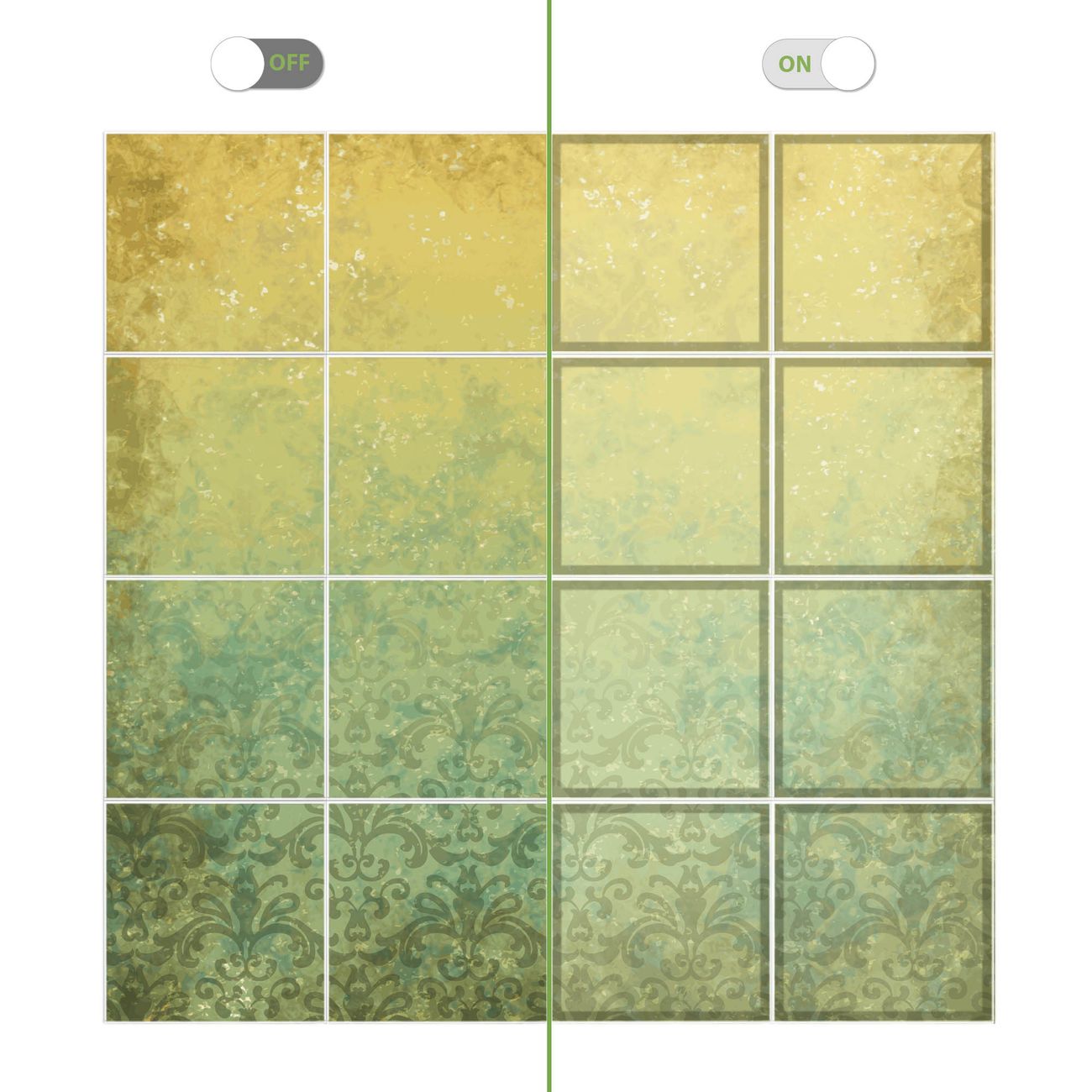 Entdecken Sie unsere vielseitigen Lichtdecken, hier in der Größe 248 x 248cm mit dem Motiv Motiv Vintage Messing - Ihre Beleuchtungslösung für jede Umgebung Beleuchten Sie Ihren Raum nicht nur, sondern schaffen Sie Atmosphäre! Die banjado Lichtdecke verwandelt jeden Ort, ob zu Hause, in Praxen, Büros oder Studios in eine Wohlfühloase. Unsere einzelnen Elemente haben eine genormte Einheitsgröße von 62 x 62cm und können somit in jede gängige Rasterdecken verbaut werden. So finden Sie Ihre passende Ausführung: Gern helfen wir Ihnen, die passende Ausführung zu wählen. Hierfür muss die aktuelle Gegebenheit Ihrer Decke oder Wand beachtet werden. Haben Sie bereits eine Rasterdecke (auch Odenwalddecke genannt)? Hier bestellen Sie lediglich das Motiv + Beleuchtungspanel, denn beides wird in die bereits vorhandene Decke eingelegt. Haben Sie eine glatte Decke mit Lichtauslass oder möchten die Lichtdecke an der Wand befestigen? Hier bestellen Sie bitte Motiv + Beleuchtungspanel + Deckenbefestigung, eine Aufbauanleitung liegt immer bei. Die Lichtdecke kann sowohl an der Decke als auch an der Wand montiert werden, perfekt für kreative Lichtakzente oder alternative Beleuchtungslösungen. Haben Sie bereits eine Lichtdecke und möchten nur das Motiv wechseln? Hier bestellen Sie bitte nur Motiv, der Wechsel ist denkbar einfach. Der Aufbau Ihrer banjado Lichtdecke gestaltet sich unkompliziert, dank einer verständlichen Anleitung, die Ihnen Schritt für Schritt durch den Montageprozess hilft. Für die endgültige Installation und den sicheren Anschluss empfehlen wir die Hinzuziehung eines Fachmanns, um die optimale Funktion und Sicherheit Ihrer Beleuchtung zu gewährleisten. Falls Sie einen Fachmann für die Installation benötigen, geben Sie uns gern Bescheid, wir vermitteln Ihnen gern einen geeigneten Ansprechpartner aus Ihrer Nähe. Steuerung: Steigern Sie Ihr Beleuchtungserlebnis mit der nahtlosen Integration in Ihr Smart Home. Durch die Kompatibilität mit der SmartLife App, Alexa und Google Assistant wird Ihr Smartphone zur zentralen Steuerungseinheit. Ihr Handy fungiert hierbei sozusagen als Fernbedienung. Legen Sie individuelle Lichtszenen in der App fest, die bei Aktivierung über den Wand-Ein-/Ausschalter immer wieder abgerufen werden können ohne Handy. Mit der Szenenfunktion in der Smart App können Sie die Beleuchtung personalisieren und steuern, sodass sie auf Ihre individuellen Bedürfnisse, Tagesrhythmus und Stimmung zugeschnitten ist. Beispielsweise können Sie sich in der Morgendämmerung durch ein sanftes Licht wecken lassen oder das Licht der Praxis werktags um 7 Uhr automatisch einschalten lassen. Dieses kann dann natürlich auch zu einer bestimmten Zeit automatisch ausgeschaltet werden. Motivwahl: Diese einzigartige Lichtdecke zeichnet sich durch ihre Fähigkeit aus, die Lichtfarbe je nach gewähltem Motiv anzupassen - ein Baum wirft ein sanftes grünes Licht, während eine Wolkendecke Ihren Raum in ein beruhigendes blaues Leuchten hüllt. Berücksichtigen Sie dies bitte bei Ihrer Motivauswahl. Sie können das Motiv jederzeit ohne großen Aufwand austauschen, ob nach Jahreszeit oder anderem Anlass, unsere Auswahl lässt kaum Wünsche offen. Wir fertigen Ihnen gern eine personalisierte Lichtdecke mit einem eigenen Motiv oder Logo oder Foto, schreiben Sie uns jederzeit an. Technische Daten: Das Motiv ist auf einer 4mm starken Acrylglas Scheibe aufgebracht, das Gesamtgewicht Ihrer Ausführung beträgt 70,9kg. Die Farbtemperatur lässt sich frei einstellen von 3000 bis 6000 Kelvin, damit können Sie stufenlos zwischen warmweiß, neutralweiß und kaltweiß wählen. Die Gesamtleistung bei Ihrer gewählten Ausführung beträgt 640W. Der Lichtstrom beträgt 3600 Lumen, die Nennspannung 230 V. Die Lichtdecke ist mit Schutzart IP20 für den Innenbereich konzipiert und sollte nicht im Nassbereich verwendet werden.