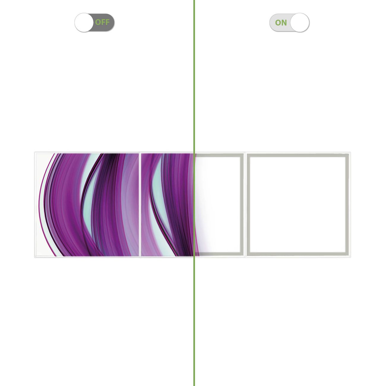 Entdecken Sie unsere vielseitigen Lichtdecken, hier in der Größe 186 x 62cm mit dem Motiv Motiv Violet Element - Ihre Beleuchtungslösung für jede Umgebung Beleuchten Sie Ihren Raum nicht nur, sondern schaffen Sie Atmosphäre! Die banjado Lichtdecke verwandelt jeden Ort, ob zu Hause, in Praxen, Büros oder Studios in eine Wohlfühloase. Unsere einzelnen Elemente haben eine genormte Einheitsgröße von 62 x 62cm und können somit in jede gängige Rasterdecken verbaut werden. So finden Sie Ihre passende Ausführung: Gern helfen wir Ihnen, die passende Ausführung zu wählen. Hierfür muss die aktuelle Gegebenheit Ihrer Decke oder Wand beachtet werden. Haben Sie bereits eine Rasterdecke (auch Odenwalddecke genannt)? Hier bestellen Sie lediglich das Motiv + Beleuchtungspanel, denn beides wird in die bereits vorhandene Decke eingelegt. Haben Sie eine glatte Decke mit Lichtauslass oder möchten die Lichtdecke an der Wand befestigen? Hier bestellen Sie bitte Motiv + Beleuchtungspanel + Deckenbefestigung, eine Aufbauanleitung liegt immer bei. Die Lichtdecke kann sowohl an der Decke als auch an der Wand montiert werden, perfekt für kreative Lichtakzente oder alternative Beleuchtungslösungen. Haben Sie bereits eine Lichtdecke und möchten nur das Motiv wechseln? Hier bestellen Sie bitte nur Motiv, der Wechsel ist denkbar einfach. Der Aufbau Ihrer banjado Lichtdecke gestaltet sich unkompliziert, dank einer verständlichen Anleitung, die Ihnen Schritt für Schritt durch den Montageprozess hilft. Für die endgültige Installation und den sicheren Anschluss empfehlen wir die Hinzuziehung eines Fachmanns, um die optimale Funktion und Sicherheit Ihrer Beleuchtung zu gewährleisten. Falls Sie einen Fachmann für die Installation benötigen, geben Sie uns gern Bescheid, wir vermitteln Ihnen gern einen geeigneten Ansprechpartner aus Ihrer Nähe. Steuerung: Steigern Sie Ihr Beleuchtungserlebnis mit der nahtlosen Integration in Ihr Smart Home. Durch die Kompatibilität mit der SmartLife App, Alexa und Google Assistant wird Ihr Smartphone zur zentralen Steuerungseinheit. Ihr Handy fungiert hierbei sozusagen als Fernbedienung. Legen Sie individuelle Lichtszenen in der App fest, die bei Aktivierung über den Wand-Ein-/Ausschalter immer wieder abgerufen werden können ohne Handy. Mit der Szenenfunktion in der Smart App können Sie die Beleuchtung personalisieren und steuern, sodass sie auf Ihre individuellen Bedürfnisse, Tagesrhythmus und Stimmung zugeschnitten ist. Beispielsweise können Sie sich in der Morgendämmerung durch ein sanftes Licht wecken lassen oder das Licht der Praxis werktags um 7 Uhr automatisch einschalten lassen. Dieses kann dann natürlich auch zu einer bestimmten Zeit automatisch ausgeschaltet werden. Motivwahl: Diese einzigartige Lichtdecke zeichnet sich durch ihre Fähigkeit aus, die Lichtfarbe je nach gewähltem Motiv anzupassen - ein Baum wirft ein sanftes grünes Licht, während eine Wolkendecke Ihren Raum in ein beruhigendes blaues Leuchten hüllt. Berücksichtigen Sie dies bitte bei Ihrer Motivauswahl. Sie können das Motiv jederzeit ohne großen Aufwand austauschen, ob nach Jahreszeit oder anderem Anlass, unsere Auswahl lässt kaum Wünsche offen. Wir fertigen Ihnen gern eine personalisierte Lichtdecke mit einem eigenen Motiv oder Logo oder Foto, schreiben Sie uns jederzeit an. Technische Daten: Das Motiv ist auf einer 4mm starken Acrylglas Scheibe aufgebracht, das Gesamtgewicht Ihrer Ausführung beträgt 13,3kg. Die Farbtemperatur lässt sich frei einstellen von 3000 bis 6000 Kelvin, damit können Sie stufenlos zwischen warmweiß, neutralweiß und kaltweiß wählen. Die Gesamtleistung bei Ihrer gewählten Ausführung beträgt 120W. Der Lichtstrom beträgt 3600 Lumen, die Nennspannung 230 V. Die Lichtdecke ist mit Schutzart IP20 für den Innenbereich konzipiert und sollte nicht im Nassbereich verwendet werden.