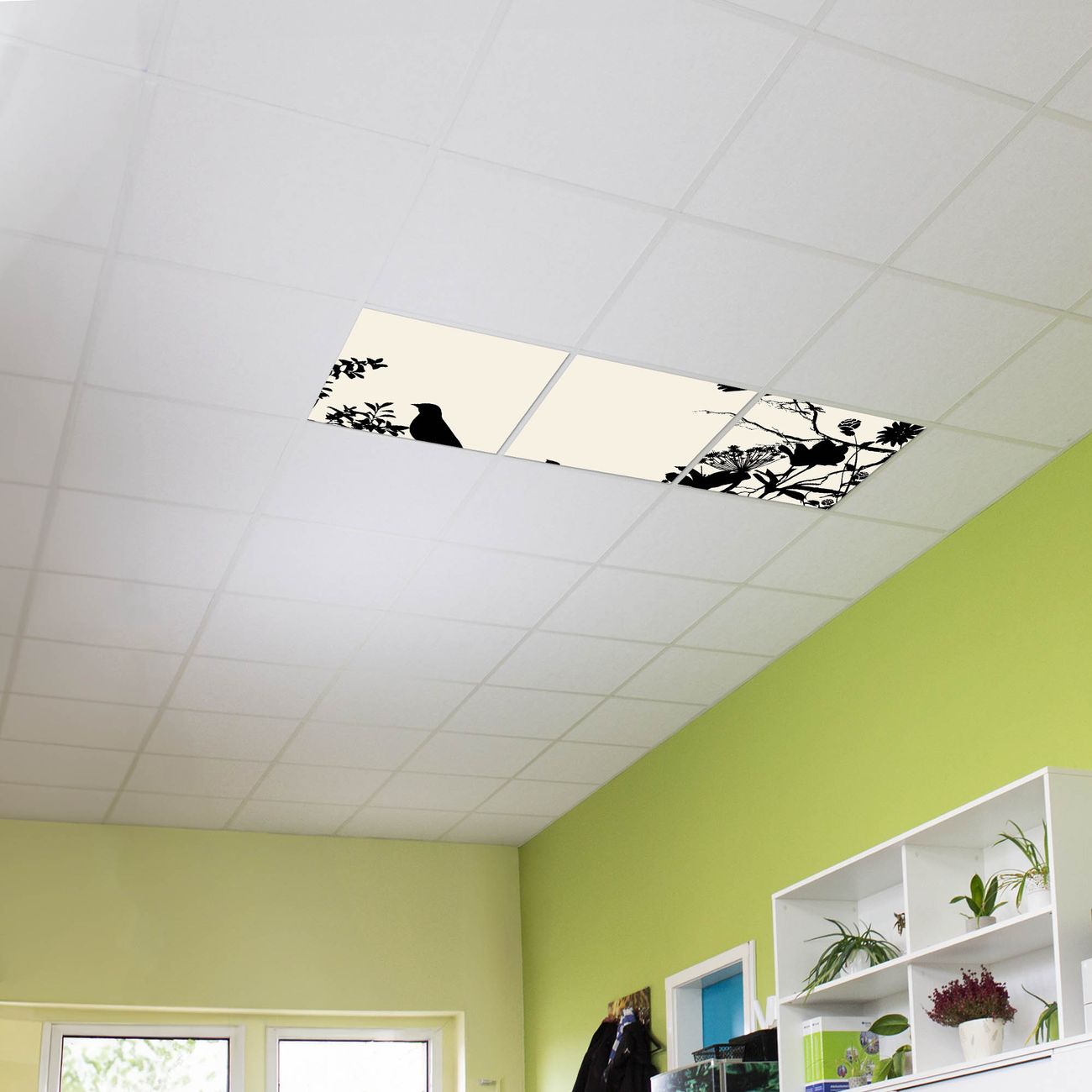 Entdecken Sie unsere vielseitigen Lichtdecken, hier in der Größe 186 x 62cm mit dem Motiv Motiv Vögel Schattenriß - Ihre Beleuchtungslösung für jede Umgebung Beleuchten Sie Ihren Raum nicht nur, sondern schaffen Sie Atmosphäre! Die banjado Lichtdecke verwandelt jeden Ort, ob zu Hause, in Praxen, Büros oder Studios in eine Wohlfühloase. Unsere einzelnen Elemente haben eine genormte Einheitsgröße von 62 x 62cm und können somit in jede gängige Rasterdecken verbaut werden. So finden Sie Ihre passende Ausführung: Gern helfen wir Ihnen, die passende Ausführung zu wählen. Hierfür muss die aktuelle Gegebenheit Ihrer Decke oder Wand beachtet werden. Haben Sie bereits eine Rasterdecke (auch Odenwalddecke genannt)? Hier bestellen Sie lediglich das Motiv + Beleuchtungspanel, denn beides wird in die bereits vorhandene Decke eingelegt. Haben Sie eine glatte Decke mit Lichtauslass oder möchten die Lichtdecke an der Wand befestigen? Hier bestellen Sie bitte Motiv + Beleuchtungspanel + Deckenbefestigung, eine Aufbauanleitung liegt immer bei. Die Lichtdecke kann sowohl an der Decke als auch an der Wand montiert werden, perfekt für kreative Lichtakzente oder alternative Beleuchtungslösungen. Haben Sie bereits eine Lichtdecke und möchten nur das Motiv wechseln? Hier bestellen Sie bitte nur Motiv, der Wechsel ist denkbar einfach. Der Aufbau Ihrer banjado Lichtdecke gestaltet sich unkompliziert, dank einer verständlichen Anleitung, die Ihnen Schritt für Schritt durch den Montageprozess hilft. Für die endgültige Installation und den sicheren Anschluss empfehlen wir die Hinzuziehung eines Fachmanns, um die optimale Funktion und Sicherheit Ihrer Beleuchtung zu gewährleisten. Falls Sie einen Fachmann für die Installation benötigen, geben Sie uns gern Bescheid, wir vermitteln Ihnen gern einen geeigneten Ansprechpartner aus Ihrer Nähe. Steuerung: Steigern Sie Ihr Beleuchtungserlebnis mit der nahtlosen Integration in Ihr Smart Home. Durch die Kompatibilität mit der SmartLife App, Alexa und Google Assistant wird Ihr Smartphone zur zentralen Steuerungseinheit. Ihr Handy fungiert hierbei sozusagen als Fernbedienung. Legen Sie individuelle Lichtszenen in der App fest, die bei Aktivierung über den Wand-Ein-/Ausschalter immer wieder abgerufen werden können ohne Handy. Mit der Szenenfunktion in der Smart App können Sie die Beleuchtung personalisieren und steuern, sodass sie auf Ihre individuellen Bedürfnisse, Tagesrhythmus und Stimmung zugeschnitten ist. Beispielsweise können Sie sich in der Morgendämmerung durch ein sanftes Licht wecken lassen oder das Licht der Praxis werktags um 7 Uhr automatisch einschalten lassen. Dieses kann dann natürlich auch zu einer bestimmten Zeit automatisch ausgeschaltet werden. Motivwahl: Diese einzigartige Lichtdecke zeichnet sich durch ihre Fähigkeit aus, die Lichtfarbe je nach gewähltem Motiv anzupassen - ein Baum wirft ein sanftes grünes Licht, während eine Wolkendecke Ihren Raum in ein beruhigendes blaues Leuchten hüllt. Berücksichtigen Sie dies bitte bei Ihrer Motivauswahl. Sie können das Motiv jederzeit ohne großen Aufwand austauschen, ob nach Jahreszeit oder anderem Anlass, unsere Auswahl lässt kaum Wünsche offen. Wir fertigen Ihnen gern eine personalisierte Lichtdecke mit einem eigenen Motiv oder Logo oder Foto, schreiben Sie uns jederzeit an. Technische Daten: Das Motiv ist auf einer 4mm starken Acrylglas Scheibe aufgebracht, das Gesamtgewicht Ihrer Ausführung beträgt 13,3kg. Die Farbtemperatur lässt sich frei einstellen von 3000 bis 6000 Kelvin, damit können Sie stufenlos zwischen warmweiß, neutralweiß und kaltweiß wählen. Die Gesamtleistung bei Ihrer gewählten Ausführung beträgt 120W. Der Lichtstrom beträgt 3600 Lumen, die Nennspannung 230 V. Die Lichtdecke ist mit Schutzart IP20 für den Innenbereich konzipiert und sollte nicht im Nassbereich verwendet werden.