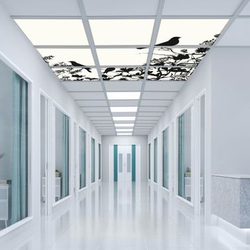 Entdecken Sie unsere vielseitigen Lichtdecken, hier in der Größe 186 x 186cm mit dem Motiv Motiv Vögel Schattenriß - Ihre Beleuchtungslösung für jede Umgebung Beleuchten Sie Ihren Raum nicht nur, sondern schaffen Sie Atmosphäre! Die banjado Lichtdecke verwandelt jeden Ort, ob zu Hause, in Praxen, Büros oder Studios in eine Wohlfühloase. Unsere einzelnen Elemente haben eine genormte Einheitsgröße von 62 x 62cm und können somit in jede gängige Rasterdecken verbaut werden. So finden Sie Ihre passende Ausführung: Gern helfen wir Ihnen, die passende Ausführung zu wählen. Hierfür muss die aktuelle Gegebenheit Ihrer Decke oder Wand beachtet werden. Haben Sie bereits eine Rasterdecke (auch Odenwalddecke genannt)? Hier bestellen Sie lediglich das Motiv + Beleuchtungspanel, denn beides wird in die bereits vorhandene Decke eingelegt. Haben Sie eine glatte Decke mit Lichtauslass oder möchten die Lichtdecke an der Wand befestigen? Hier bestellen Sie bitte Motiv + Beleuchtungspanel + Deckenbefestigung, eine Aufbauanleitung liegt immer bei. Die Lichtdecke kann sowohl an der Decke als auch an der Wand montiert werden, perfekt für kreative Lichtakzente oder alternative Beleuchtungslösungen. Haben Sie bereits eine Lichtdecke und möchten nur das Motiv wechseln? Hier bestellen Sie bitte nur Motiv, der Wechsel ist denkbar einfach. Der Aufbau Ihrer banjado Lichtdecke gestaltet sich unkompliziert, dank einer verständlichen Anleitung, die Ihnen Schritt für Schritt durch den Montageprozess hilft. Für die endgültige Installation und den sicheren Anschluss empfehlen wir die Hinzuziehung eines Fachmanns, um die optimale Funktion und Sicherheit Ihrer Beleuchtung zu gewährleisten. Falls Sie einen Fachmann für die Installation benötigen, geben Sie uns gern Bescheid, wir vermitteln Ihnen gern einen geeigneten Ansprechpartner aus Ihrer Nähe. Steuerung: Steigern Sie Ihr Beleuchtungserlebnis mit der nahtlosen Integration in Ihr Smart Home. Durch die Kompatibilität mit der SmartLife App, Alexa und Google Assistant wird Ihr Smartphone zur zentralen Steuerungseinheit. Ihr Handy fungiert hierbei sozusagen als Fernbedienung. Legen Sie individuelle Lichtszenen in der App fest, die bei Aktivierung über den Wand-Ein-/Ausschalter immer wieder abgerufen werden können ohne Handy. Mit der Szenenfunktion in der Smart App können Sie die Beleuchtung personalisieren und steuern, sodass sie auf Ihre individuellen Bedürfnisse, Tagesrhythmus und Stimmung zugeschnitten ist. Beispielsweise können Sie sich in der Morgendämmerung durch ein sanftes Licht wecken lassen oder das Licht der Praxis werktags um 7 Uhr automatisch einschalten lassen. Dieses kann dann natürlich auch zu einer bestimmten Zeit automatisch ausgeschaltet werden. Motivwahl: Diese einzigartige Lichtdecke zeichnet sich durch ihre Fähigkeit aus, die Lichtfarbe je nach gewähltem Motiv anzupassen - ein Baum wirft ein sanftes grünes Licht, während eine Wolkendecke Ihren Raum in ein beruhigendes blaues Leuchten hüllt. Berücksichtigen Sie dies bitte bei Ihrer Motivauswahl. Sie können das Motiv jederzeit ohne großen Aufwand austauschen, ob nach Jahreszeit oder anderem Anlass, unsere Auswahl lässt kaum Wünsche offen. Wir fertigen Ihnen gern eine personalisierte Lichtdecke mit einem eigenen Motiv oder Logo oder Foto, schreiben Sie uns jederzeit an. Technische Daten: Das Motiv ist auf einer 4mm starken Acrylglas Scheibe aufgebracht, das Gesamtgewicht Ihrer Ausführung beträgt 39,9kg. Die Farbtemperatur lässt sich frei einstellen von 3000 bis 6000 Kelvin, damit können Sie stufenlos zwischen warmweiß, neutralweiß und kaltweiß wählen. Die Gesamtleistung bei Ihrer gewählten Ausführung beträgt 360W. Der Lichtstrom beträgt 3600 Lumen, die Nennspannung 230 V. Die Lichtdecke ist mit Schutzart IP20 für den Innenbereich konzipiert und sollte nicht im Nassbereich verwendet werden.
