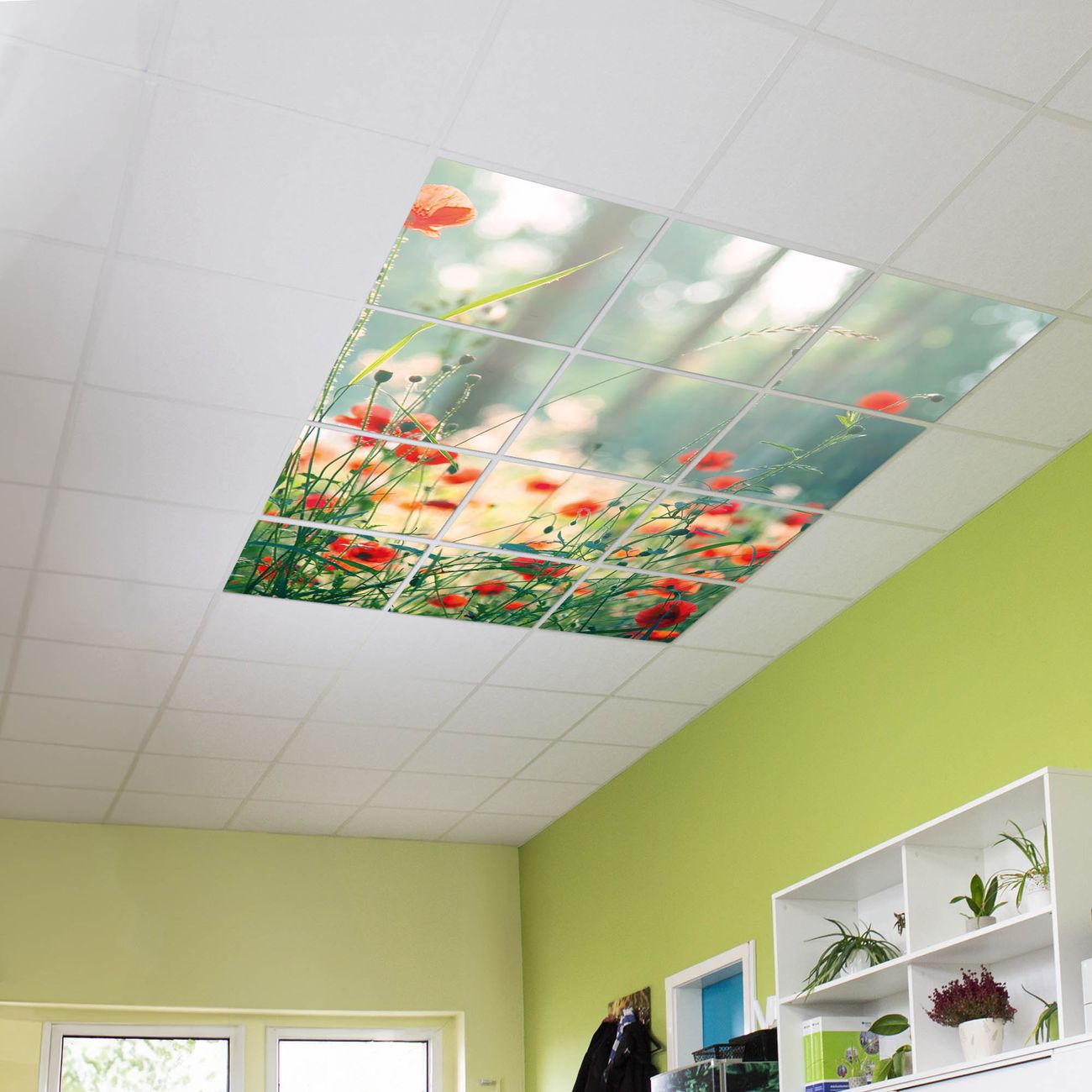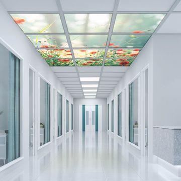 Entdecken Sie unsere vielseitigen Lichtdecken, hier in der Größe 186 x 248cm mit dem Motiv Motiv Waldmohn - Ihre Beleuchtungslösung für jede Umgebung Beleuchten Sie Ihren Raum nicht nur, sondern schaffen Sie Atmosphäre! Die banjado Lichtdecke verwandelt jeden Ort, ob zu Hause, in Praxen, Büros oder Studios in eine Wohlfühloase. Unsere einzelnen Elemente haben eine genormte Einheitsgröße von 62 x 62cm und können somit in jede gängige Rasterdecken verbaut werden. So finden Sie Ihre passende Ausführung: Gern helfen wir Ihnen, die passende Ausführung zu wählen. Hierfür muss die aktuelle Gegebenheit Ihrer Decke oder Wand beachtet werden. Haben Sie bereits eine Rasterdecke (auch Odenwalddecke genannt)? Hier bestellen Sie lediglich das Motiv + Beleuchtungspanel, denn beides wird in die bereits vorhandene Decke eingelegt. Haben Sie eine glatte Decke mit Lichtauslass oder möchten die Lichtdecke an der Wand befestigen? Hier bestellen Sie bitte Motiv + Beleuchtungspanel + Deckenbefestigung, eine Aufbauanleitung liegt immer bei. Die Lichtdecke kann sowohl an der Decke als auch an der Wand montiert werden, perfekt für kreative Lichtakzente oder alternative Beleuchtungslösungen. Haben Sie bereits eine Lichtdecke und möchten nur das Motiv wechseln? Hier bestellen Sie bitte nur Motiv, der Wechsel ist denkbar einfach. Der Aufbau Ihrer banjado Lichtdecke gestaltet sich unkompliziert, dank einer verständlichen Anleitung, die Ihnen Schritt für Schritt durch den Montageprozess hilft. Für die endgültige Installation und den sicheren Anschluss empfehlen wir die Hinzuziehung eines Fachmanns, um die optimale Funktion und Sicherheit Ihrer Beleuchtung zu gewährleisten. Falls Sie einen Fachmann für die Installation benötigen, geben Sie uns gern Bescheid, wir vermitteln Ihnen gern einen geeigneten Ansprechpartner aus Ihrer Nähe. Steuerung: Steigern Sie Ihr Beleuchtungserlebnis mit der nahtlosen Integration in Ihr Smart Home. Durch die Kompatibilität mit der SmartLife App, Alexa und Google Assistant wird Ihr Smartphone zur zentralen Steuerungseinheit. Ihr Handy fungiert hierbei sozusagen als Fernbedienung. Legen Sie individuelle Lichtszenen in der App fest, die bei Aktivierung über den Wand-Ein-/Ausschalter immer wieder abgerufen werden können ohne Handy. Mit der Szenenfunktion in der Smart App können Sie die Beleuchtung personalisieren und steuern, sodass sie auf Ihre individuellen Bedürfnisse, Tagesrhythmus und Stimmung zugeschnitten ist. Beispielsweise können Sie sich in der Morgendämmerung durch ein sanftes Licht wecken lassen oder das Licht der Praxis werktags um 7 Uhr automatisch einschalten lassen. Dieses kann dann natürlich auch zu einer bestimmten Zeit automatisch ausgeschaltet werden. Motivwahl: Diese einzigartige Lichtdecke zeichnet sich durch ihre Fähigkeit aus, die Lichtfarbe je nach gewähltem Motiv anzupassen - ein Baum wirft ein sanftes grünes Licht, während eine Wolkendecke Ihren Raum in ein beruhigendes blaues Leuchten hüllt. Berücksichtigen Sie dies bitte bei Ihrer Motivauswahl. Sie können das Motiv jederzeit ohne großen Aufwand austauschen, ob nach Jahreszeit oder anderem Anlass, unsere Auswahl lässt kaum Wünsche offen. Wir fertigen Ihnen gern eine personalisierte Lichtdecke mit einem eigenen Motiv oder Logo oder Foto, schreiben Sie uns jederzeit an. Technische Daten: Das Motiv ist auf einer 4mm starken Acrylglas Scheibe aufgebracht, das Gesamtgewicht Ihrer Ausführung beträgt 53,1kg. Die Farbtemperatur lässt sich frei einstellen von 3000 bis 6000 Kelvin, damit können Sie stufenlos zwischen warmweiß, neutralweiß und kaltweiß wählen. Die Gesamtleistung bei Ihrer gewählten Ausführung beträgt 480W. Der Lichtstrom beträgt 3600 Lumen, die Nennspannung 230 V. Die Lichtdecke ist mit Schutzart IP20 für den Innenbereich konzipiert und sollte nicht im Nassbereich verwendet werden.