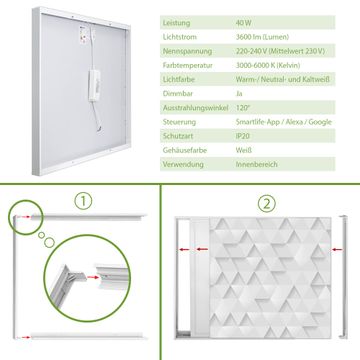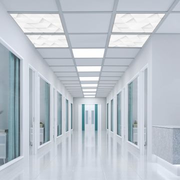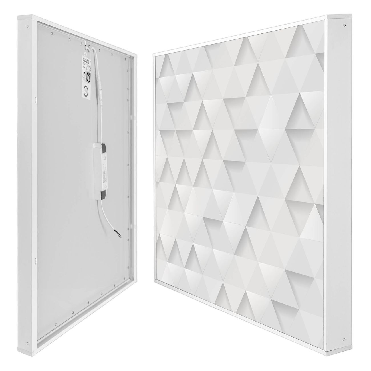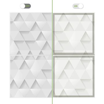 Entdecken Sie unsere vielseitigen Lichtdecken, hier in der Größe 124 x 124cm mit dem Motiv Motiv Weisse Dreiecke - Ihre Beleuchtungslösung für jede Umgebung Beleuchten Sie Ihren Raum nicht nur, sondern schaffen Sie Atmosphäre! Die banjado Lichtdecke verwandelt jeden Ort, ob zu Hause, in Praxen, Büros oder Studios in eine Wohlfühloase. Unsere einzelnen Elemente haben eine genormte Einheitsgröße von 62 x 62cm und können somit in jede gängige Rasterdecken verbaut werden. So finden Sie Ihre passende Ausführung: Gern helfen wir Ihnen, die passende Ausführung zu wählen. Hierfür muss die aktuelle Gegebenheit Ihrer Decke oder Wand beachtet werden. Haben Sie bereits eine Rasterdecke (auch Odenwalddecke genannt)? Hier bestellen Sie lediglich das Motiv + Beleuchtungspanel, denn beides wird in die bereits vorhandene Decke eingelegt. Haben Sie eine glatte Decke mit Lichtauslass oder möchten die Lichtdecke an der Wand befestigen? Hier bestellen Sie bitte Motiv + Beleuchtungspanel + Deckenbefestigung, eine Aufbauanleitung liegt immer bei. Die Lichtdecke kann sowohl an der Decke als auch an der Wand montiert werden, perfekt für kreative Lichtakzente oder alternative Beleuchtungslösungen. Haben Sie bereits eine Lichtdecke und möchten nur das Motiv wechseln? Hier bestellen Sie bitte nur Motiv, der Wechsel ist denkbar einfach. Der Aufbau Ihrer banjado Lichtdecke gestaltet sich unkompliziert, dank einer verständlichen Anleitung, die Ihnen Schritt für Schritt durch den Montageprozess hilft. Für die endgültige Installation und den sicheren Anschluss empfehlen wir die Hinzuziehung eines Fachmanns, um die optimale Funktion und Sicherheit Ihrer Beleuchtung zu gewährleisten. Falls Sie einen Fachmann für die Installation benötigen, geben Sie uns gern Bescheid, wir vermitteln Ihnen gern einen geeigneten Ansprechpartner aus Ihrer Nähe. Steuerung: Steigern Sie Ihr Beleuchtungserlebnis mit der nahtlosen Integration in Ihr Smart Home. Durch die Kompatibilität mit der SmartLife App, Alexa und Google Assistant wird Ihr Smartphone zur zentralen Steuerungseinheit. Ihr Handy fungiert hierbei sozusagen als Fernbedienung. Legen Sie individuelle Lichtszenen in der App fest, die bei Aktivierung über den Wand-Ein-/Ausschalter immer wieder abgerufen werden können ohne Handy. Mit der Szenenfunktion in der Smart App können Sie die Beleuchtung personalisieren und steuern, sodass sie auf Ihre individuellen Bedürfnisse, Tagesrhythmus und Stimmung zugeschnitten ist. Beispielsweise können Sie sich in der Morgendämmerung durch ein sanftes Licht wecken lassen oder das Licht der Praxis werktags um 7 Uhr automatisch einschalten lassen. Dieses kann dann natürlich auch zu einer bestimmten Zeit automatisch ausgeschaltet werden. Motivwahl: Diese einzigartige Lichtdecke zeichnet sich durch ihre Fähigkeit aus, die Lichtfarbe je nach gewähltem Motiv anzupassen - ein Baum wirft ein sanftes grünes Licht, während eine Wolkendecke Ihren Raum in ein beruhigendes blaues Leuchten hüllt. Berücksichtigen Sie dies bitte bei Ihrer Motivauswahl. Sie können das Motiv jederzeit ohne großen Aufwand austauschen, ob nach Jahreszeit oder anderem Anlass, unsere Auswahl lässt kaum Wünsche offen. Wir fertigen Ihnen gern eine personalisierte Lichtdecke mit einem eigenen Motiv oder Logo oder Foto, schreiben Sie uns jederzeit an. Technische Daten: Das Motiv ist auf einer 4mm starken Acrylglas Scheibe aufgebracht, das Gesamtgewicht Ihrer Ausführung beträgt 17,7kg. Die Farbtemperatur lässt sich frei einstellen von 3000 bis 6000 Kelvin, damit können Sie stufenlos zwischen warmweiß, neutralweiß und kaltweiß wählen. Die Gesamtleistung bei Ihrer gewählten Ausführung beträgt 160W. Der Lichtstrom beträgt 3600 Lumen, die Nennspannung 230 V. Die Lichtdecke ist mit Schutzart IP20 für den Innenbereich konzipiert und sollte nicht im Nassbereich verwendet werden.