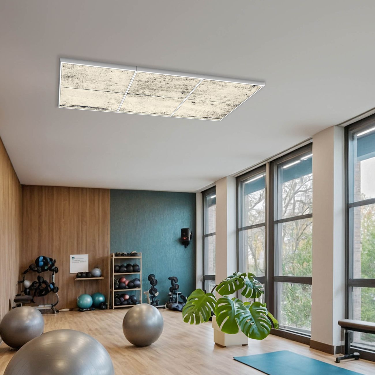 Entdecken Sie unsere vielseitigen Lichtdecken, hier in der Größe 186 x 62cm mit dem Motiv Motiv Weiße Planken H - Ihre Beleuchtungslösung für jede Umgebung Beleuchten Sie Ihren Raum nicht nur, sondern schaffen Sie Atmosphäre! Die banjado Lichtdecke verwandelt jeden Ort, ob zu Hause, in Praxen, Büros oder Studios in eine Wohlfühloase. Unsere einzelnen Elemente haben eine genormte Einheitsgröße von 62 x 62cm und können somit in jede gängige Rasterdecken verbaut werden. So finden Sie Ihre passende Ausführung: Gern helfen wir Ihnen, die passende Ausführung zu wählen. Hierfür muss die aktuelle Gegebenheit Ihrer Decke oder Wand beachtet werden. Haben Sie bereits eine Rasterdecke (auch Odenwalddecke genannt)? Hier bestellen Sie lediglich das Motiv + Beleuchtungspanel, denn beides wird in die bereits vorhandene Decke eingelegt. Haben Sie eine glatte Decke mit Lichtauslass oder möchten die Lichtdecke an der Wand befestigen? Hier bestellen Sie bitte Motiv + Beleuchtungspanel + Deckenbefestigung, eine Aufbauanleitung liegt immer bei. Die Lichtdecke kann sowohl an der Decke als auch an der Wand montiert werden, perfekt für kreative Lichtakzente oder alternative Beleuchtungslösungen. Haben Sie bereits eine Lichtdecke und möchten nur das Motiv wechseln? Hier bestellen Sie bitte nur Motiv, der Wechsel ist denkbar einfach. Der Aufbau Ihrer banjado Lichtdecke gestaltet sich unkompliziert, dank einer verständlichen Anleitung, die Ihnen Schritt für Schritt durch den Montageprozess hilft. Für die endgültige Installation und den sicheren Anschluss empfehlen wir die Hinzuziehung eines Fachmanns, um die optimale Funktion und Sicherheit Ihrer Beleuchtung zu gewährleisten. Falls Sie einen Fachmann für die Installation benötigen, geben Sie uns gern Bescheid, wir vermitteln Ihnen gern einen geeigneten Ansprechpartner aus Ihrer Nähe. Steuerung: Steigern Sie Ihr Beleuchtungserlebnis mit der nahtlosen Integration in Ihr Smart Home. Durch die Kompatibilität mit der SmartLife App, Alexa und Google Assistant wird Ihr Smartphone zur zentralen Steuerungseinheit. Ihr Handy fungiert hierbei sozusagen als Fernbedienung. Legen Sie individuelle Lichtszenen in der App fest, die bei Aktivierung über den Wand-Ein-/Ausschalter immer wieder abgerufen werden können ohne Handy. Mit der Szenenfunktion in der Smart App können Sie die Beleuchtung personalisieren und steuern, sodass sie auf Ihre individuellen Bedürfnisse, Tagesrhythmus und Stimmung zugeschnitten ist. Beispielsweise können Sie sich in der Morgendämmerung durch ein sanftes Licht wecken lassen oder das Licht der Praxis werktags um 7 Uhr automatisch einschalten lassen. Dieses kann dann natürlich auch zu einer bestimmten Zeit automatisch ausgeschaltet werden. Motivwahl: Diese einzigartige Lichtdecke zeichnet sich durch ihre Fähigkeit aus, die Lichtfarbe je nach gewähltem Motiv anzupassen - ein Baum wirft ein sanftes grünes Licht, während eine Wolkendecke Ihren Raum in ein beruhigendes blaues Leuchten hüllt. Berücksichtigen Sie dies bitte bei Ihrer Motivauswahl. Sie können das Motiv jederzeit ohne großen Aufwand austauschen, ob nach Jahreszeit oder anderem Anlass, unsere Auswahl lässt kaum Wünsche offen. Wir fertigen Ihnen gern eine personalisierte Lichtdecke mit einem eigenen Motiv oder Logo oder Foto, schreiben Sie uns jederzeit an. Technische Daten: Das Motiv ist auf einer 4mm starken Acrylglas Scheibe aufgebracht, das Gesamtgewicht Ihrer Ausführung beträgt 14,8kg. Die Farbtemperatur lässt sich frei einstellen von 3000 bis 6000 Kelvin, damit können Sie stufenlos zwischen warmweiß, neutralweiß und kaltweiß wählen. Die Gesamtleistung bei Ihrer gewählten Ausführung beträgt 120W. Der Lichtstrom beträgt 3600 Lumen, die Nennspannung 230 V. Die Lichtdecke ist mit Schutzart IP20 für den Innenbereich konzipiert und sollte nicht im Nassbereich verwendet werden.