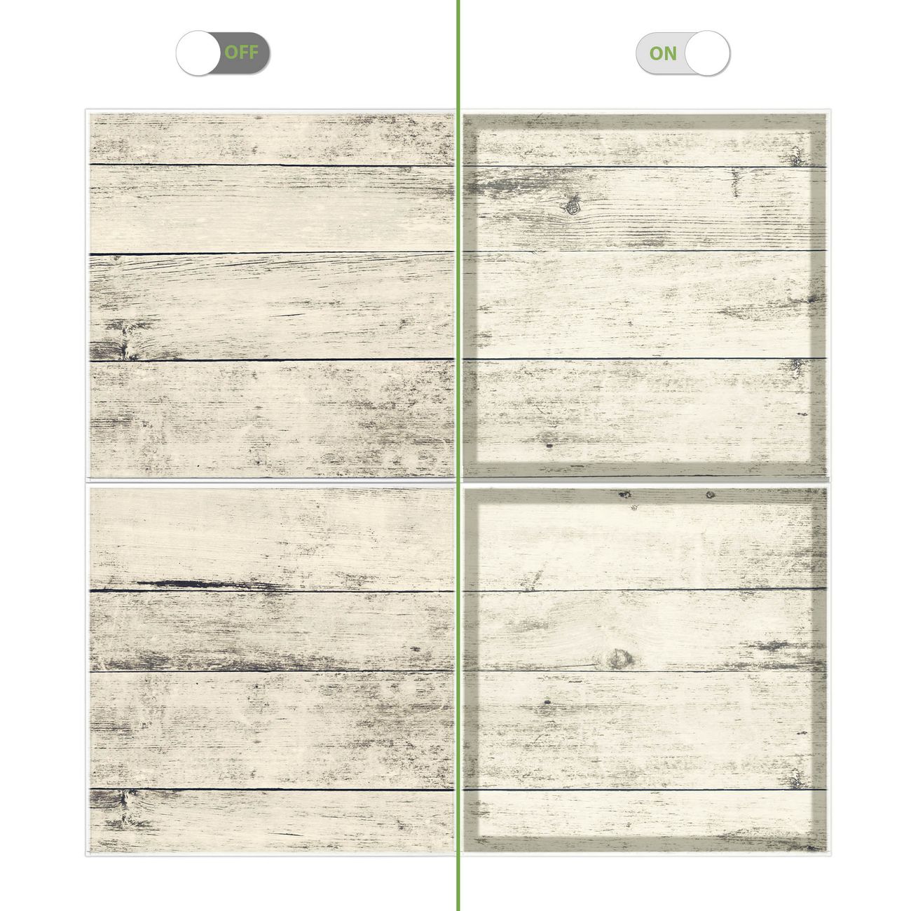 Entdecken Sie unsere vielseitigen Lichtdecken, hier in der Größe 124 x 124cm mit dem Motiv Motiv Weiße Planken H - Ihre Beleuchtungslösung für jede Umgebung Beleuchten Sie Ihren Raum nicht nur, sondern schaffen Sie Atmosphäre! Die banjado Lichtdecke verwandelt jeden Ort, ob zu Hause, in Praxen, Büros oder Studios in eine Wohlfühloase. Unsere einzelnen Elemente haben eine genormte Einheitsgröße von 62 x 62cm und können somit in jede gängige Rasterdecken verbaut werden. So finden Sie Ihre passende Ausführung: Gern helfen wir Ihnen, die passende Ausführung zu wählen. Hierfür muss die aktuelle Gegebenheit Ihrer Decke oder Wand beachtet werden. Haben Sie bereits eine Rasterdecke (auch Odenwalddecke genannt)? Hier bestellen Sie lediglich das Motiv + Beleuchtungspanel, denn beides wird in die bereits vorhandene Decke eingelegt. Haben Sie eine glatte Decke mit Lichtauslass oder möchten die Lichtdecke an der Wand befestigen? Hier bestellen Sie bitte Motiv + Beleuchtungspanel + Deckenbefestigung, eine Aufbauanleitung liegt immer bei. Die Lichtdecke kann sowohl an der Decke als auch an der Wand montiert werden, perfekt für kreative Lichtakzente oder alternative Beleuchtungslösungen. Haben Sie bereits eine Lichtdecke und möchten nur das Motiv wechseln? Hier bestellen Sie bitte nur Motiv, der Wechsel ist denkbar einfach. Der Aufbau Ihrer banjado Lichtdecke gestaltet sich unkompliziert, dank einer verständlichen Anleitung, die Ihnen Schritt für Schritt durch den Montageprozess hilft. Für die endgültige Installation und den sicheren Anschluss empfehlen wir die Hinzuziehung eines Fachmanns, um die optimale Funktion und Sicherheit Ihrer Beleuchtung zu gewährleisten. Falls Sie einen Fachmann für die Installation benötigen, geben Sie uns gern Bescheid, wir vermitteln Ihnen gern einen geeigneten Ansprechpartner aus Ihrer Nähe. Steuerung: Steigern Sie Ihr Beleuchtungserlebnis mit der nahtlosen Integration in Ihr Smart Home. Durch die Kompatibilität mit der SmartLife App, Alexa und Google Assistant wird Ihr Smartphone zur zentralen Steuerungseinheit. Ihr Handy fungiert hierbei sozusagen als Fernbedienung. Legen Sie individuelle Lichtszenen in der App fest, die bei Aktivierung über den Wand-Ein-/Ausschalter immer wieder abgerufen werden können ohne Handy. Mit der Szenenfunktion in der Smart App können Sie die Beleuchtung personalisieren und steuern, sodass sie auf Ihre individuellen Bedürfnisse, Tagesrhythmus und Stimmung zugeschnitten ist. Beispielsweise können Sie sich in der Morgendämmerung durch ein sanftes Licht wecken lassen oder das Licht der Praxis werktags um 7 Uhr automatisch einschalten lassen. Dieses kann dann natürlich auch zu einer bestimmten Zeit automatisch ausgeschaltet werden. Motivwahl: Diese einzigartige Lichtdecke zeichnet sich durch ihre Fähigkeit aus, die Lichtfarbe je nach gewähltem Motiv anzupassen - ein Baum wirft ein sanftes grünes Licht, während eine Wolkendecke Ihren Raum in ein beruhigendes blaues Leuchten hüllt. Berücksichtigen Sie dies bitte bei Ihrer Motivauswahl. Sie können das Motiv jederzeit ohne großen Aufwand austauschen, ob nach Jahreszeit oder anderem Anlass, unsere Auswahl lässt kaum Wünsche offen. Wir fertigen Ihnen gern eine personalisierte Lichtdecke mit einem eigenen Motiv oder Logo oder Foto, schreiben Sie uns jederzeit an. Technische Daten: Das Motiv ist auf einer 4mm starken Acrylglas Scheibe aufgebracht, das Gesamtgewicht Ihrer Ausführung beträgt 17,7kg. Die Farbtemperatur lässt sich frei einstellen von 3000 bis 6000 Kelvin, damit können Sie stufenlos zwischen warmweiß, neutralweiß und kaltweiß wählen. Die Gesamtleistung bei Ihrer gewählten Ausführung beträgt 160W. Der Lichtstrom beträgt 3600 Lumen, die Nennspannung 230 V. Die Lichtdecke ist mit Schutzart IP20 für den Innenbereich konzipiert und sollte nicht im Nassbereich verwendet werden.