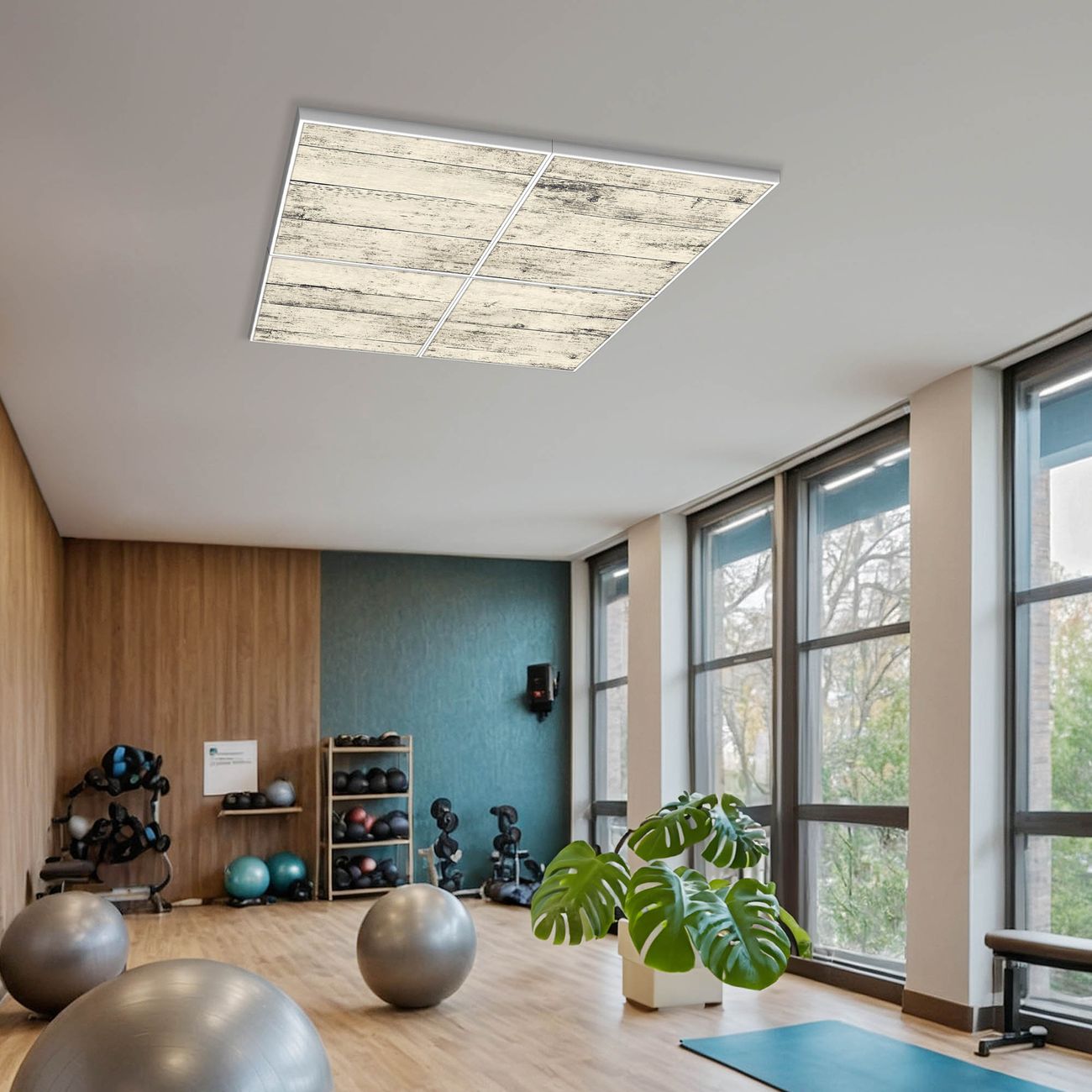Entdecken Sie unsere vielseitigen Lichtdecken, hier in der Größe 124 x 124cm mit dem Motiv Motiv Weiße Planken H - Ihre Beleuchtungslösung für jede Umgebung Beleuchten Sie Ihren Raum nicht nur, sondern schaffen Sie Atmosphäre! Die banjado Lichtdecke verwandelt jeden Ort, ob zu Hause, in Praxen, Büros oder Studios in eine Wohlfühloase. Unsere einzelnen Elemente haben eine genormte Einheitsgröße von 62 x 62cm und können somit in jede gängige Rasterdecken verbaut werden. So finden Sie Ihre passende Ausführung: Gern helfen wir Ihnen, die passende Ausführung zu wählen. Hierfür muss die aktuelle Gegebenheit Ihrer Decke oder Wand beachtet werden. Haben Sie bereits eine Rasterdecke (auch Odenwalddecke genannt)? Hier bestellen Sie lediglich das Motiv + Beleuchtungspanel, denn beides wird in die bereits vorhandene Decke eingelegt. Haben Sie eine glatte Decke mit Lichtauslass oder möchten die Lichtdecke an der Wand befestigen? Hier bestellen Sie bitte Motiv + Beleuchtungspanel + Deckenbefestigung, eine Aufbauanleitung liegt immer bei. Die Lichtdecke kann sowohl an der Decke als auch an der Wand montiert werden, perfekt für kreative Lichtakzente oder alternative Beleuchtungslösungen. Haben Sie bereits eine Lichtdecke und möchten nur das Motiv wechseln? Hier bestellen Sie bitte nur Motiv, der Wechsel ist denkbar einfach. Der Aufbau Ihrer banjado Lichtdecke gestaltet sich unkompliziert, dank einer verständlichen Anleitung, die Ihnen Schritt für Schritt durch den Montageprozess hilft. Für die endgültige Installation und den sicheren Anschluss empfehlen wir die Hinzuziehung eines Fachmanns, um die optimale Funktion und Sicherheit Ihrer Beleuchtung zu gewährleisten. Falls Sie einen Fachmann für die Installation benötigen, geben Sie uns gern Bescheid, wir vermitteln Ihnen gern einen geeigneten Ansprechpartner aus Ihrer Nähe. Steuerung: Steigern Sie Ihr Beleuchtungserlebnis mit der nahtlosen Integration in Ihr Smart Home. Durch die Kompatibilität mit der SmartLife App, Alexa und Google Assistant wird Ihr Smartphone zur zentralen Steuerungseinheit. Ihr Handy fungiert hierbei sozusagen als Fernbedienung. Legen Sie individuelle Lichtszenen in der App fest, die bei Aktivierung über den Wand-Ein-/Ausschalter immer wieder abgerufen werden können ohne Handy. Mit der Szenenfunktion in der Smart App können Sie die Beleuchtung personalisieren und steuern, sodass sie auf Ihre individuellen Bedürfnisse, Tagesrhythmus und Stimmung zugeschnitten ist. Beispielsweise können Sie sich in der Morgendämmerung durch ein sanftes Licht wecken lassen oder das Licht der Praxis werktags um 7 Uhr automatisch einschalten lassen. Dieses kann dann natürlich auch zu einer bestimmten Zeit automatisch ausgeschaltet werden. Motivwahl: Diese einzigartige Lichtdecke zeichnet sich durch ihre Fähigkeit aus, die Lichtfarbe je nach gewähltem Motiv anzupassen - ein Baum wirft ein sanftes grünes Licht, während eine Wolkendecke Ihren Raum in ein beruhigendes blaues Leuchten hüllt. Berücksichtigen Sie dies bitte bei Ihrer Motivauswahl. Sie können das Motiv jederzeit ohne großen Aufwand austauschen, ob nach Jahreszeit oder anderem Anlass, unsere Auswahl lässt kaum Wünsche offen. Wir fertigen Ihnen gern eine personalisierte Lichtdecke mit einem eigenen Motiv oder Logo oder Foto, schreiben Sie uns jederzeit an. Technische Daten: Das Motiv ist auf einer 4mm starken Acrylglas Scheibe aufgebracht, das Gesamtgewicht Ihrer Ausführung beträgt 19,7kg. Die Farbtemperatur lässt sich frei einstellen von 3000 bis 6000 Kelvin, damit können Sie stufenlos zwischen warmweiß, neutralweiß und kaltweiß wählen. Die Gesamtleistung bei Ihrer gewählten Ausführung beträgt 160W. Der Lichtstrom beträgt 3600 Lumen, die Nennspannung 230 V. Die Lichtdecke ist mit Schutzart IP20 für den Innenbereich konzipiert und sollte nicht im Nassbereich verwendet werden.