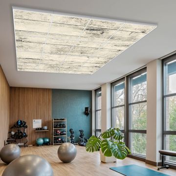 Entdecken Sie unsere vielseitigen Lichtdecken, hier in der Größe 248 x 248cm mit dem Motiv Motiv Weiße Planken H - Ihre Beleuchtungslösung für jede Umgebung Beleuchten Sie Ihren Raum nicht nur, sondern schaffen Sie Atmosphäre! Die banjado Lichtdecke verwandelt jeden Ort, ob zu Hause, in Praxen, Büros oder Studios in eine Wohlfühloase. Unsere einzelnen Elemente haben eine genormte Einheitsgröße von 62 x 62cm und können somit in jede gängige Rasterdecken verbaut werden. So finden Sie Ihre passende Ausführung: Gern helfen wir Ihnen, die passende Ausführung zu wählen. Hierfür muss die aktuelle Gegebenheit Ihrer Decke oder Wand beachtet werden. Haben Sie bereits eine Rasterdecke (auch Odenwalddecke genannt)? Hier bestellen Sie lediglich das Motiv + Beleuchtungspanel, denn beides wird in die bereits vorhandene Decke eingelegt. Haben Sie eine glatte Decke mit Lichtauslass oder möchten die Lichtdecke an der Wand befestigen? Hier bestellen Sie bitte Motiv + Beleuchtungspanel + Deckenbefestigung, eine Aufbauanleitung liegt immer bei. Die Lichtdecke kann sowohl an der Decke als auch an der Wand montiert werden, perfekt für kreative Lichtakzente oder alternative Beleuchtungslösungen. Haben Sie bereits eine Lichtdecke und möchten nur das Motiv wechseln? Hier bestellen Sie bitte nur Motiv, der Wechsel ist denkbar einfach. Der Aufbau Ihrer banjado Lichtdecke gestaltet sich unkompliziert, dank einer verständlichen Anleitung, die Ihnen Schritt für Schritt durch den Montageprozess hilft. Für die endgültige Installation und den sicheren Anschluss empfehlen wir die Hinzuziehung eines Fachmanns, um die optimale Funktion und Sicherheit Ihrer Beleuchtung zu gewährleisten. Falls Sie einen Fachmann für die Installation benötigen, geben Sie uns gern Bescheid, wir vermitteln Ihnen gern einen geeigneten Ansprechpartner aus Ihrer Nähe. Steuerung: Steigern Sie Ihr Beleuchtungserlebnis mit der nahtlosen Integration in Ihr Smart Home. Durch die Kompatibilität mit der SmartLife App, Alexa und Google Assistant wird Ihr Smartphone zur zentralen Steuerungseinheit. Ihr Handy fungiert hierbei sozusagen als Fernbedienung. Legen Sie individuelle Lichtszenen in der App fest, die bei Aktivierung über den Wand-Ein-/Ausschalter immer wieder abgerufen werden können ohne Handy. Mit der Szenenfunktion in der Smart App können Sie die Beleuchtung personalisieren und steuern, sodass sie auf Ihre individuellen Bedürfnisse, Tagesrhythmus und Stimmung zugeschnitten ist. Beispielsweise können Sie sich in der Morgendämmerung durch ein sanftes Licht wecken lassen oder das Licht der Praxis werktags um 7 Uhr automatisch einschalten lassen. Dieses kann dann natürlich auch zu einer bestimmten Zeit automatisch ausgeschaltet werden. Motivwahl: Diese einzigartige Lichtdecke zeichnet sich durch ihre Fähigkeit aus, die Lichtfarbe je nach gewähltem Motiv anzupassen - ein Baum wirft ein sanftes grünes Licht, während eine Wolkendecke Ihren Raum in ein beruhigendes blaues Leuchten hüllt. Berücksichtigen Sie dies bitte bei Ihrer Motivauswahl. Sie können das Motiv jederzeit ohne großen Aufwand austauschen, ob nach Jahreszeit oder anderem Anlass, unsere Auswahl lässt kaum Wünsche offen. Wir fertigen Ihnen gern eine personalisierte Lichtdecke mit einem eigenen Motiv oder Logo oder Foto, schreiben Sie uns jederzeit an. Technische Daten: Das Motiv ist auf einer 4mm starken Acrylglas Scheibe aufgebracht, das Gesamtgewicht Ihrer Ausführung beträgt 78,9kg. Die Farbtemperatur lässt sich frei einstellen von 3000 bis 6000 Kelvin, damit können Sie stufenlos zwischen warmweiß, neutralweiß und kaltweiß wählen. Die Gesamtleistung bei Ihrer gewählten Ausführung beträgt 640W. Der Lichtstrom beträgt 3600 Lumen, die Nennspannung 230 V. Die Lichtdecke ist mit Schutzart IP20 für den Innenbereich konzipiert und sollte nicht im Nassbereich verwendet werden.