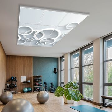 Entdecken Sie unsere vielseitigen Lichtdecken, hier in der Größe 186 x 248cm mit dem Motiv Motiv Weiße Ringe - Ihre Beleuchtungslösung für jede Umgebung Beleuchten Sie Ihren Raum nicht nur, sondern schaffen Sie Atmosphäre! Die banjado Lichtdecke verwandelt jeden Ort, ob zu Hause, in Praxen, Büros oder Studios in eine Wohlfühloase. Unsere einzelnen Elemente haben eine genormte Einheitsgröße von 62 x 62cm und können somit in jede gängige Rasterdecken verbaut werden. So finden Sie Ihre passende Ausführung: Gern helfen wir Ihnen, die passende Ausführung zu wählen. Hierfür muss die aktuelle Gegebenheit Ihrer Decke oder Wand beachtet werden. Haben Sie bereits eine Rasterdecke (auch Odenwalddecke genannt)? Hier bestellen Sie lediglich das Motiv + Beleuchtungspanel, denn beides wird in die bereits vorhandene Decke eingelegt. Haben Sie eine glatte Decke mit Lichtauslass oder möchten die Lichtdecke an der Wand befestigen? Hier bestellen Sie bitte Motiv + Beleuchtungspanel + Deckenbefestigung, eine Aufbauanleitung liegt immer bei. Die Lichtdecke kann sowohl an der Decke als auch an der Wand montiert werden, perfekt für kreative Lichtakzente oder alternative Beleuchtungslösungen. Haben Sie bereits eine Lichtdecke und möchten nur das Motiv wechseln? Hier bestellen Sie bitte nur Motiv, der Wechsel ist denkbar einfach. Der Aufbau Ihrer banjado Lichtdecke gestaltet sich unkompliziert, dank einer verständlichen Anleitung, die Ihnen Schritt für Schritt durch den Montageprozess hilft. Für die endgültige Installation und den sicheren Anschluss empfehlen wir die Hinzuziehung eines Fachmanns, um die optimale Funktion und Sicherheit Ihrer Beleuchtung zu gewährleisten. Falls Sie einen Fachmann für die Installation benötigen, geben Sie uns gern Bescheid, wir vermitteln Ihnen gern einen geeigneten Ansprechpartner aus Ihrer Nähe. Steuerung: Steigern Sie Ihr Beleuchtungserlebnis mit der nahtlosen Integration in Ihr Smart Home. Durch die Kompatibilität mit der SmartLife App, Alexa und Google Assistant wird Ihr Smartphone zur zentralen Steuerungseinheit. Ihr Handy fungiert hierbei sozusagen als Fernbedienung. Legen Sie individuelle Lichtszenen in der App fest, die bei Aktivierung über den Wand-Ein-/Ausschalter immer wieder abgerufen werden können ohne Handy. Mit der Szenenfunktion in der Smart App können Sie die Beleuchtung personalisieren und steuern, sodass sie auf Ihre individuellen Bedürfnisse, Tagesrhythmus und Stimmung zugeschnitten ist. Beispielsweise können Sie sich in der Morgendämmerung durch ein sanftes Licht wecken lassen oder das Licht der Praxis werktags um 7 Uhr automatisch einschalten lassen. Dieses kann dann natürlich auch zu einer bestimmten Zeit automatisch ausgeschaltet werden. Motivwahl: Diese einzigartige Lichtdecke zeichnet sich durch ihre Fähigkeit aus, die Lichtfarbe je nach gewähltem Motiv anzupassen - ein Baum wirft ein sanftes grünes Licht, während eine Wolkendecke Ihren Raum in ein beruhigendes blaues Leuchten hüllt. Berücksichtigen Sie dies bitte bei Ihrer Motivauswahl. Sie können das Motiv jederzeit ohne großen Aufwand austauschen, ob nach Jahreszeit oder anderem Anlass, unsere Auswahl lässt kaum Wünsche offen. Wir fertigen Ihnen gern eine personalisierte Lichtdecke mit einem eigenen Motiv oder Logo oder Foto, schreiben Sie uns jederzeit an. Technische Daten: Das Motiv ist auf einer 4mm starken Acrylglas Scheibe aufgebracht, das Gesamtgewicht Ihrer Ausführung beträgt 59,1kg. Die Farbtemperatur lässt sich frei einstellen von 3000 bis 6000 Kelvin, damit können Sie stufenlos zwischen warmweiß, neutralweiß und kaltweiß wählen. Die Gesamtleistung bei Ihrer gewählten Ausführung beträgt 480W. Der Lichtstrom beträgt 3600 Lumen, die Nennspannung 230 V. Die Lichtdecke ist mit Schutzart IP20 für den Innenbereich konzipiert und sollte nicht im Nassbereich verwendet werden.