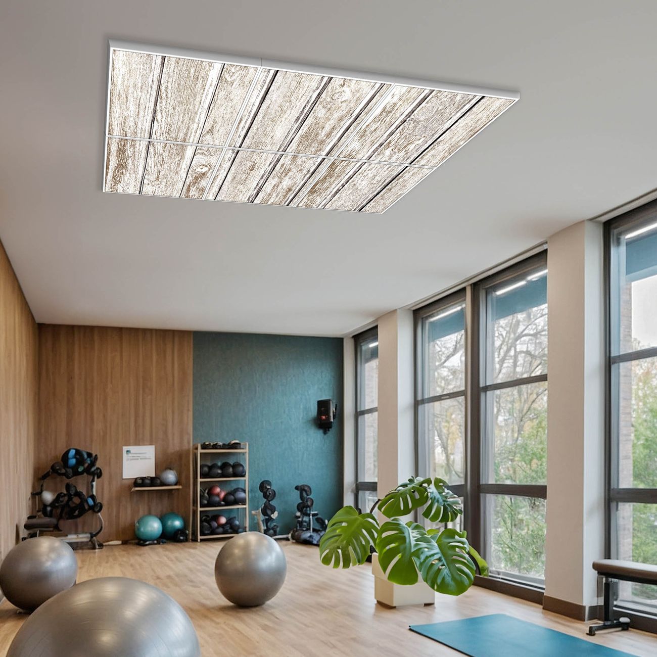 Entdecken Sie unsere vielseitigen Lichtdecken, hier in der Größe 186 x 124cm mit dem Motiv Motiv Weißes Holz - Ihre Beleuchtungslösung für jede Umgebung Beleuchten Sie Ihren Raum nicht nur, sondern schaffen Sie Atmosphäre! Die banjado Lichtdecke verwandelt jeden Ort, ob zu Hause, in Praxen, Büros oder Studios in eine Wohlfühloase. Unsere einzelnen Elemente haben eine genormte Einheitsgröße von 62 x 62cm und können somit in jede gängige Rasterdecken verbaut werden. So finden Sie Ihre passende Ausführung: Gern helfen wir Ihnen, die passende Ausführung zu wählen. Hierfür muss die aktuelle Gegebenheit Ihrer Decke oder Wand beachtet werden. Haben Sie bereits eine Rasterdecke (auch Odenwalddecke genannt)? Hier bestellen Sie lediglich das Motiv + Beleuchtungspanel, denn beides wird in die bereits vorhandene Decke eingelegt. Haben Sie eine glatte Decke mit Lichtauslass oder möchten die Lichtdecke an der Wand befestigen? Hier bestellen Sie bitte Motiv + Beleuchtungspanel + Deckenbefestigung, eine Aufbauanleitung liegt immer bei. Die Lichtdecke kann sowohl an der Decke als auch an der Wand montiert werden, perfekt für kreative Lichtakzente oder alternative Beleuchtungslösungen. Haben Sie bereits eine Lichtdecke und möchten nur das Motiv wechseln? Hier bestellen Sie bitte nur Motiv, der Wechsel ist denkbar einfach. Der Aufbau Ihrer banjado Lichtdecke gestaltet sich unkompliziert, dank einer verständlichen Anleitung, die Ihnen Schritt für Schritt durch den Montageprozess hilft. Für die endgültige Installation und den sicheren Anschluss empfehlen wir die Hinzuziehung eines Fachmanns, um die optimale Funktion und Sicherheit Ihrer Beleuchtung zu gewährleisten. Falls Sie einen Fachmann für die Installation benötigen, geben Sie uns gern Bescheid, wir vermitteln Ihnen gern einen geeigneten Ansprechpartner aus Ihrer Nähe. Steuerung: Steigern Sie Ihr Beleuchtungserlebnis mit der nahtlosen Integration in Ihr Smart Home. Durch die Kompatibilität mit der SmartLife App, Alexa und Google Assistant wird Ihr Smartphone zur zentralen Steuerungseinheit. Ihr Handy fungiert hierbei sozusagen als Fernbedienung. Legen Sie individuelle Lichtszenen in der App fest, die bei Aktivierung über den Wand-Ein-/Ausschalter immer wieder abgerufen werden können ohne Handy. Mit der Szenenfunktion in der Smart App können Sie die Beleuchtung personalisieren und steuern, sodass sie auf Ihre individuellen Bedürfnisse, Tagesrhythmus und Stimmung zugeschnitten ist. Beispielsweise können Sie sich in der Morgendämmerung durch ein sanftes Licht wecken lassen oder das Licht der Praxis werktags um 7 Uhr automatisch einschalten lassen. Dieses kann dann natürlich auch zu einer bestimmten Zeit automatisch ausgeschaltet werden. Motivwahl: Diese einzigartige Lichtdecke zeichnet sich durch ihre Fähigkeit aus, die Lichtfarbe je nach gewähltem Motiv anzupassen - ein Baum wirft ein sanftes grünes Licht, während eine Wolkendecke Ihren Raum in ein beruhigendes blaues Leuchten hüllt. Berücksichtigen Sie dies bitte bei Ihrer Motivauswahl. Sie können das Motiv jederzeit ohne großen Aufwand austauschen, ob nach Jahreszeit oder anderem Anlass, unsere Auswahl lässt kaum Wünsche offen. Wir fertigen Ihnen gern eine personalisierte Lichtdecke mit einem eigenen Motiv oder Logo oder Foto, schreiben Sie uns jederzeit an. Technische Daten: Das Motiv ist auf einer 4mm starken Acrylglas Scheibe aufgebracht, das Gesamtgewicht Ihrer Ausführung beträgt 29,6kg. Die Farbtemperatur lässt sich frei einstellen von 3000 bis 6000 Kelvin, damit können Sie stufenlos zwischen warmweiß, neutralweiß und kaltweiß wählen. Die Gesamtleistung bei Ihrer gewählten Ausführung beträgt 240W. Der Lichtstrom beträgt 3600 Lumen, die Nennspannung 230 V. Die Lichtdecke ist mit Schutzart IP20 für den Innenbereich konzipiert und sollte nicht im Nassbereich verwendet werden.