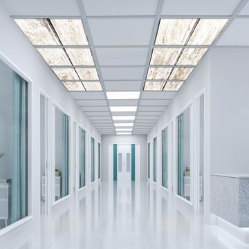 Entdecken Sie unsere vielseitigen Lichtdecken, hier in der Größe 124 x 248cm mit dem Motiv Motiv Weißes Holz - Ihre Beleuchtungslösung für jede Umgebung Beleuchten Sie Ihren Raum nicht nur, sondern schaffen Sie Atmosphäre! Die banjado Lichtdecke verwandelt jeden Ort, ob zu Hause, in Praxen, Büros oder Studios in eine Wohlfühloase. Unsere einzelnen Elemente haben eine genormte Einheitsgröße von 62 x 62cm und können somit in jede gängige Rasterdecken verbaut werden. So finden Sie Ihre passende Ausführung: Gern helfen wir Ihnen, die passende Ausführung zu wählen. Hierfür muss die aktuelle Gegebenheit Ihrer Decke oder Wand beachtet werden. Haben Sie bereits eine Rasterdecke (auch Odenwalddecke genannt)? Hier bestellen Sie lediglich das Motiv + Beleuchtungspanel, denn beides wird in die bereits vorhandene Decke eingelegt. Haben Sie eine glatte Decke mit Lichtauslass oder möchten die Lichtdecke an der Wand befestigen? Hier bestellen Sie bitte Motiv + Beleuchtungspanel + Deckenbefestigung, eine Aufbauanleitung liegt immer bei. Die Lichtdecke kann sowohl an der Decke als auch an der Wand montiert werden, perfekt für kreative Lichtakzente oder alternative Beleuchtungslösungen. Haben Sie bereits eine Lichtdecke und möchten nur das Motiv wechseln? Hier bestellen Sie bitte nur Motiv, der Wechsel ist denkbar einfach. Der Aufbau Ihrer banjado Lichtdecke gestaltet sich unkompliziert, dank einer verständlichen Anleitung, die Ihnen Schritt für Schritt durch den Montageprozess hilft. Für die endgültige Installation und den sicheren Anschluss empfehlen wir die Hinzuziehung eines Fachmanns, um die optimale Funktion und Sicherheit Ihrer Beleuchtung zu gewährleisten. Falls Sie einen Fachmann für die Installation benötigen, geben Sie uns gern Bescheid, wir vermitteln Ihnen gern einen geeigneten Ansprechpartner aus Ihrer Nähe. Steuerung: Steigern Sie Ihr Beleuchtungserlebnis mit der nahtlosen Integration in Ihr Smart Home. Durch die Kompatibilität mit der SmartLife App, Alexa und Google Assistant wird Ihr Smartphone zur zentralen Steuerungseinheit. Ihr Handy fungiert hierbei sozusagen als Fernbedienung. Legen Sie individuelle Lichtszenen in der App fest, die bei Aktivierung über den Wand-Ein-/Ausschalter immer wieder abgerufen werden können ohne Handy. Mit der Szenenfunktion in der Smart App können Sie die Beleuchtung personalisieren und steuern, sodass sie auf Ihre individuellen Bedürfnisse, Tagesrhythmus und Stimmung zugeschnitten ist. Beispielsweise können Sie sich in der Morgendämmerung durch ein sanftes Licht wecken lassen oder das Licht der Praxis werktags um 7 Uhr automatisch einschalten lassen. Dieses kann dann natürlich auch zu einer bestimmten Zeit automatisch ausgeschaltet werden. Motivwahl: Diese einzigartige Lichtdecke zeichnet sich durch ihre Fähigkeit aus, die Lichtfarbe je nach gewähltem Motiv anzupassen - ein Baum wirft ein sanftes grünes Licht, während eine Wolkendecke Ihren Raum in ein beruhigendes blaues Leuchten hüllt. Berücksichtigen Sie dies bitte bei Ihrer Motivauswahl. Sie können das Motiv jederzeit ohne großen Aufwand austauschen, ob nach Jahreszeit oder anderem Anlass, unsere Auswahl lässt kaum Wünsche offen. Wir fertigen Ihnen gern eine personalisierte Lichtdecke mit einem eigenen Motiv oder Logo oder Foto, schreiben Sie uns jederzeit an. Technische Daten: Das Motiv ist auf einer 4mm starken Acrylglas Scheibe aufgebracht, das Gesamtgewicht Ihrer Ausführung beträgt 35,4kg. Die Farbtemperatur lässt sich frei einstellen von 3000 bis 6000 Kelvin, damit können Sie stufenlos zwischen warmweiß, neutralweiß und kaltweiß wählen. Die Gesamtleistung bei Ihrer gewählten Ausführung beträgt 320W. Der Lichtstrom beträgt 3600 Lumen, die Nennspannung 230 V. Die Lichtdecke ist mit Schutzart IP20 für den Innenbereich konzipiert und sollte nicht im Nassbereich verwendet werden.