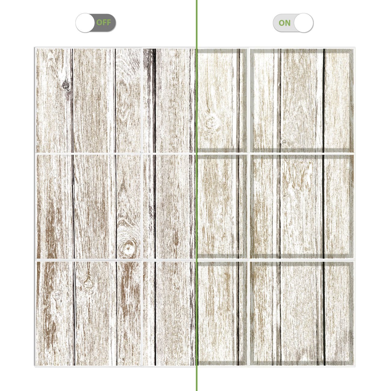 Entdecken Sie unsere vielseitigen Lichtdecken, hier in der Größe 186 x 186cm mit dem Motiv Motiv Weißes Holz - Ihre Beleuchtungslösung für jede Umgebung Beleuchten Sie Ihren Raum nicht nur, sondern schaffen Sie Atmosphäre! Die banjado Lichtdecke verwandelt jeden Ort, ob zu Hause, in Praxen, Büros oder Studios in eine Wohlfühloase. Unsere einzelnen Elemente haben eine genormte Einheitsgröße von 62 x 62cm und können somit in jede gängige Rasterdecken verbaut werden. So finden Sie Ihre passende Ausführung: Gern helfen wir Ihnen, die passende Ausführung zu wählen. Hierfür muss die aktuelle Gegebenheit Ihrer Decke oder Wand beachtet werden. Haben Sie bereits eine Rasterdecke (auch Odenwalddecke genannt)? Hier bestellen Sie lediglich das Motiv + Beleuchtungspanel, denn beides wird in die bereits vorhandene Decke eingelegt. Haben Sie eine glatte Decke mit Lichtauslass oder möchten die Lichtdecke an der Wand befestigen? Hier bestellen Sie bitte Motiv + Beleuchtungspanel + Deckenbefestigung, eine Aufbauanleitung liegt immer bei. Die Lichtdecke kann sowohl an der Decke als auch an der Wand montiert werden, perfekt für kreative Lichtakzente oder alternative Beleuchtungslösungen. Haben Sie bereits eine Lichtdecke und möchten nur das Motiv wechseln? Hier bestellen Sie bitte nur Motiv, der Wechsel ist denkbar einfach. Der Aufbau Ihrer banjado Lichtdecke gestaltet sich unkompliziert, dank einer verständlichen Anleitung, die Ihnen Schritt für Schritt durch den Montageprozess hilft. Für die endgültige Installation und den sicheren Anschluss empfehlen wir die Hinzuziehung eines Fachmanns, um die optimale Funktion und Sicherheit Ihrer Beleuchtung zu gewährleisten. Falls Sie einen Fachmann für die Installation benötigen, geben Sie uns gern Bescheid, wir vermitteln Ihnen gern einen geeigneten Ansprechpartner aus Ihrer Nähe. Steuerung: Steigern Sie Ihr Beleuchtungserlebnis mit der nahtlosen Integration in Ihr Smart Home. Durch die Kompatibilität mit der SmartLife App, Alexa und Google Assistant wird Ihr Smartphone zur zentralen Steuerungseinheit. Ihr Handy fungiert hierbei sozusagen als Fernbedienung. Legen Sie individuelle Lichtszenen in der App fest, die bei Aktivierung über den Wand-Ein-/Ausschalter immer wieder abgerufen werden können ohne Handy. Mit der Szenenfunktion in der Smart App können Sie die Beleuchtung personalisieren und steuern, sodass sie auf Ihre individuellen Bedürfnisse, Tagesrhythmus und Stimmung zugeschnitten ist. Beispielsweise können Sie sich in der Morgendämmerung durch ein sanftes Licht wecken lassen oder das Licht der Praxis werktags um 7 Uhr automatisch einschalten lassen. Dieses kann dann natürlich auch zu einer bestimmten Zeit automatisch ausgeschaltet werden. Motivwahl: Diese einzigartige Lichtdecke zeichnet sich durch ihre Fähigkeit aus, die Lichtfarbe je nach gewähltem Motiv anzupassen - ein Baum wirft ein sanftes grünes Licht, während eine Wolkendecke Ihren Raum in ein beruhigendes blaues Leuchten hüllt. Berücksichtigen Sie dies bitte bei Ihrer Motivauswahl. Sie können das Motiv jederzeit ohne großen Aufwand austauschen, ob nach Jahreszeit oder anderem Anlass, unsere Auswahl lässt kaum Wünsche offen. Wir fertigen Ihnen gern eine personalisierte Lichtdecke mit einem eigenen Motiv oder Logo oder Foto, schreiben Sie uns jederzeit an. Technische Daten: Das Motiv ist auf einer 4mm starken Acrylglas Scheibe aufgebracht, das Gesamtgewicht Ihrer Ausführung beträgt 39,9kg. Die Farbtemperatur lässt sich frei einstellen von 3000 bis 6000 Kelvin, damit können Sie stufenlos zwischen warmweiß, neutralweiß und kaltweiß wählen. Die Gesamtleistung bei Ihrer gewählten Ausführung beträgt 360W. Der Lichtstrom beträgt 3600 Lumen, die Nennspannung 230 V. Die Lichtdecke ist mit Schutzart IP20 für den Innenbereich konzipiert und sollte nicht im Nassbereich verwendet werden.