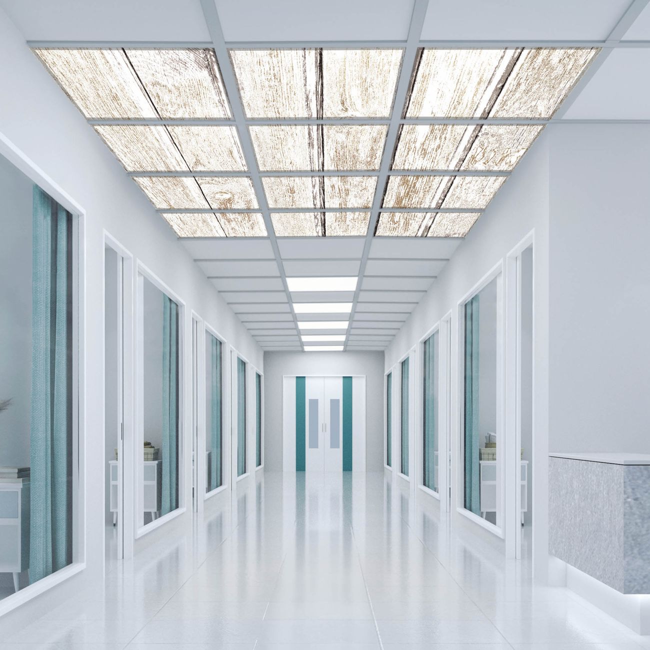 Entdecken Sie unsere vielseitigen Lichtdecken, hier in der Größe 186 x 248cm mit dem Motiv Motiv Weißes Holz - Ihre Beleuchtungslösung für jede Umgebung Beleuchten Sie Ihren Raum nicht nur, sondern schaffen Sie Atmosphäre! Die banjado Lichtdecke verwandelt jeden Ort, ob zu Hause, in Praxen, Büros oder Studios in eine Wohlfühloase. Unsere einzelnen Elemente haben eine genormte Einheitsgröße von 62 x 62cm und können somit in jede gängige Rasterdecken verbaut werden. So finden Sie Ihre passende Ausführung: Gern helfen wir Ihnen, die passende Ausführung zu wählen. Hierfür muss die aktuelle Gegebenheit Ihrer Decke oder Wand beachtet werden. Haben Sie bereits eine Rasterdecke (auch Odenwalddecke genannt)? Hier bestellen Sie lediglich das Motiv + Beleuchtungspanel, denn beides wird in die bereits vorhandene Decke eingelegt. Haben Sie eine glatte Decke mit Lichtauslass oder möchten die Lichtdecke an der Wand befestigen? Hier bestellen Sie bitte Motiv + Beleuchtungspanel + Deckenbefestigung, eine Aufbauanleitung liegt immer bei. Die Lichtdecke kann sowohl an der Decke als auch an der Wand montiert werden, perfekt für kreative Lichtakzente oder alternative Beleuchtungslösungen. Haben Sie bereits eine Lichtdecke und möchten nur das Motiv wechseln? Hier bestellen Sie bitte nur Motiv, der Wechsel ist denkbar einfach. Der Aufbau Ihrer banjado Lichtdecke gestaltet sich unkompliziert, dank einer verständlichen Anleitung, die Ihnen Schritt für Schritt durch den Montageprozess hilft. Für die endgültige Installation und den sicheren Anschluss empfehlen wir die Hinzuziehung eines Fachmanns, um die optimale Funktion und Sicherheit Ihrer Beleuchtung zu gewährleisten. Falls Sie einen Fachmann für die Installation benötigen, geben Sie uns gern Bescheid, wir vermitteln Ihnen gern einen geeigneten Ansprechpartner aus Ihrer Nähe. Steuerung: Steigern Sie Ihr Beleuchtungserlebnis mit der nahtlosen Integration in Ihr Smart Home. Durch die Kompatibilität mit der SmartLife App, Alexa und Google Assistant wird Ihr Smartphone zur zentralen Steuerungseinheit. Ihr Handy fungiert hierbei sozusagen als Fernbedienung. Legen Sie individuelle Lichtszenen in der App fest, die bei Aktivierung über den Wand-Ein-/Ausschalter immer wieder abgerufen werden können ohne Handy. Mit der Szenenfunktion in der Smart App können Sie die Beleuchtung personalisieren und steuern, sodass sie auf Ihre individuellen Bedürfnisse, Tagesrhythmus und Stimmung zugeschnitten ist. Beispielsweise können Sie sich in der Morgendämmerung durch ein sanftes Licht wecken lassen oder das Licht der Praxis werktags um 7 Uhr automatisch einschalten lassen. Dieses kann dann natürlich auch zu einer bestimmten Zeit automatisch ausgeschaltet werden. Motivwahl: Diese einzigartige Lichtdecke zeichnet sich durch ihre Fähigkeit aus, die Lichtfarbe je nach gewähltem Motiv anzupassen - ein Baum wirft ein sanftes grünes Licht, während eine Wolkendecke Ihren Raum in ein beruhigendes blaues Leuchten hüllt. Berücksichtigen Sie dies bitte bei Ihrer Motivauswahl. Sie können das Motiv jederzeit ohne großen Aufwand austauschen, ob nach Jahreszeit oder anderem Anlass, unsere Auswahl lässt kaum Wünsche offen. Wir fertigen Ihnen gern eine personalisierte Lichtdecke mit einem eigenen Motiv oder Logo oder Foto, schreiben Sie uns jederzeit an. Technische Daten: Das Motiv ist auf einer 4mm starken Acrylglas Scheibe aufgebracht, das Gesamtgewicht Ihrer Ausführung beträgt 53,1kg. Die Farbtemperatur lässt sich frei einstellen von 3000 bis 6000 Kelvin, damit können Sie stufenlos zwischen warmweiß, neutralweiß und kaltweiß wählen. Die Gesamtleistung bei Ihrer gewählten Ausführung beträgt 480W. Der Lichtstrom beträgt 3600 Lumen, die Nennspannung 230 V. Die Lichtdecke ist mit Schutzart IP20 für den Innenbereich konzipiert und sollte nicht im Nassbereich verwendet werden.