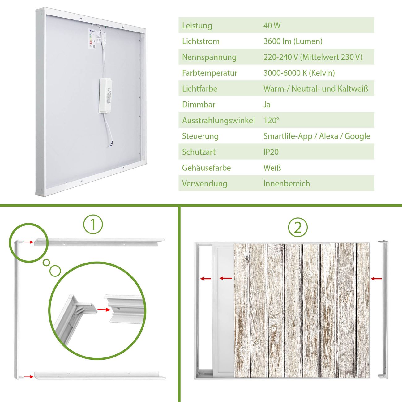 banjado Motivlichtdecke LED Lampe Smart Home verschiedene Größen Motiv Weißes Holz