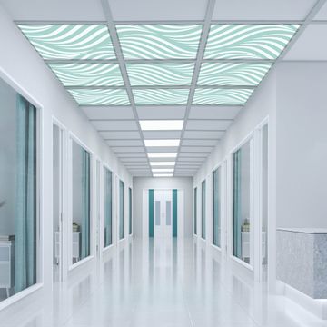Entdecken Sie unsere vielseitigen Lichtdecken, hier in der Größe 186 x 186cm mit dem Motiv Motiv Wellen Lindgrün - Ihre Beleuchtungslösung für jede Umgebung Beleuchten Sie Ihren Raum nicht nur, sondern schaffen Sie Atmosphäre! Die banjado Lichtdecke verwandelt jeden Ort, ob zu Hause, in Praxen, Büros oder Studios in eine Wohlfühloase. Unsere einzelnen Elemente haben eine genormte Einheitsgröße von 62 x 62cm und können somit in jede gängige Rasterdecken verbaut werden. So finden Sie Ihre passende Ausführung: Gern helfen wir Ihnen, die passende Ausführung zu wählen. Hierfür muss die aktuelle Gegebenheit Ihrer Decke oder Wand beachtet werden. Haben Sie bereits eine Rasterdecke (auch Odenwalddecke genannt)? Hier bestellen Sie lediglich das Motiv + Beleuchtungspanel, denn beides wird in die bereits vorhandene Decke eingelegt. Haben Sie eine glatte Decke mit Lichtauslass oder möchten die Lichtdecke an der Wand befestigen? Hier bestellen Sie bitte Motiv + Beleuchtungspanel + Deckenbefestigung, eine Aufbauanleitung liegt immer bei. Die Lichtdecke kann sowohl an der Decke als auch an der Wand montiert werden, perfekt für kreative Lichtakzente oder alternative Beleuchtungslösungen. Haben Sie bereits eine Lichtdecke und möchten nur das Motiv wechseln? Hier bestellen Sie bitte nur Motiv, der Wechsel ist denkbar einfach. Der Aufbau Ihrer banjado Lichtdecke gestaltet sich unkompliziert, dank einer verständlichen Anleitung, die Ihnen Schritt für Schritt durch den Montageprozess hilft. Für die endgültige Installation und den sicheren Anschluss empfehlen wir die Hinzuziehung eines Fachmanns, um die optimale Funktion und Sicherheit Ihrer Beleuchtung zu gewährleisten. Falls Sie einen Fachmann für die Installation benötigen, geben Sie uns gern Bescheid, wir vermitteln Ihnen gern einen geeigneten Ansprechpartner aus Ihrer Nähe. Steuerung: Steigern Sie Ihr Beleuchtungserlebnis mit der nahtlosen Integration in Ihr Smart Home. Durch die Kompatibilität mit der SmartLife App, Alexa und Google Assistant wird Ihr Smartphone zur zentralen Steuerungseinheit. Ihr Handy fungiert hierbei sozusagen als Fernbedienung. Legen Sie individuelle Lichtszenen in der App fest, die bei Aktivierung über den Wand-Ein-/Ausschalter immer wieder abgerufen werden können ohne Handy. Mit der Szenenfunktion in der Smart App können Sie die Beleuchtung personalisieren und steuern, sodass sie auf Ihre individuellen Bedürfnisse, Tagesrhythmus und Stimmung zugeschnitten ist. Beispielsweise können Sie sich in der Morgendämmerung durch ein sanftes Licht wecken lassen oder das Licht der Praxis werktags um 7 Uhr automatisch einschalten lassen. Dieses kann dann natürlich auch zu einer bestimmten Zeit automatisch ausgeschaltet werden. Motivwahl: Diese einzigartige Lichtdecke zeichnet sich durch ihre Fähigkeit aus, die Lichtfarbe je nach gewähltem Motiv anzupassen - ein Baum wirft ein sanftes grünes Licht, während eine Wolkendecke Ihren Raum in ein beruhigendes blaues Leuchten hüllt. Berücksichtigen Sie dies bitte bei Ihrer Motivauswahl. Sie können das Motiv jederzeit ohne großen Aufwand austauschen, ob nach Jahreszeit oder anderem Anlass, unsere Auswahl lässt kaum Wünsche offen. Wir fertigen Ihnen gern eine personalisierte Lichtdecke mit einem eigenen Motiv oder Logo oder Foto, schreiben Sie uns jederzeit an. Technische Daten: Das Motiv ist auf einer 4mm starken Acrylglas Scheibe aufgebracht, das Gesamtgewicht Ihrer Ausführung beträgt 20,4kg. Die Farbtemperatur lässt sich frei einstellen von 3000 bis 6000 Kelvin, damit können Sie stufenlos zwischen warmweiß, neutralweiß und kaltweiß wählen. Die Gesamtleistung bei Ihrer gewählten Ausführung beträgt 360W. Der Lichtstrom beträgt 3600 Lumen, die Nennspannung 230 V. Die Lichtdecke ist mit Schutzart IP20 für den Innenbereich konzipiert und sollte nicht im Nassbereich verwendet werden.