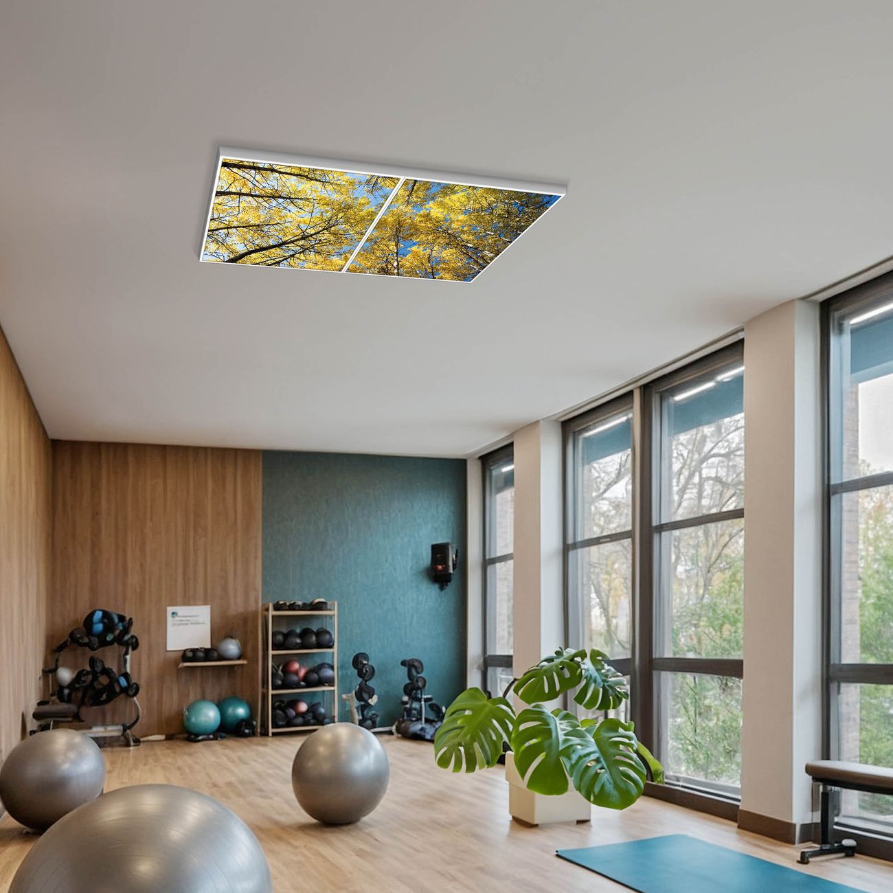 Entdecken Sie unsere vielseitigen Lichtdecken, hier in der Größe 124 x 62cm mit dem Motiv Motiv Wipfel - Ihre Beleuchtungslösung für jede Umgebung Beleuchten Sie Ihren Raum nicht nur, sondern schaffen Sie Atmosphäre! Die banjado Lichtdecke verwandelt jeden Ort, ob zu Hause, in Praxen, Büros oder Studios in eine Wohlfühloase. Unsere einzelnen Elemente haben eine genormte Einheitsgröße von 62 x 62cm und können somit in jede gängige Rasterdecken verbaut werden. So finden Sie Ihre passende Ausführung: Gern helfen wir Ihnen, die passende Ausführung zu wählen. Hierfür muss die aktuelle Gegebenheit Ihrer Decke oder Wand beachtet werden. Haben Sie bereits eine Rasterdecke (auch Odenwalddecke genannt)? Hier bestellen Sie lediglich das Motiv + Beleuchtungspanel, denn beides wird in die bereits vorhandene Decke eingelegt. Haben Sie eine glatte Decke mit Lichtauslass oder möchten die Lichtdecke an der Wand befestigen? Hier bestellen Sie bitte Motiv + Beleuchtungspanel + Deckenbefestigung, eine Aufbauanleitung liegt immer bei. Die Lichtdecke kann sowohl an der Decke als auch an der Wand montiert werden, perfekt für kreative Lichtakzente oder alternative Beleuchtungslösungen. Haben Sie bereits eine Lichtdecke und möchten nur das Motiv wechseln? Hier bestellen Sie bitte nur Motiv, der Wechsel ist denkbar einfach. Der Aufbau Ihrer banjado Lichtdecke gestaltet sich unkompliziert, dank einer verständlichen Anleitung, die Ihnen Schritt für Schritt durch den Montageprozess hilft. Für die endgültige Installation und den sicheren Anschluss empfehlen wir die Hinzuziehung eines Fachmanns, um die optimale Funktion und Sicherheit Ihrer Beleuchtung zu gewährleisten. Falls Sie einen Fachmann für die Installation benötigen, geben Sie uns gern Bescheid, wir vermitteln Ihnen gern einen geeigneten Ansprechpartner aus Ihrer Nähe. Steuerung: Steigern Sie Ihr Beleuchtungserlebnis mit der nahtlosen Integration in Ihr Smart Home. Durch die Kompatibilität mit der SmartLife App, Alexa und Google Assistant wird Ihr Smartphone zur zentralen Steuerungseinheit. Ihr Handy fungiert hierbei sozusagen als Fernbedienung. Legen Sie individuelle Lichtszenen in der App fest, die bei Aktivierung über den Wand-Ein-/Ausschalter immer wieder abgerufen werden können ohne Handy. Mit der Szenenfunktion in der Smart App können Sie die Beleuchtung personalisieren und steuern, sodass sie auf Ihre individuellen Bedürfnisse, Tagesrhythmus und Stimmung zugeschnitten ist. Beispielsweise können Sie sich in der Morgendämmerung durch ein sanftes Licht wecken lassen oder das Licht der Praxis werktags um 7 Uhr automatisch einschalten lassen. Dieses kann dann natürlich auch zu einer bestimmten Zeit automatisch ausgeschaltet werden. Motivwahl: Diese einzigartige Lichtdecke zeichnet sich durch ihre Fähigkeit aus, die Lichtfarbe je nach gewähltem Motiv anzupassen - ein Baum wirft ein sanftes grünes Licht, während eine Wolkendecke Ihren Raum in ein beruhigendes blaues Leuchten hüllt. Berücksichtigen Sie dies bitte bei Ihrer Motivauswahl. Sie können das Motiv jederzeit ohne großen Aufwand austauschen, ob nach Jahreszeit oder anderem Anlass, unsere Auswahl lässt kaum Wünsche offen. Wir fertigen Ihnen gern eine personalisierte Lichtdecke mit einem eigenen Motiv oder Logo oder Foto, schreiben Sie uns jederzeit an. Technische Daten: Das Motiv ist auf einer 4mm starken Acrylglas Scheibe aufgebracht, das Gesamtgewicht Ihrer Ausführung beträgt 9,9kg. Die Farbtemperatur lässt sich frei einstellen von 3000 bis 6000 Kelvin, damit können Sie stufenlos zwischen warmweiß, neutralweiß und kaltweiß wählen. Die Gesamtleistung bei Ihrer gewählten Ausführung beträgt 80W. Der Lichtstrom beträgt 3600 Lumen, die Nennspannung 230 V. Die Lichtdecke ist mit Schutzart IP20 für den Innenbereich konzipiert und sollte nicht im Nassbereich verwendet werden.