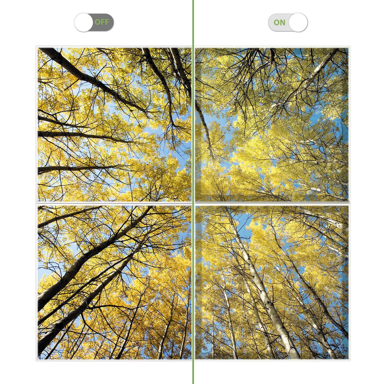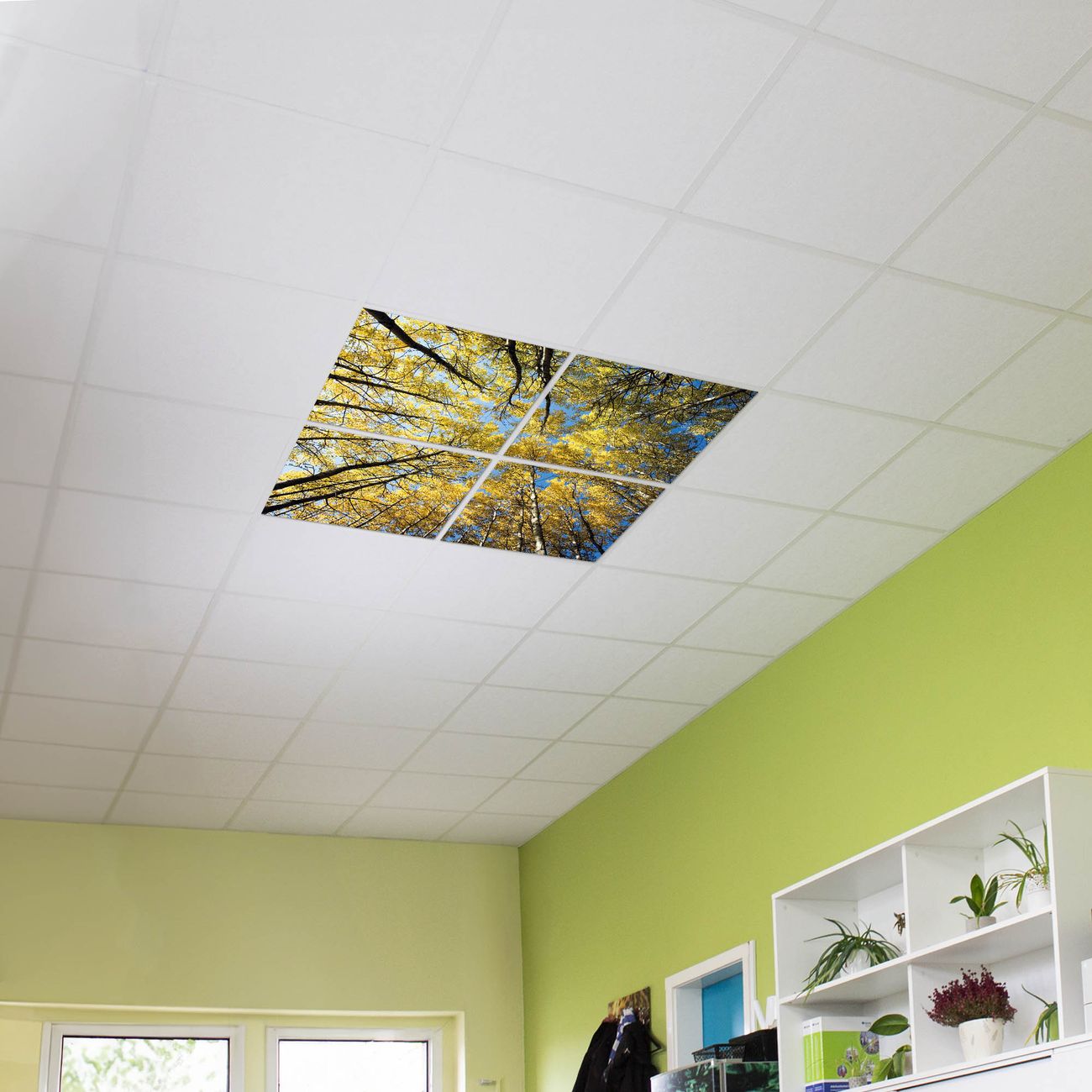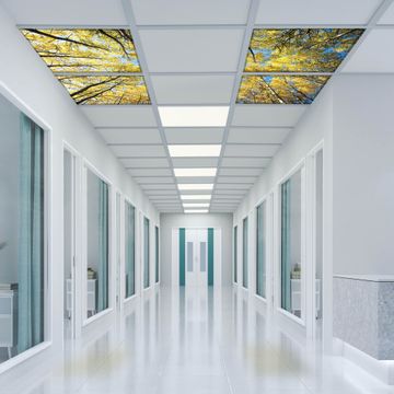 Entdecken Sie unsere vielseitigen Lichtdecken, hier in der Größe 124 x 124cm mit dem Motiv Motiv Wipfel - Ihre Beleuchtungslösung für jede Umgebung Beleuchten Sie Ihren Raum nicht nur, sondern schaffen Sie Atmosphäre! Die banjado Lichtdecke verwandelt jeden Ort, ob zu Hause, in Praxen, Büros oder Studios in eine Wohlfühloase. Unsere einzelnen Elemente haben eine genormte Einheitsgröße von 62 x 62cm und können somit in jede gängige Rasterdecken verbaut werden. So finden Sie Ihre passende Ausführung: Gern helfen wir Ihnen, die passende Ausführung zu wählen. Hierfür muss die aktuelle Gegebenheit Ihrer Decke oder Wand beachtet werden. Haben Sie bereits eine Rasterdecke (auch Odenwalddecke genannt)? Hier bestellen Sie lediglich das Motiv + Beleuchtungspanel, denn beides wird in die bereits vorhandene Decke eingelegt. Haben Sie eine glatte Decke mit Lichtauslass oder möchten die Lichtdecke an der Wand befestigen? Hier bestellen Sie bitte Motiv + Beleuchtungspanel + Deckenbefestigung, eine Aufbauanleitung liegt immer bei. Die Lichtdecke kann sowohl an der Decke als auch an der Wand montiert werden, perfekt für kreative Lichtakzente oder alternative Beleuchtungslösungen. Haben Sie bereits eine Lichtdecke und möchten nur das Motiv wechseln? Hier bestellen Sie bitte nur Motiv, der Wechsel ist denkbar einfach. Der Aufbau Ihrer banjado Lichtdecke gestaltet sich unkompliziert, dank einer verständlichen Anleitung, die Ihnen Schritt für Schritt durch den Montageprozess hilft. Für die endgültige Installation und den sicheren Anschluss empfehlen wir die Hinzuziehung eines Fachmanns, um die optimale Funktion und Sicherheit Ihrer Beleuchtung zu gewährleisten. Falls Sie einen Fachmann für die Installation benötigen, geben Sie uns gern Bescheid, wir vermitteln Ihnen gern einen geeigneten Ansprechpartner aus Ihrer Nähe. Steuerung: Steigern Sie Ihr Beleuchtungserlebnis mit der nahtlosen Integration in Ihr Smart Home. Durch die Kompatibilität mit der SmartLife App, Alexa und Google Assistant wird Ihr Smartphone zur zentralen Steuerungseinheit. Ihr Handy fungiert hierbei sozusagen als Fernbedienung. Legen Sie individuelle Lichtszenen in der App fest, die bei Aktivierung über den Wand-Ein-/Ausschalter immer wieder abgerufen werden können ohne Handy. Mit der Szenenfunktion in der Smart App können Sie die Beleuchtung personalisieren und steuern, sodass sie auf Ihre individuellen Bedürfnisse, Tagesrhythmus und Stimmung zugeschnitten ist. Beispielsweise können Sie sich in der Morgendämmerung durch ein sanftes Licht wecken lassen oder das Licht der Praxis werktags um 7 Uhr automatisch einschalten lassen. Dieses kann dann natürlich auch zu einer bestimmten Zeit automatisch ausgeschaltet werden. Motivwahl: Diese einzigartige Lichtdecke zeichnet sich durch ihre Fähigkeit aus, die Lichtfarbe je nach gewähltem Motiv anzupassen - ein Baum wirft ein sanftes grünes Licht, während eine Wolkendecke Ihren Raum in ein beruhigendes blaues Leuchten hüllt. Berücksichtigen Sie dies bitte bei Ihrer Motivauswahl. Sie können das Motiv jederzeit ohne großen Aufwand austauschen, ob nach Jahreszeit oder anderem Anlass, unsere Auswahl lässt kaum Wünsche offen. Wir fertigen Ihnen gern eine personalisierte Lichtdecke mit einem eigenen Motiv oder Logo oder Foto, schreiben Sie uns jederzeit an. Technische Daten: Das Motiv ist auf einer 4mm starken Acrylglas Scheibe aufgebracht, das Gesamtgewicht Ihrer Ausführung beträgt 9,0kg. Die Farbtemperatur lässt sich frei einstellen von 3000 bis 6000 Kelvin, damit können Sie stufenlos zwischen warmweiß, neutralweiß und kaltweiß wählen. Die Gesamtleistung bei Ihrer gewählten Ausführung beträgt 160W. Der Lichtstrom beträgt 3600 Lumen, die Nennspannung 230 V. Die Lichtdecke ist mit Schutzart IP20 für den Innenbereich konzipiert und sollte nicht im Nassbereich verwendet werden.