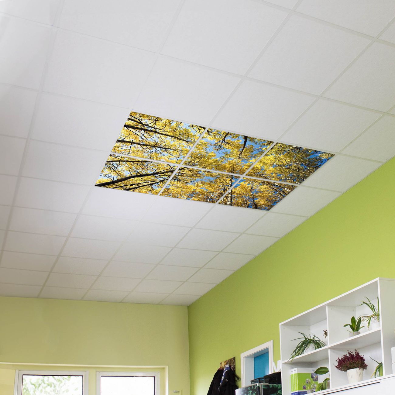 Entdecken Sie unsere vielseitigen Lichtdecken, hier in der Größe 186 x 124cm mit dem Motiv Motiv Wipfel - Ihre Beleuchtungslösung für jede Umgebung Beleuchten Sie Ihren Raum nicht nur, sondern schaffen Sie Atmosphäre! Die banjado Lichtdecke verwandelt jeden Ort, ob zu Hause, in Praxen, Büros oder Studios in eine Wohlfühloase. Unsere einzelnen Elemente haben eine genormte Einheitsgröße von 62 x 62cm und können somit in jede gängige Rasterdecken verbaut werden. So finden Sie Ihre passende Ausführung: Gern helfen wir Ihnen, die passende Ausführung zu wählen. Hierfür muss die aktuelle Gegebenheit Ihrer Decke oder Wand beachtet werden. Haben Sie bereits eine Rasterdecke (auch Odenwalddecke genannt)? Hier bestellen Sie lediglich das Motiv + Beleuchtungspanel, denn beides wird in die bereits vorhandene Decke eingelegt. Haben Sie eine glatte Decke mit Lichtauslass oder möchten die Lichtdecke an der Wand befestigen? Hier bestellen Sie bitte Motiv + Beleuchtungspanel + Deckenbefestigung, eine Aufbauanleitung liegt immer bei. Die Lichtdecke kann sowohl an der Decke als auch an der Wand montiert werden, perfekt für kreative Lichtakzente oder alternative Beleuchtungslösungen. Haben Sie bereits eine Lichtdecke und möchten nur das Motiv wechseln? Hier bestellen Sie bitte nur Motiv, der Wechsel ist denkbar einfach. Der Aufbau Ihrer banjado Lichtdecke gestaltet sich unkompliziert, dank einer verständlichen Anleitung, die Ihnen Schritt für Schritt durch den Montageprozess hilft. Für die endgültige Installation und den sicheren Anschluss empfehlen wir die Hinzuziehung eines Fachmanns, um die optimale Funktion und Sicherheit Ihrer Beleuchtung zu gewährleisten. Falls Sie einen Fachmann für die Installation benötigen, geben Sie uns gern Bescheid, wir vermitteln Ihnen gern einen geeigneten Ansprechpartner aus Ihrer Nähe. Steuerung: Steigern Sie Ihr Beleuchtungserlebnis mit der nahtlosen Integration in Ihr Smart Home. Durch die Kompatibilität mit der SmartLife App, Alexa und Google Assistant wird Ihr Smartphone zur zentralen Steuerungseinheit. Ihr Handy fungiert hierbei sozusagen als Fernbedienung. Legen Sie individuelle Lichtszenen in der App fest, die bei Aktivierung über den Wand-Ein-/Ausschalter immer wieder abgerufen werden können ohne Handy. Mit der Szenenfunktion in der Smart App können Sie die Beleuchtung personalisieren und steuern, sodass sie auf Ihre individuellen Bedürfnisse, Tagesrhythmus und Stimmung zugeschnitten ist. Beispielsweise können Sie sich in der Morgendämmerung durch ein sanftes Licht wecken lassen oder das Licht der Praxis werktags um 7 Uhr automatisch einschalten lassen. Dieses kann dann natürlich auch zu einer bestimmten Zeit automatisch ausgeschaltet werden. Motivwahl: Diese einzigartige Lichtdecke zeichnet sich durch ihre Fähigkeit aus, die Lichtfarbe je nach gewähltem Motiv anzupassen - ein Baum wirft ein sanftes grünes Licht, während eine Wolkendecke Ihren Raum in ein beruhigendes blaues Leuchten hüllt. Berücksichtigen Sie dies bitte bei Ihrer Motivauswahl. Sie können das Motiv jederzeit ohne großen Aufwand austauschen, ob nach Jahreszeit oder anderem Anlass, unsere Auswahl lässt kaum Wünsche offen. Wir fertigen Ihnen gern eine personalisierte Lichtdecke mit einem eigenen Motiv oder Logo oder Foto, schreiben Sie uns jederzeit an. Technische Daten: Das Motiv ist auf einer 4mm starken Acrylglas Scheibe aufgebracht, das Gesamtgewicht Ihrer Ausführung beträgt 13,6kg. Die Farbtemperatur lässt sich frei einstellen von 3000 bis 6000 Kelvin, damit können Sie stufenlos zwischen warmweiß, neutralweiß und kaltweiß wählen. Die Gesamtleistung bei Ihrer gewählten Ausführung beträgt 240W. Der Lichtstrom beträgt 3600 Lumen, die Nennspannung 230 V. Die Lichtdecke ist mit Schutzart IP20 für den Innenbereich konzipiert und sollte nicht im Nassbereich verwendet werden.