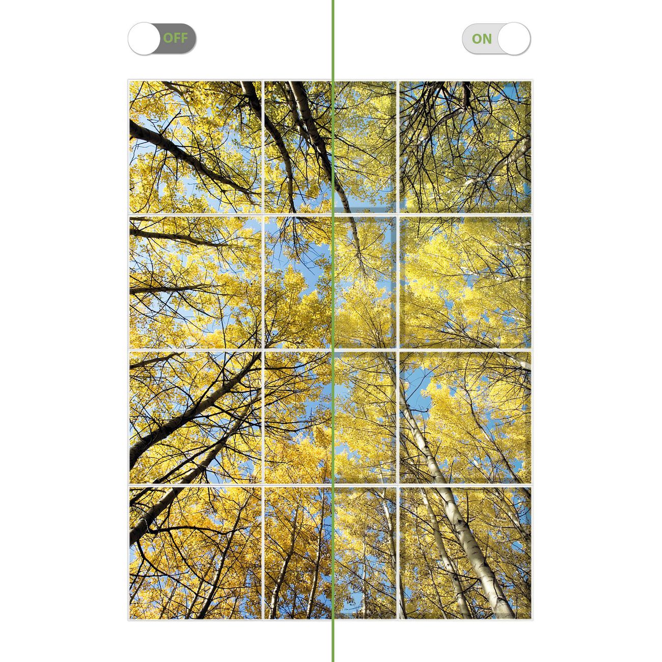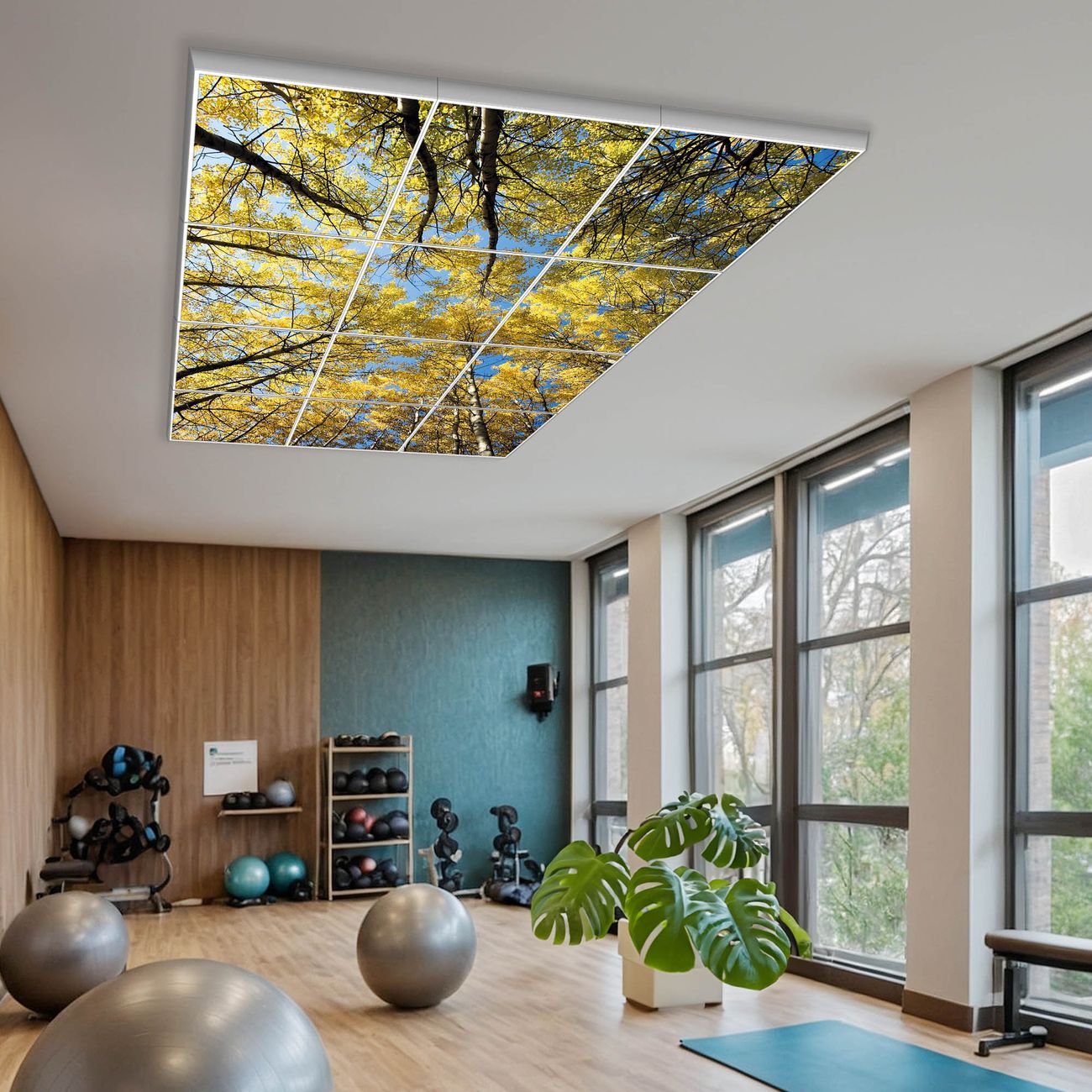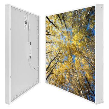 Entdecken Sie unsere vielseitigen Lichtdecken, hier in der Größe 186 x 248cm mit dem Motiv Motiv Wipfel - Ihre Beleuchtungslösung für jede Umgebung Beleuchten Sie Ihren Raum nicht nur, sondern schaffen Sie Atmosphäre! Die banjado Lichtdecke verwandelt jeden Ort, ob zu Hause, in Praxen, Büros oder Studios in eine Wohlfühloase. Unsere einzelnen Elemente haben eine genormte Einheitsgröße von 62 x 62cm und können somit in jede gängige Rasterdecken verbaut werden. So finden Sie Ihre passende Ausführung: Gern helfen wir Ihnen, die passende Ausführung zu wählen. Hierfür muss die aktuelle Gegebenheit Ihrer Decke oder Wand beachtet werden. Haben Sie bereits eine Rasterdecke (auch Odenwalddecke genannt)? Hier bestellen Sie lediglich das Motiv + Beleuchtungspanel, denn beides wird in die bereits vorhandene Decke eingelegt. Haben Sie eine glatte Decke mit Lichtauslass oder möchten die Lichtdecke an der Wand befestigen? Hier bestellen Sie bitte Motiv + Beleuchtungspanel + Deckenbefestigung, eine Aufbauanleitung liegt immer bei. Die Lichtdecke kann sowohl an der Decke als auch an der Wand montiert werden, perfekt für kreative Lichtakzente oder alternative Beleuchtungslösungen. Haben Sie bereits eine Lichtdecke und möchten nur das Motiv wechseln? Hier bestellen Sie bitte nur Motiv, der Wechsel ist denkbar einfach. Der Aufbau Ihrer banjado Lichtdecke gestaltet sich unkompliziert, dank einer verständlichen Anleitung, die Ihnen Schritt für Schritt durch den Montageprozess hilft. Für die endgültige Installation und den sicheren Anschluss empfehlen wir die Hinzuziehung eines Fachmanns, um die optimale Funktion und Sicherheit Ihrer Beleuchtung zu gewährleisten. Falls Sie einen Fachmann für die Installation benötigen, geben Sie uns gern Bescheid, wir vermitteln Ihnen gern einen geeigneten Ansprechpartner aus Ihrer Nähe. Steuerung: Steigern Sie Ihr Beleuchtungserlebnis mit der nahtlosen Integration in Ihr Smart Home. Durch die Kompatibilität mit der SmartLife App, Alexa und Google Assistant wird Ihr Smartphone zur zentralen Steuerungseinheit. Ihr Handy fungiert hierbei sozusagen als Fernbedienung. Legen Sie individuelle Lichtszenen in der App fest, die bei Aktivierung über den Wand-Ein-/Ausschalter immer wieder abgerufen werden können ohne Handy. Mit der Szenenfunktion in der Smart App können Sie die Beleuchtung personalisieren und steuern, sodass sie auf Ihre individuellen Bedürfnisse, Tagesrhythmus und Stimmung zugeschnitten ist. Beispielsweise können Sie sich in der Morgendämmerung durch ein sanftes Licht wecken lassen oder das Licht der Praxis werktags um 7 Uhr automatisch einschalten lassen. Dieses kann dann natürlich auch zu einer bestimmten Zeit automatisch ausgeschaltet werden. Motivwahl: Diese einzigartige Lichtdecke zeichnet sich durch ihre Fähigkeit aus, die Lichtfarbe je nach gewähltem Motiv anzupassen - ein Baum wirft ein sanftes grünes Licht, während eine Wolkendecke Ihren Raum in ein beruhigendes blaues Leuchten hüllt. Berücksichtigen Sie dies bitte bei Ihrer Motivauswahl. Sie können das Motiv jederzeit ohne großen Aufwand austauschen, ob nach Jahreszeit oder anderem Anlass, unsere Auswahl lässt kaum Wünsche offen. Wir fertigen Ihnen gern eine personalisierte Lichtdecke mit einem eigenen Motiv oder Logo oder Foto, schreiben Sie uns jederzeit an. Technische Daten: Das Motiv ist auf einer 4mm starken Acrylglas Scheibe aufgebracht, das Gesamtgewicht Ihrer Ausführung beträgt 59,1kg. Die Farbtemperatur lässt sich frei einstellen von 3000 bis 6000 Kelvin, damit können Sie stufenlos zwischen warmweiß, neutralweiß und kaltweiß wählen. Die Gesamtleistung bei Ihrer gewählten Ausführung beträgt 480W. Der Lichtstrom beträgt 3600 Lumen, die Nennspannung 230 V. Die Lichtdecke ist mit Schutzart IP20 für den Innenbereich konzipiert und sollte nicht im Nassbereich verwendet werden.