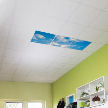 Entdecken Sie unsere vielseitigen Lichtdecken, hier in der Größe 186 x 62cm mit dem Motiv Motiv Wolken 11 - Ihre Beleuchtungslösung für jede Umgebung Beleuchten Sie Ihren Raum nicht nur, sondern schaffen Sie Atmosphäre! Die banjado Lichtdecke verwandelt jeden Ort, ob zu Hause, in Praxen, Büros oder Studios in eine Wohlfühloase. Unsere einzelnen Elemente haben eine genormte Einheitsgröße von 62 x 62cm und können somit in jede gängige Rasterdecken verbaut werden. So finden Sie Ihre passende Ausführung: Gern helfen wir Ihnen, die passende Ausführung zu wählen. Hierfür muss die aktuelle Gegebenheit Ihrer Decke oder Wand beachtet werden. Haben Sie bereits eine Rasterdecke (auch Odenwalddecke genannt)? Hier bestellen Sie lediglich das Motiv + Beleuchtungspanel, denn beides wird in die bereits vorhandene Decke eingelegt. Haben Sie eine glatte Decke mit Lichtauslass oder möchten die Lichtdecke an der Wand befestigen? Hier bestellen Sie bitte Motiv + Beleuchtungspanel + Deckenbefestigung, eine Aufbauanleitung liegt immer bei. Die Lichtdecke kann sowohl an der Decke als auch an der Wand montiert werden, perfekt für kreative Lichtakzente oder alternative Beleuchtungslösungen. Haben Sie bereits eine Lichtdecke und möchten nur das Motiv wechseln? Hier bestellen Sie bitte nur Motiv, der Wechsel ist denkbar einfach. Der Aufbau Ihrer banjado Lichtdecke gestaltet sich unkompliziert, dank einer verständlichen Anleitung, die Ihnen Schritt für Schritt durch den Montageprozess hilft. Für die endgültige Installation und den sicheren Anschluss empfehlen wir die Hinzuziehung eines Fachmanns, um die optimale Funktion und Sicherheit Ihrer Beleuchtung zu gewährleisten. Falls Sie einen Fachmann für die Installation benötigen, geben Sie uns gern Bescheid, wir vermitteln Ihnen gern einen geeigneten Ansprechpartner aus Ihrer Nähe. Steuerung: Steigern Sie Ihr Beleuchtungserlebnis mit der nahtlosen Integration in Ihr Smart Home. Durch die Kompatibilität mit der SmartLife App, Alexa und Google Assistant wird Ihr Smartphone zur zentralen Steuerungseinheit. Ihr Handy fungiert hierbei sozusagen als Fernbedienung. Legen Sie individuelle Lichtszenen in der App fest, die bei Aktivierung über den Wand-Ein-/Ausschalter immer wieder abgerufen werden können ohne Handy. Mit der Szenenfunktion in der Smart App können Sie die Beleuchtung personalisieren und steuern, sodass sie auf Ihre individuellen Bedürfnisse, Tagesrhythmus und Stimmung zugeschnitten ist. Beispielsweise können Sie sich in der Morgendämmerung durch ein sanftes Licht wecken lassen oder das Licht der Praxis werktags um 7 Uhr automatisch einschalten lassen. Dieses kann dann natürlich auch zu einer bestimmten Zeit automatisch ausgeschaltet werden. Motivwahl: Diese einzigartige Lichtdecke zeichnet sich durch ihre Fähigkeit aus, die Lichtfarbe je nach gewähltem Motiv anzupassen - ein Baum wirft ein sanftes grünes Licht, während eine Wolkendecke Ihren Raum in ein beruhigendes blaues Leuchten hüllt. Berücksichtigen Sie dies bitte bei Ihrer Motivauswahl. Sie können das Motiv jederzeit ohne großen Aufwand austauschen, ob nach Jahreszeit oder anderem Anlass, unsere Auswahl lässt kaum Wünsche offen. Wir fertigen Ihnen gern eine personalisierte Lichtdecke mit einem eigenen Motiv oder Logo oder Foto, schreiben Sie uns jederzeit an. Technische Daten: Das Motiv ist auf einer 4mm starken Acrylglas Scheibe aufgebracht, das Gesamtgewicht Ihrer Ausführung beträgt 6,8kg. Die Farbtemperatur lässt sich frei einstellen von 3000 bis 6000 Kelvin, damit können Sie stufenlos zwischen warmweiß, neutralweiß und kaltweiß wählen. Die Gesamtleistung bei Ihrer gewählten Ausführung beträgt 120W. Der Lichtstrom beträgt 3600 Lumen, die Nennspannung 230 V. Die Lichtdecke ist mit Schutzart IP20 für den Innenbereich konzipiert und sollte nicht im Nassbereich verwendet werden.