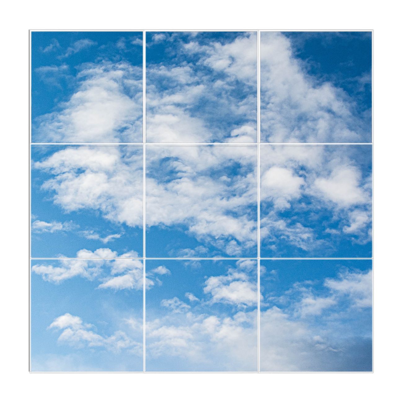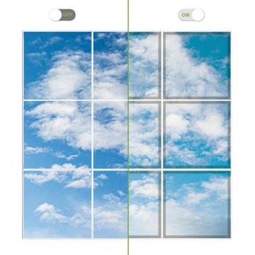Motiv Wolken 1 Nr. 12830 Größe: 187,5x187,5x4,5cm BxHxT Gewicht: ca. 43,65 kg Material: Acylglas, Metall, hochwertig bedruckte Premiumfolie Druck: farbbrilliant, hochauflösend Stärke Glas: 4mm Acylglas Einzelelement: 62,5x62,5cm groß (mit Rahmen) Dimmbar: JA LED Paneel: 40W, 230V, 3600lm, 4000K neutralweiß Steuerung: SmartApp / Alexa / Google Assistent oder ähnliche