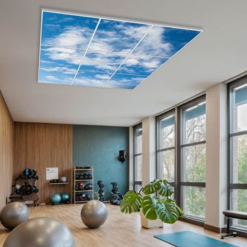 Entdecken Sie unsere vielseitigen Lichtdecken, hier in der Größe 186 x 186cm mit dem Motiv Motiv Wolken 1 - Ihre Beleuchtungslösung für jede Umgebung Beleuchten Sie Ihren Raum nicht nur, sondern schaffen Sie Atmosphäre! Die banjado Lichtdecke verwandelt jeden Ort, ob zu Hause, in Praxen, Büros oder Studios in eine Wohlfühloase. Unsere einzelnen Elemente haben eine genormte Einheitsgröße von 62 x 62cm und können somit in jede gängige Rasterdecken verbaut werden. So finden Sie Ihre passende Ausführung: Gern helfen wir Ihnen, die passende Ausführung zu wählen. Hierfür muss die aktuelle Gegebenheit Ihrer Decke oder Wand beachtet werden. Haben Sie bereits eine Rasterdecke (auch Odenwalddecke genannt)? Hier bestellen Sie lediglich das Motiv + Beleuchtungspanel, denn beides wird in die bereits vorhandene Decke eingelegt. Haben Sie eine glatte Decke mit Lichtauslass oder möchten die Lichtdecke an der Wand befestigen? Hier bestellen Sie bitte Motiv + Beleuchtungspanel + Deckenbefestigung, eine Aufbauanleitung liegt immer bei. Die Lichtdecke kann sowohl an der Decke als auch an der Wand montiert werden, perfekt für kreative Lichtakzente oder alternative Beleuchtungslösungen. Haben Sie bereits eine Lichtdecke und möchten nur das Motiv wechseln? Hier bestellen Sie bitte nur Motiv, der Wechsel ist denkbar einfach. Der Aufbau Ihrer banjado Lichtdecke gestaltet sich unkompliziert, dank einer verständlichen Anleitung, die Ihnen Schritt für Schritt durch den Montageprozess hilft. Für die endgültige Installation und den sicheren Anschluss empfehlen wir die Hinzuziehung eines Fachmanns, um die optimale Funktion und Sicherheit Ihrer Beleuchtung zu gewährleisten. Falls Sie einen Fachmann für die Installation benötigen, geben Sie uns gern Bescheid, wir vermitteln Ihnen gern einen geeigneten Ansprechpartner aus Ihrer Nähe. Steuerung: Steigern Sie Ihr Beleuchtungserlebnis mit der nahtlosen Integration in Ihr Smart Home. Durch die Kompatibilität mit der SmartLife App, Alexa und Google Assistant wird Ihr Smartphone zur zentralen Steuerungseinheit. Ihr Handy fungiert hierbei sozusagen als Fernbedienung. Legen Sie individuelle Lichtszenen in der App fest, die bei Aktivierung über den Wand-Ein-/Ausschalter immer wieder abgerufen werden können ohne Handy. Mit der Szenenfunktion in der Smart App können Sie die Beleuchtung personalisieren und steuern, sodass sie auf Ihre individuellen Bedürfnisse, Tagesrhythmus und Stimmung zugeschnitten ist. Beispielsweise können Sie sich in der Morgendämmerung durch ein sanftes Licht wecken lassen oder das Licht der Praxis werktags um 7 Uhr automatisch einschalten lassen. Dieses kann dann natürlich auch zu einer bestimmten Zeit automatisch ausgeschaltet werden. Motivwahl: Diese einzigartige Lichtdecke zeichnet sich durch ihre Fähigkeit aus, die Lichtfarbe je nach gewähltem Motiv anzupassen - ein Baum wirft ein sanftes grünes Licht, während eine Wolkendecke Ihren Raum in ein beruhigendes blaues Leuchten hüllt. Berücksichtigen Sie dies bitte bei Ihrer Motivauswahl. Sie können das Motiv jederzeit ohne großen Aufwand austauschen, ob nach Jahreszeit oder anderem Anlass, unsere Auswahl lässt kaum Wünsche offen. Wir fertigen Ihnen gern eine personalisierte Lichtdecke mit einem eigenen Motiv oder Logo oder Foto, schreiben Sie uns jederzeit an. Technische Daten: Das Motiv ist auf einer 4mm starken Acrylglas Scheibe aufgebracht, das Gesamtgewicht Ihrer Ausführung beträgt 44,4kg. Die Farbtemperatur lässt sich frei einstellen von 3000 bis 6000 Kelvin, damit können Sie stufenlos zwischen warmweiß, neutralweiß und kaltweiß wählen. Die Gesamtleistung bei Ihrer gewählten Ausführung beträgt 360W. Der Lichtstrom beträgt 3600 Lumen, die Nennspannung 230 V. Die Lichtdecke ist mit Schutzart IP20 für den Innenbereich konzipiert und sollte nicht im Nassbereich verwendet werden.