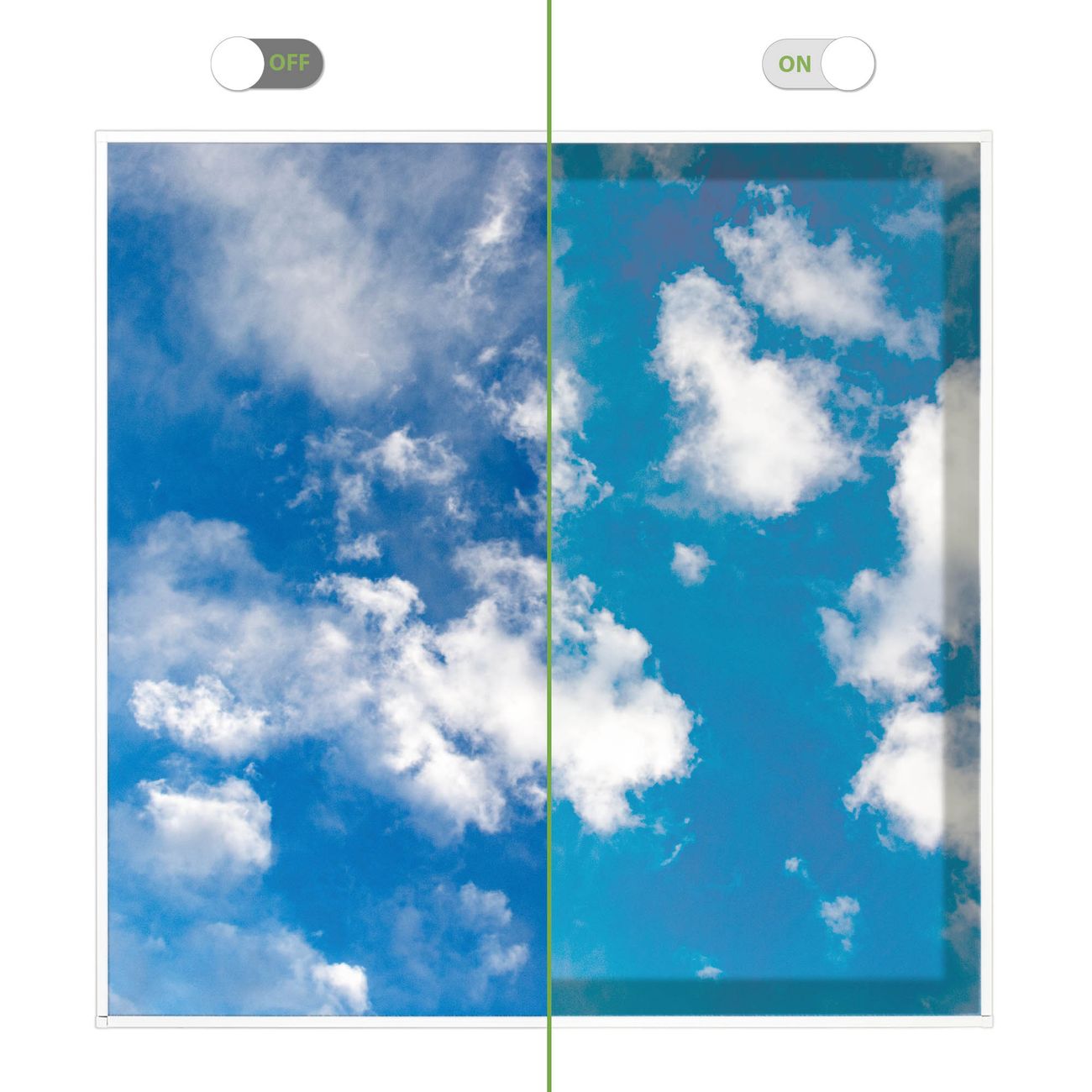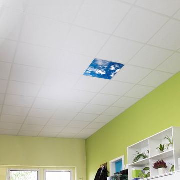 Entdecken Sie unsere vielseitigen Lichtdecken, hier in der Größe 62 x 62cm mit dem Motiv Motiv Wolken 2 - Ihre Beleuchtungslösung für jede Umgebung Beleuchten Sie Ihren Raum nicht nur, sondern schaffen Sie Atmosphäre! Die banjado Lichtdecke verwandelt jeden Ort, ob zu Hause, in Praxen, Büros oder Studios in eine Wohlfühloase. Unsere einzelnen Elemente haben eine genormte Einheitsgröße von 62 x 62cm und können somit in jede gängige Rasterdecken verbaut werden. So finden Sie Ihre passende Ausführung: Gern helfen wir Ihnen, die passende Ausführung zu wählen. Hierfür muss die aktuelle Gegebenheit Ihrer Decke oder Wand beachtet werden. Haben Sie bereits eine Rasterdecke (auch Odenwalddecke genannt)? Hier bestellen Sie lediglich das Motiv + Beleuchtungspanel, denn beides wird in die bereits vorhandene Decke eingelegt. Haben Sie eine glatte Decke mit Lichtauslass oder möchten die Lichtdecke an der Wand befestigen? Hier bestellen Sie bitte Motiv + Beleuchtungspanel + Deckenbefestigung, eine Aufbauanleitung liegt immer bei. Die Lichtdecke kann sowohl an der Decke als auch an der Wand montiert werden, perfekt für kreative Lichtakzente oder alternative Beleuchtungslösungen. Haben Sie bereits eine Lichtdecke und möchten nur das Motiv wechseln? Hier bestellen Sie bitte nur Motiv, der Wechsel ist denkbar einfach. Der Aufbau Ihrer banjado Lichtdecke gestaltet sich unkompliziert, dank einer verständlichen Anleitung, die Ihnen Schritt für Schritt durch den Montageprozess hilft. Für die endgültige Installation und den sicheren Anschluss empfehlen wir die Hinzuziehung eines Fachmanns, um die optimale Funktion und Sicherheit Ihrer Beleuchtung zu gewährleisten. Falls Sie einen Fachmann für die Installation benötigen, geben Sie uns gern Bescheid, wir vermitteln Ihnen gern einen geeigneten Ansprechpartner aus Ihrer Nähe. Steuerung: Steigern Sie Ihr Beleuchtungserlebnis mit der nahtlosen Integration in Ihr Smart Home. Durch die Kompatibilität mit der SmartLife App, Alexa und Google Assistant wird Ihr Smartphone zur zentralen Steuerungseinheit. Ihr Handy fungiert hierbei sozusagen als Fernbedienung. Legen Sie individuelle Lichtszenen in der App fest, die bei Aktivierung über den Wand-Ein-/Ausschalter immer wieder abgerufen werden können ohne Handy. Mit der Szenenfunktion in der Smart App können Sie die Beleuchtung personalisieren und steuern, sodass sie auf Ihre individuellen Bedürfnisse, Tagesrhythmus und Stimmung zugeschnitten ist. Beispielsweise können Sie sich in der Morgendämmerung durch ein sanftes Licht wecken lassen oder das Licht der Praxis werktags um 7 Uhr automatisch einschalten lassen. Dieses kann dann natürlich auch zu einer bestimmten Zeit automatisch ausgeschaltet werden. Motivwahl: Diese einzigartige Lichtdecke zeichnet sich durch ihre Fähigkeit aus, die Lichtfarbe je nach gewähltem Motiv anzupassen - ein Baum wirft ein sanftes grünes Licht, während eine Wolkendecke Ihren Raum in ein beruhigendes blaues Leuchten hüllt. Berücksichtigen Sie dies bitte bei Ihrer Motivauswahl. Sie können das Motiv jederzeit ohne großen Aufwand austauschen, ob nach Jahreszeit oder anderem Anlass, unsere Auswahl lässt kaum Wünsche offen. Wir fertigen Ihnen gern eine personalisierte Lichtdecke mit einem eigenen Motiv oder Logo oder Foto, schreiben Sie uns jederzeit an. Technische Daten: Das Motiv ist auf einer 4mm starken Acrylglas Scheibe aufgebracht, das Gesamtgewicht Ihrer Ausführung beträgt 2,3kg. Die Farbtemperatur lässt sich frei einstellen von 3000 bis 6000 Kelvin, damit können Sie stufenlos zwischen warmweiß, neutralweiß und kaltweiß wählen. Die Gesamtleistung bei Ihrer gewählten Ausführung beträgt 40W. Der Lichtstrom beträgt 3600 Lumen, die Nennspannung 230 V. Die Lichtdecke ist mit Schutzart IP20 für den Innenbereich konzipiert und sollte nicht im Nassbereich verwendet werden.