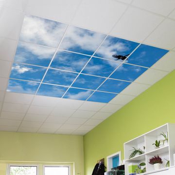 Entdecken Sie unsere vielseitigen Lichtdecken, hier in der Größe 248 x 248cm mit dem Motiv Motiv Wolken 4 - Ihre Beleuchtungslösung für jede Umgebung Beleuchten Sie Ihren Raum nicht nur, sondern schaffen Sie Atmosphäre! Die banjado Lichtdecke verwandelt jeden Ort, ob zu Hause, in Praxen, Büros oder Studios in eine Wohlfühloase. Unsere einzelnen Elemente haben eine genormte Einheitsgröße von 62 x 62cm und können somit in jede gängige Rasterdecken verbaut werden. So finden Sie Ihre passende Ausführung: Gern helfen wir Ihnen, die passende Ausführung zu wählen. Hierfür muss die aktuelle Gegebenheit Ihrer Decke oder Wand beachtet werden. Haben Sie bereits eine Rasterdecke (auch Odenwalddecke genannt)? Hier bestellen Sie lediglich das Motiv + Beleuchtungspanel, denn beides wird in die bereits vorhandene Decke eingelegt. Haben Sie eine glatte Decke mit Lichtauslass oder möchten die Lichtdecke an der Wand befestigen? Hier bestellen Sie bitte Motiv + Beleuchtungspanel + Deckenbefestigung, eine Aufbauanleitung liegt immer bei. Die Lichtdecke kann sowohl an der Decke als auch an der Wand montiert werden, perfekt für kreative Lichtakzente oder alternative Beleuchtungslösungen. Haben Sie bereits eine Lichtdecke und möchten nur das Motiv wechseln? Hier bestellen Sie bitte nur Motiv, der Wechsel ist denkbar einfach. Der Aufbau Ihrer banjado Lichtdecke gestaltet sich unkompliziert, dank einer verständlichen Anleitung, die Ihnen Schritt für Schritt durch den Montageprozess hilft. Für die endgültige Installation und den sicheren Anschluss empfehlen wir die Hinzuziehung eines Fachmanns, um die optimale Funktion und Sicherheit Ihrer Beleuchtung zu gewährleisten. Falls Sie einen Fachmann für die Installation benötigen, geben Sie uns gern Bescheid, wir vermitteln Ihnen gern einen geeigneten Ansprechpartner aus Ihrer Nähe. Steuerung: Steigern Sie Ihr Beleuchtungserlebnis mit der nahtlosen Integration in Ihr Smart Home. Durch die Kompatibilität mit der SmartLife App, Alexa und Google Assistant wird Ihr Smartphone zur zentralen Steuerungseinheit. Ihr Handy fungiert hierbei sozusagen als Fernbedienung. Legen Sie individuelle Lichtszenen in der App fest, die bei Aktivierung über den Wand-Ein-/Ausschalter immer wieder abgerufen werden können ohne Handy. Mit der Szenenfunktion in der Smart App können Sie die Beleuchtung personalisieren und steuern, sodass sie auf Ihre individuellen Bedürfnisse, Tagesrhythmus und Stimmung zugeschnitten ist. Beispielsweise können Sie sich in der Morgendämmerung durch ein sanftes Licht wecken lassen oder das Licht der Praxis werktags um 7 Uhr automatisch einschalten lassen. Dieses kann dann natürlich auch zu einer bestimmten Zeit automatisch ausgeschaltet werden. Motivwahl: Diese einzigartige Lichtdecke zeichnet sich durch ihre Fähigkeit aus, die Lichtfarbe je nach gewähltem Motiv anzupassen - ein Baum wirft ein sanftes grünes Licht, während eine Wolkendecke Ihren Raum in ein beruhigendes blaues Leuchten hüllt. Berücksichtigen Sie dies bitte bei Ihrer Motivauswahl. Sie können das Motiv jederzeit ohne großen Aufwand austauschen, ob nach Jahreszeit oder anderem Anlass, unsere Auswahl lässt kaum Wünsche offen. Wir fertigen Ihnen gern eine personalisierte Lichtdecke mit einem eigenen Motiv oder Logo oder Foto, schreiben Sie uns jederzeit an. Technische Daten: Das Motiv ist auf einer 4mm starken Acrylglas Scheibe aufgebracht, das Gesamtgewicht Ihrer Ausführung beträgt 36,2kg. Die Farbtemperatur lässt sich frei einstellen von 3000 bis 6000 Kelvin, damit können Sie stufenlos zwischen warmweiß, neutralweiß und kaltweiß wählen. Die Gesamtleistung bei Ihrer gewählten Ausführung beträgt 640W. Der Lichtstrom beträgt 3600 Lumen, die Nennspannung 230 V. Die Lichtdecke ist mit Schutzart IP20 für den Innenbereich konzipiert und sollte nicht im Nassbereich verwendet werden.