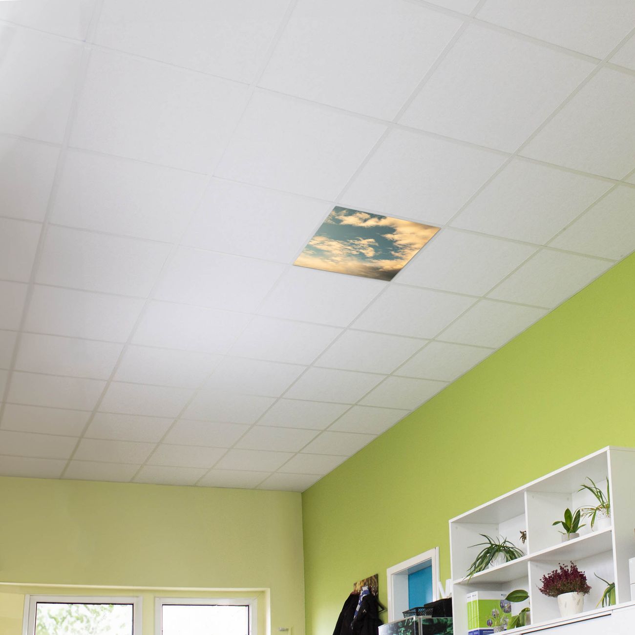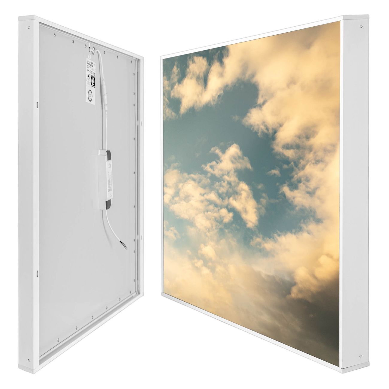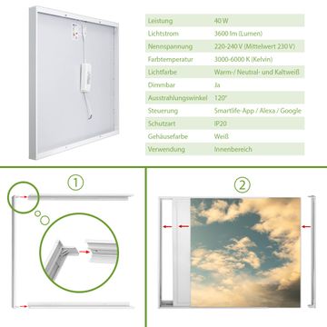 Entdecken Sie unsere vielseitigen Lichtdecken, hier in der Größe 62 x 62cm mit dem Motiv Motiv Wolken 6 - Ihre Beleuchtungslösung für jede Umgebung Beleuchten Sie Ihren Raum nicht nur, sondern schaffen Sie Atmosphäre! Die banjado Lichtdecke verwandelt jeden Ort, ob zu Hause, in Praxen, Büros oder Studios in eine Wohlfühloase. Unsere einzelnen Elemente haben eine genormte Einheitsgröße von 62 x 62cm und können somit in jede gängige Rasterdecken verbaut werden. So finden Sie Ihre passende Ausführung: Gern helfen wir Ihnen, die passende Ausführung zu wählen. Hierfür muss die aktuelle Gegebenheit Ihrer Decke oder Wand beachtet werden. Haben Sie bereits eine Rasterdecke (auch Odenwalddecke genannt)? Hier bestellen Sie lediglich das Motiv + Beleuchtungspanel, denn beides wird in die bereits vorhandene Decke eingelegt. Haben Sie eine glatte Decke mit Lichtauslass oder möchten die Lichtdecke an der Wand befestigen? Hier bestellen Sie bitte Motiv + Beleuchtungspanel + Deckenbefestigung, eine Aufbauanleitung liegt immer bei. Die Lichtdecke kann sowohl an der Decke als auch an der Wand montiert werden, perfekt für kreative Lichtakzente oder alternative Beleuchtungslösungen. Haben Sie bereits eine Lichtdecke und möchten nur das Motiv wechseln? Hier bestellen Sie bitte nur Motiv, der Wechsel ist denkbar einfach. Der Aufbau Ihrer banjado Lichtdecke gestaltet sich unkompliziert, dank einer verständlichen Anleitung, die Ihnen Schritt für Schritt durch den Montageprozess hilft. Für die endgültige Installation und den sicheren Anschluss empfehlen wir die Hinzuziehung eines Fachmanns, um die optimale Funktion und Sicherheit Ihrer Beleuchtung zu gewährleisten. Falls Sie einen Fachmann für die Installation benötigen, geben Sie uns gern Bescheid, wir vermitteln Ihnen gern einen geeigneten Ansprechpartner aus Ihrer Nähe. Steuerung: Steigern Sie Ihr Beleuchtungserlebnis mit der nahtlosen Integration in Ihr Smart Home. Durch die Kompatibilität mit der SmartLife App, Alexa und Google Assistant wird Ihr Smartphone zur zentralen Steuerungseinheit. Ihr Handy fungiert hierbei sozusagen als Fernbedienung. Legen Sie individuelle Lichtszenen in der App fest, die bei Aktivierung über den Wand-Ein-/Ausschalter immer wieder abgerufen werden können ohne Handy. Mit der Szenenfunktion in der Smart App können Sie die Beleuchtung personalisieren und steuern, sodass sie auf Ihre individuellen Bedürfnisse, Tagesrhythmus und Stimmung zugeschnitten ist. Beispielsweise können Sie sich in der Morgendämmerung durch ein sanftes Licht wecken lassen oder das Licht der Praxis werktags um 7 Uhr automatisch einschalten lassen. Dieses kann dann natürlich auch zu einer bestimmten Zeit automatisch ausgeschaltet werden. Motivwahl: Diese einzigartige Lichtdecke zeichnet sich durch ihre Fähigkeit aus, die Lichtfarbe je nach gewähltem Motiv anzupassen - ein Baum wirft ein sanftes grünes Licht, während eine Wolkendecke Ihren Raum in ein beruhigendes blaues Leuchten hüllt. Berücksichtigen Sie dies bitte bei Ihrer Motivauswahl. Sie können das Motiv jederzeit ohne großen Aufwand austauschen, ob nach Jahreszeit oder anderem Anlass, unsere Auswahl lässt kaum Wünsche offen. Wir fertigen Ihnen gern eine personalisierte Lichtdecke mit einem eigenen Motiv oder Logo oder Foto, schreiben Sie uns jederzeit an. Technische Daten: Das Motiv ist auf einer 4mm starken Acrylglas Scheibe aufgebracht, das Gesamtgewicht Ihrer Ausführung beträgt 4,4kg. Die Farbtemperatur lässt sich frei einstellen von 3000 bis 6000 Kelvin, damit können Sie stufenlos zwischen warmweiß, neutralweiß und kaltweiß wählen. Die Gesamtleistung bei Ihrer gewählten Ausführung beträgt 40W. Der Lichtstrom beträgt 3600 Lumen, die Nennspannung 230 V. Die Lichtdecke ist mit Schutzart IP20 für den Innenbereich konzipiert und sollte nicht im Nassbereich verwendet werden.