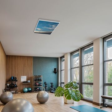 Entdecken Sie unsere vielseitigen Lichtdecken, hier in der Größe 62 x 62cm mit dem Motiv Motiv Wolken 7 - Ihre Beleuchtungslösung für jede Umgebung Beleuchten Sie Ihren Raum nicht nur, sondern schaffen Sie Atmosphäre! Die banjado Lichtdecke verwandelt jeden Ort, ob zu Hause, in Praxen, Büros oder Studios in eine Wohlfühloase. Unsere einzelnen Elemente haben eine genormte Einheitsgröße von 62 x 62cm und können somit in jede gängige Rasterdecken verbaut werden. So finden Sie Ihre passende Ausführung: Gern helfen wir Ihnen, die passende Ausführung zu wählen. Hierfür muss die aktuelle Gegebenheit Ihrer Decke oder Wand beachtet werden. Haben Sie bereits eine Rasterdecke (auch Odenwalddecke genannt)? Hier bestellen Sie lediglich das Motiv + Beleuchtungspanel, denn beides wird in die bereits vorhandene Decke eingelegt. Haben Sie eine glatte Decke mit Lichtauslass oder möchten die Lichtdecke an der Wand befestigen? Hier bestellen Sie bitte Motiv + Beleuchtungspanel + Deckenbefestigung, eine Aufbauanleitung liegt immer bei. Die Lichtdecke kann sowohl an der Decke als auch an der Wand montiert werden, perfekt für kreative Lichtakzente oder alternative Beleuchtungslösungen. Haben Sie bereits eine Lichtdecke und möchten nur das Motiv wechseln? Hier bestellen Sie bitte nur Motiv, der Wechsel ist denkbar einfach. Der Aufbau Ihrer banjado Lichtdecke gestaltet sich unkompliziert, dank einer verständlichen Anleitung, die Ihnen Schritt für Schritt durch den Montageprozess hilft. Für die endgültige Installation und den sicheren Anschluss empfehlen wir die Hinzuziehung eines Fachmanns, um die optimale Funktion und Sicherheit Ihrer Beleuchtung zu gewährleisten. Falls Sie einen Fachmann für die Installation benötigen, geben Sie uns gern Bescheid, wir vermitteln Ihnen gern einen geeigneten Ansprechpartner aus Ihrer Nähe. Steuerung: Steigern Sie Ihr Beleuchtungserlebnis mit der nahtlosen Integration in Ihr Smart Home. Durch die Kompatibilität mit der SmartLife App, Alexa und Google Assistant wird Ihr Smartphone zur zentralen Steuerungseinheit. Ihr Handy fungiert hierbei sozusagen als Fernbedienung. Legen Sie individuelle Lichtszenen in der App fest, die bei Aktivierung über den Wand-Ein-/Ausschalter immer wieder abgerufen werden können ohne Handy. Mit der Szenenfunktion in der Smart App können Sie die Beleuchtung personalisieren und steuern, sodass sie auf Ihre individuellen Bedürfnisse, Tagesrhythmus und Stimmung zugeschnitten ist. Beispielsweise können Sie sich in der Morgendämmerung durch ein sanftes Licht wecken lassen oder das Licht der Praxis werktags um 7 Uhr automatisch einschalten lassen. Dieses kann dann natürlich auch zu einer bestimmten Zeit automatisch ausgeschaltet werden. Motivwahl: Diese einzigartige Lichtdecke zeichnet sich durch ihre Fähigkeit aus, die Lichtfarbe je nach gewähltem Motiv anzupassen - ein Baum wirft ein sanftes grünes Licht, während eine Wolkendecke Ihren Raum in ein beruhigendes blaues Leuchten hüllt. Berücksichtigen Sie dies bitte bei Ihrer Motivauswahl. Sie können das Motiv jederzeit ohne großen Aufwand austauschen, ob nach Jahreszeit oder anderem Anlass, unsere Auswahl lässt kaum Wünsche offen. Wir fertigen Ihnen gern eine personalisierte Lichtdecke mit einem eigenen Motiv oder Logo oder Foto, schreiben Sie uns jederzeit an. Technische Daten: Das Motiv ist auf einer 4mm starken Acrylglas Scheibe aufgebracht, das Gesamtgewicht Ihrer Ausführung beträgt 4,9kg. Die Farbtemperatur lässt sich frei einstellen von 3000 bis 6000 Kelvin, damit können Sie stufenlos zwischen warmweiß, neutralweiß und kaltweiß wählen. Die Gesamtleistung bei Ihrer gewählten Ausführung beträgt 40W. Der Lichtstrom beträgt 3600 Lumen, die Nennspannung 230 V. Die Lichtdecke ist mit Schutzart IP20 für den Innenbereich konzipiert und sollte nicht im Nassbereich verwendet werden.