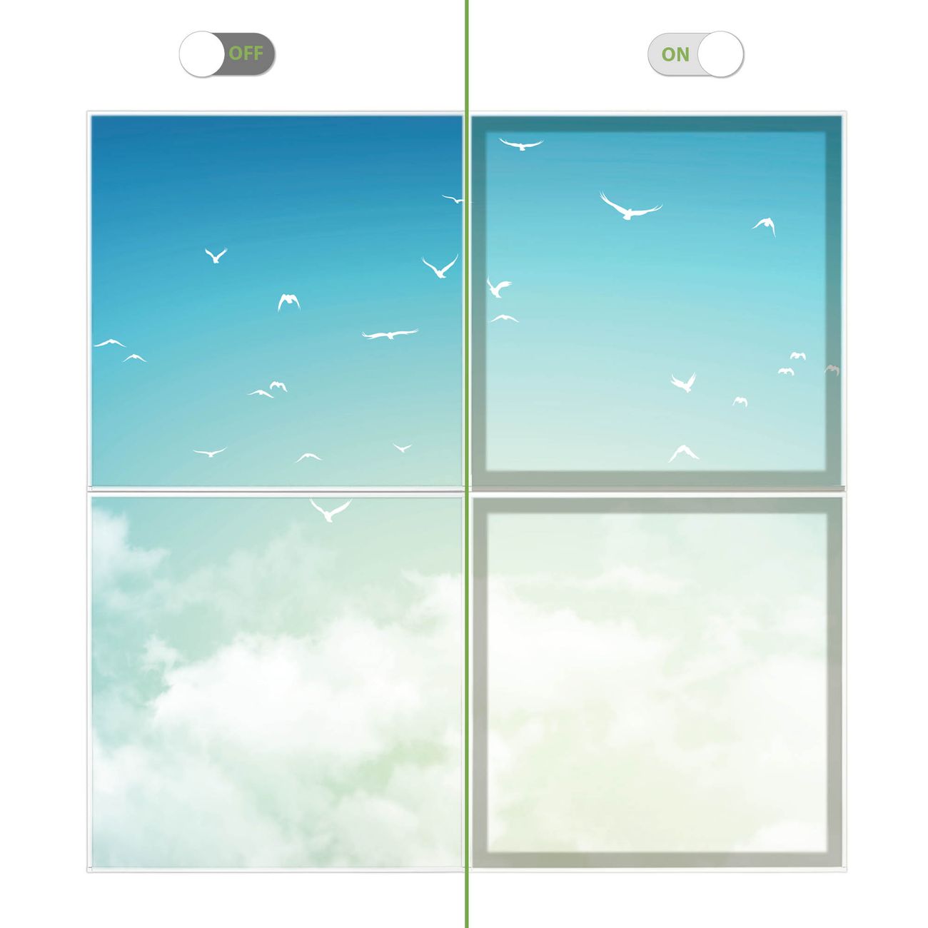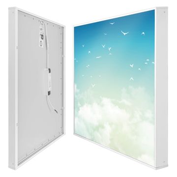 Entdecken Sie unsere vielseitigen Lichtdecken, hier in der Größe 124 x 124cm mit dem Motiv Motiv Wolken 8 - Ihre Beleuchtungslösung für jede Umgebung Beleuchten Sie Ihren Raum nicht nur, sondern schaffen Sie Atmosphäre! Die banjado Lichtdecke verwandelt jeden Ort, ob zu Hause, in Praxen, Büros oder Studios in eine Wohlfühloase. Unsere einzelnen Elemente haben eine genormte Einheitsgröße von 62 x 62cm und können somit in jede gängige Rasterdecken verbaut werden. So finden Sie Ihre passende Ausführung: Gern helfen wir Ihnen, die passende Ausführung zu wählen. Hierfür muss die aktuelle Gegebenheit Ihrer Decke oder Wand beachtet werden. Haben Sie bereits eine Rasterdecke (auch Odenwalddecke genannt)? Hier bestellen Sie lediglich das Motiv + Beleuchtungspanel, denn beides wird in die bereits vorhandene Decke eingelegt. Haben Sie eine glatte Decke mit Lichtauslass oder möchten die Lichtdecke an der Wand befestigen? Hier bestellen Sie bitte Motiv + Beleuchtungspanel + Deckenbefestigung, eine Aufbauanleitung liegt immer bei. Die Lichtdecke kann sowohl an der Decke als auch an der Wand montiert werden, perfekt für kreative Lichtakzente oder alternative Beleuchtungslösungen. Haben Sie bereits eine Lichtdecke und möchten nur das Motiv wechseln? Hier bestellen Sie bitte nur Motiv, der Wechsel ist denkbar einfach. Der Aufbau Ihrer banjado Lichtdecke gestaltet sich unkompliziert, dank einer verständlichen Anleitung, die Ihnen Schritt für Schritt durch den Montageprozess hilft. Für die endgültige Installation und den sicheren Anschluss empfehlen wir die Hinzuziehung eines Fachmanns, um die optimale Funktion und Sicherheit Ihrer Beleuchtung zu gewährleisten. Falls Sie einen Fachmann für die Installation benötigen, geben Sie uns gern Bescheid, wir vermitteln Ihnen gern einen geeigneten Ansprechpartner aus Ihrer Nähe. Steuerung: Steigern Sie Ihr Beleuchtungserlebnis mit der nahtlosen Integration in Ihr Smart Home. Durch die Kompatibilität mit der SmartLife App, Alexa und Google Assistant wird Ihr Smartphone zur zentralen Steuerungseinheit. Ihr Handy fungiert hierbei sozusagen als Fernbedienung. Legen Sie individuelle Lichtszenen in der App fest, die bei Aktivierung über den Wand-Ein-/Ausschalter immer wieder abgerufen werden können ohne Handy. Mit der Szenenfunktion in der Smart App können Sie die Beleuchtung personalisieren und steuern, sodass sie auf Ihre individuellen Bedürfnisse, Tagesrhythmus und Stimmung zugeschnitten ist. Beispielsweise können Sie sich in der Morgendämmerung durch ein sanftes Licht wecken lassen oder das Licht der Praxis werktags um 7 Uhr automatisch einschalten lassen. Dieses kann dann natürlich auch zu einer bestimmten Zeit automatisch ausgeschaltet werden. Motivwahl: Diese einzigartige Lichtdecke zeichnet sich durch ihre Fähigkeit aus, die Lichtfarbe je nach gewähltem Motiv anzupassen - ein Baum wirft ein sanftes grünes Licht, während eine Wolkendecke Ihren Raum in ein beruhigendes blaues Leuchten hüllt. Berücksichtigen Sie dies bitte bei Ihrer Motivauswahl. Sie können das Motiv jederzeit ohne großen Aufwand austauschen, ob nach Jahreszeit oder anderem Anlass, unsere Auswahl lässt kaum Wünsche offen. Wir fertigen Ihnen gern eine personalisierte Lichtdecke mit einem eigenen Motiv oder Logo oder Foto, schreiben Sie uns jederzeit an. Technische Daten: Das Motiv ist auf einer 4mm starken Acrylglas Scheibe aufgebracht, das Gesamtgewicht Ihrer Ausführung beträgt 17,7kg. Die Farbtemperatur lässt sich frei einstellen von 3000 bis 6000 Kelvin, damit können Sie stufenlos zwischen warmweiß, neutralweiß und kaltweiß wählen. Die Gesamtleistung bei Ihrer gewählten Ausführung beträgt 160W. Der Lichtstrom beträgt 3600 Lumen, die Nennspannung 230 V. Die Lichtdecke ist mit Schutzart IP20 für den Innenbereich konzipiert und sollte nicht im Nassbereich verwendet werden.
