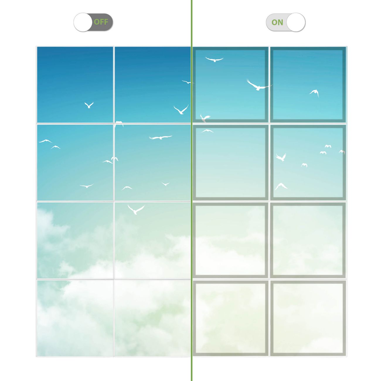 Entdecken Sie unsere vielseitigen Lichtdecken, hier in der Größe 248 x 248cm mit dem Motiv Motiv Wolken 8 - Ihre Beleuchtungslösung für jede Umgebung Beleuchten Sie Ihren Raum nicht nur, sondern schaffen Sie Atmosphäre! Die banjado Lichtdecke verwandelt jeden Ort, ob zu Hause, in Praxen, Büros oder Studios in eine Wohlfühloase. Unsere einzelnen Elemente haben eine genormte Einheitsgröße von 62 x 62cm und können somit in jede gängige Rasterdecken verbaut werden. So finden Sie Ihre passende Ausführung: Gern helfen wir Ihnen, die passende Ausführung zu wählen. Hierfür muss die aktuelle Gegebenheit Ihrer Decke oder Wand beachtet werden. Haben Sie bereits eine Rasterdecke (auch Odenwalddecke genannt)? Hier bestellen Sie lediglich das Motiv + Beleuchtungspanel, denn beides wird in die bereits vorhandene Decke eingelegt. Haben Sie eine glatte Decke mit Lichtauslass oder möchten die Lichtdecke an der Wand befestigen? Hier bestellen Sie bitte Motiv + Beleuchtungspanel + Deckenbefestigung, eine Aufbauanleitung liegt immer bei. Die Lichtdecke kann sowohl an der Decke als auch an der Wand montiert werden, perfekt für kreative Lichtakzente oder alternative Beleuchtungslösungen. Haben Sie bereits eine Lichtdecke und möchten nur das Motiv wechseln? Hier bestellen Sie bitte nur Motiv, der Wechsel ist denkbar einfach. Der Aufbau Ihrer banjado Lichtdecke gestaltet sich unkompliziert, dank einer verständlichen Anleitung, die Ihnen Schritt für Schritt durch den Montageprozess hilft. Für die endgültige Installation und den sicheren Anschluss empfehlen wir die Hinzuziehung eines Fachmanns, um die optimale Funktion und Sicherheit Ihrer Beleuchtung zu gewährleisten. Falls Sie einen Fachmann für die Installation benötigen, geben Sie uns gern Bescheid, wir vermitteln Ihnen gern einen geeigneten Ansprechpartner aus Ihrer Nähe. Steuerung: Steigern Sie Ihr Beleuchtungserlebnis mit der nahtlosen Integration in Ihr Smart Home. Durch die Kompatibilität mit der SmartLife App, Alexa und Google Assistant wird Ihr Smartphone zur zentralen Steuerungseinheit. Ihr Handy fungiert hierbei sozusagen als Fernbedienung. Legen Sie individuelle Lichtszenen in der App fest, die bei Aktivierung über den Wand-Ein-/Ausschalter immer wieder abgerufen werden können ohne Handy. Mit der Szenenfunktion in der Smart App können Sie die Beleuchtung personalisieren und steuern, sodass sie auf Ihre individuellen Bedürfnisse, Tagesrhythmus und Stimmung zugeschnitten ist. Beispielsweise können Sie sich in der Morgendämmerung durch ein sanftes Licht wecken lassen oder das Licht der Praxis werktags um 7 Uhr automatisch einschalten lassen. Dieses kann dann natürlich auch zu einer bestimmten Zeit automatisch ausgeschaltet werden. Motivwahl: Diese einzigartige Lichtdecke zeichnet sich durch ihre Fähigkeit aus, die Lichtfarbe je nach gewähltem Motiv anzupassen - ein Baum wirft ein sanftes grünes Licht, während eine Wolkendecke Ihren Raum in ein beruhigendes blaues Leuchten hüllt. Berücksichtigen Sie dies bitte bei Ihrer Motivauswahl. Sie können das Motiv jederzeit ohne großen Aufwand austauschen, ob nach Jahreszeit oder anderem Anlass, unsere Auswahl lässt kaum Wünsche offen. Wir fertigen Ihnen gern eine personalisierte Lichtdecke mit einem eigenen Motiv oder Logo oder Foto, schreiben Sie uns jederzeit an. Technische Daten: Das Motiv ist auf einer 4mm starken Acrylglas Scheibe aufgebracht, das Gesamtgewicht Ihrer Ausführung beträgt 36,2kg. Die Farbtemperatur lässt sich frei einstellen von 3000 bis 6000 Kelvin, damit können Sie stufenlos zwischen warmweiß, neutralweiß und kaltweiß wählen. Die Gesamtleistung bei Ihrer gewählten Ausführung beträgt 640W. Der Lichtstrom beträgt 3600 Lumen, die Nennspannung 230 V. Die Lichtdecke ist mit Schutzart IP20 für den Innenbereich konzipiert und sollte nicht im Nassbereich verwendet werden.