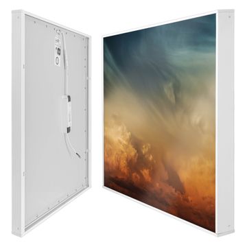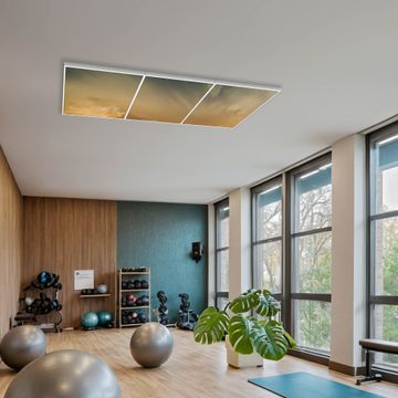 Entdecken Sie unsere vielseitigen Lichtdecken, hier in der Größe 186 x 62cm mit dem Motiv Motiv Wolken in der Dämmerung - Ihre Beleuchtungslösung für jede Umgebung Beleuchten Sie Ihren Raum nicht nur, sondern schaffen Sie Atmosphäre! Die banjado Lichtdecke verwandelt jeden Ort, ob zu Hause, in Praxen, Büros oder Studios in eine Wohlfühloase. Unsere einzelnen Elemente haben eine genormte Einheitsgröße von 62 x 62cm und können somit in jede gängige Rasterdecken verbaut werden. So finden Sie Ihre passende Ausführung: Gern helfen wir Ihnen, die passende Ausführung zu wählen. Hierfür muss die aktuelle Gegebenheit Ihrer Decke oder Wand beachtet werden. Haben Sie bereits eine Rasterdecke (auch Odenwalddecke genannt)? Hier bestellen Sie lediglich das Motiv + Beleuchtungspanel, denn beides wird in die bereits vorhandene Decke eingelegt. Haben Sie eine glatte Decke mit Lichtauslass oder möchten die Lichtdecke an der Wand befestigen? Hier bestellen Sie bitte Motiv + Beleuchtungspanel + Deckenbefestigung, eine Aufbauanleitung liegt immer bei. Die Lichtdecke kann sowohl an der Decke als auch an der Wand montiert werden, perfekt für kreative Lichtakzente oder alternative Beleuchtungslösungen. Haben Sie bereits eine Lichtdecke und möchten nur das Motiv wechseln? Hier bestellen Sie bitte nur Motiv, der Wechsel ist denkbar einfach. Der Aufbau Ihrer banjado Lichtdecke gestaltet sich unkompliziert, dank einer verständlichen Anleitung, die Ihnen Schritt für Schritt durch den Montageprozess hilft. Für die endgültige Installation und den sicheren Anschluss empfehlen wir die Hinzuziehung eines Fachmanns, um die optimale Funktion und Sicherheit Ihrer Beleuchtung zu gewährleisten. Falls Sie einen Fachmann für die Installation benötigen, geben Sie uns gern Bescheid, wir vermitteln Ihnen gern einen geeigneten Ansprechpartner aus Ihrer Nähe. Steuerung: Steigern Sie Ihr Beleuchtungserlebnis mit der nahtlosen Integration in Ihr Smart Home. Durch die Kompatibilität mit der SmartLife App, Alexa und Google Assistant wird Ihr Smartphone zur zentralen Steuerungseinheit. Ihr Handy fungiert hierbei sozusagen als Fernbedienung. Legen Sie individuelle Lichtszenen in der App fest, die bei Aktivierung über den Wand-Ein-/Ausschalter immer wieder abgerufen werden können ohne Handy. Mit der Szenenfunktion in der Smart App können Sie die Beleuchtung personalisieren und steuern, sodass sie auf Ihre individuellen Bedürfnisse, Tagesrhythmus und Stimmung zugeschnitten ist. Beispielsweise können Sie sich in der Morgendämmerung durch ein sanftes Licht wecken lassen oder das Licht der Praxis werktags um 7 Uhr automatisch einschalten lassen. Dieses kann dann natürlich auch zu einer bestimmten Zeit automatisch ausgeschaltet werden. Motivwahl: Diese einzigartige Lichtdecke zeichnet sich durch ihre Fähigkeit aus, die Lichtfarbe je nach gewähltem Motiv anzupassen - ein Baum wirft ein sanftes grünes Licht, während eine Wolkendecke Ihren Raum in ein beruhigendes blaues Leuchten hüllt. Berücksichtigen Sie dies bitte bei Ihrer Motivauswahl. Sie können das Motiv jederzeit ohne großen Aufwand austauschen, ob nach Jahreszeit oder anderem Anlass, unsere Auswahl lässt kaum Wünsche offen. Wir fertigen Ihnen gern eine personalisierte Lichtdecke mit einem eigenen Motiv oder Logo oder Foto, schreiben Sie uns jederzeit an. Technische Daten: Das Motiv ist auf einer 4mm starken Acrylglas Scheibe aufgebracht, das Gesamtgewicht Ihrer Ausführung beträgt 14,8kg. Die Farbtemperatur lässt sich frei einstellen von 3000 bis 6000 Kelvin, damit können Sie stufenlos zwischen warmweiß, neutralweiß und kaltweiß wählen. Die Gesamtleistung bei Ihrer gewählten Ausführung beträgt 120W. Der Lichtstrom beträgt 3600 Lumen, die Nennspannung 230 V. Die Lichtdecke ist mit Schutzart IP20 für den Innenbereich konzipiert und sollte nicht im Nassbereich verwendet werden.
