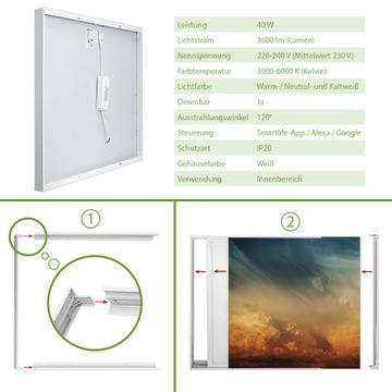banjado Motivlichtdecke LED Lampe Smart Home verschiedene Größen Motiv Wolken in der Dämmerung