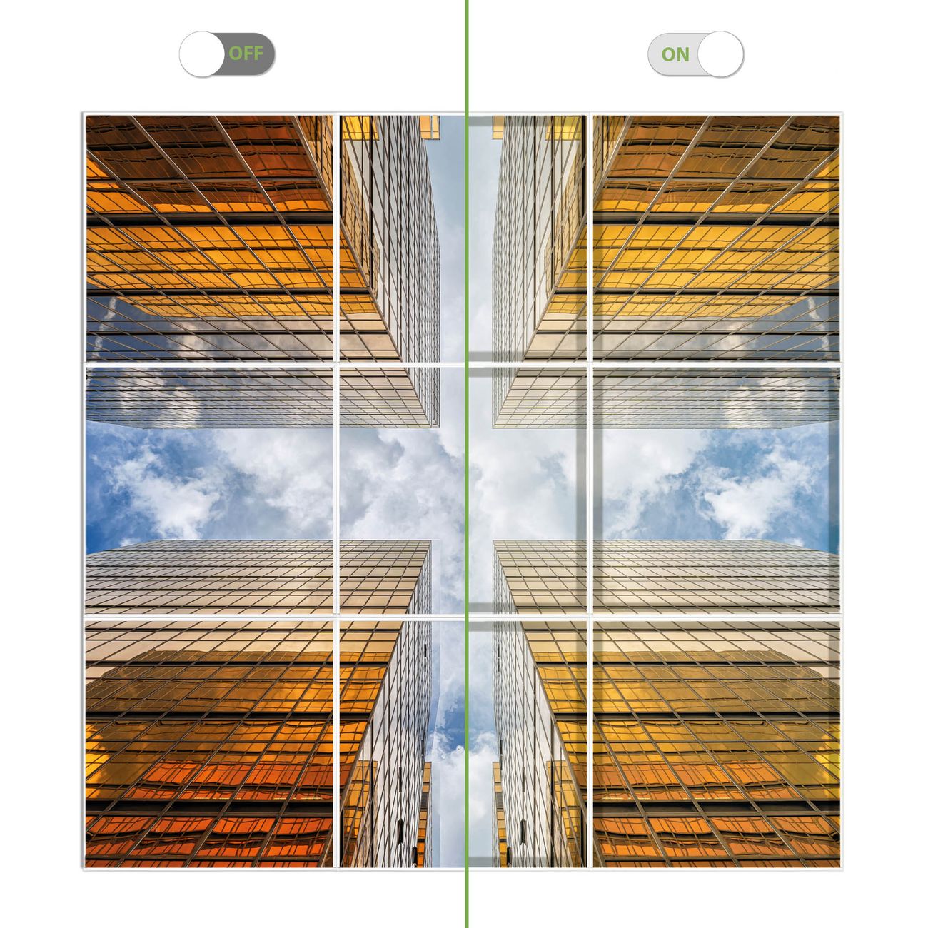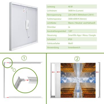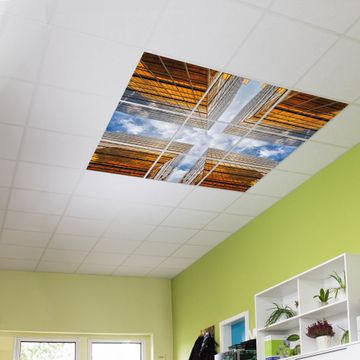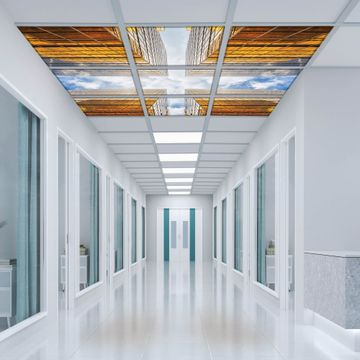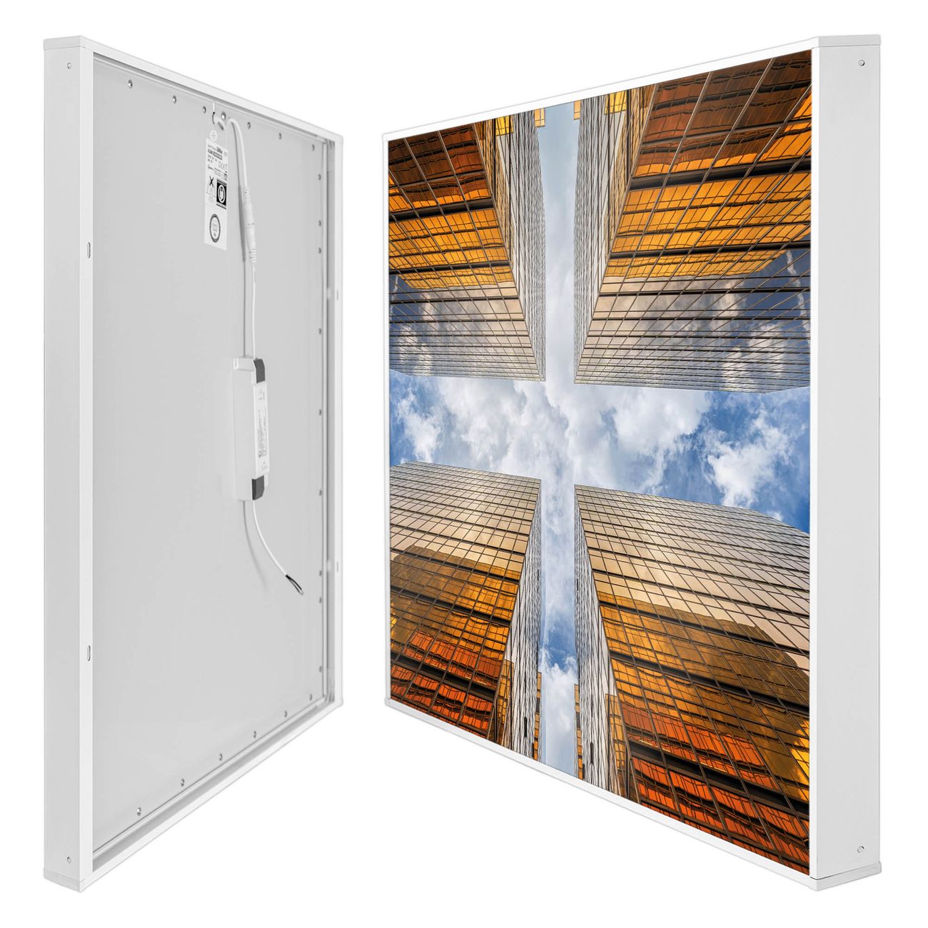Entdecken Sie unsere vielseitigen Lichtdecken, hier in der Größe 186 x 186cm mit dem Motiv Motiv Wolkenkratzer 2 - Ihre Beleuchtungslösung für jede Umgebung Beleuchten Sie Ihren Raum nicht nur, sondern schaffen Sie Atmosphäre! Die banjado Lichtdecke verwandelt jeden Ort, ob zu Hause, in Praxen, Büros oder Studios in eine Wohlfühloase. Unsere einzelnen Elemente haben eine genormte Einheitsgröße von 62 x 62cm und können somit in jede gängige Rasterdecken verbaut werden. So finden Sie Ihre passende Ausführung: Gern helfen wir Ihnen, die passende Ausführung zu wählen. Hierfür muss die aktuelle Gegebenheit Ihrer Decke oder Wand beachtet werden. Haben Sie bereits eine Rasterdecke (auch Odenwalddecke genannt)? Hier bestellen Sie lediglich das Motiv + Beleuchtungspanel, denn beides wird in die bereits vorhandene Decke eingelegt. Haben Sie eine glatte Decke mit Lichtauslass oder möchten die Lichtdecke an der Wand befestigen? Hier bestellen Sie bitte Motiv + Beleuchtungspanel + Deckenbefestigung, eine Aufbauanleitung liegt immer bei. Die Lichtdecke kann sowohl an der Decke als auch an der Wand montiert werden, perfekt für kreative Lichtakzente oder alternative Beleuchtungslösungen. Haben Sie bereits eine Lichtdecke und möchten nur das Motiv wechseln? Hier bestellen Sie bitte nur Motiv, der Wechsel ist denkbar einfach. Der Aufbau Ihrer banjado Lichtdecke gestaltet sich unkompliziert, dank einer verständlichen Anleitung, die Ihnen Schritt für Schritt durch den Montageprozess hilft. Für die endgültige Installation und den sicheren Anschluss empfehlen wir die Hinzuziehung eines Fachmanns, um die optimale Funktion und Sicherheit Ihrer Beleuchtung zu gewährleisten. Falls Sie einen Fachmann für die Installation benötigen, geben Sie uns gern Bescheid, wir vermitteln Ihnen gern einen geeigneten Ansprechpartner aus Ihrer Nähe. Steuerung: Steigern Sie Ihr Beleuchtungserlebnis mit der nahtlosen Integration in Ihr Smart Home. Durch die Kompatibilität mit der SmartLife App, Alexa und Google Assistant wird Ihr Smartphone zur zentralen Steuerungseinheit. Ihr Handy fungiert hierbei sozusagen als Fernbedienung. Legen Sie individuelle Lichtszenen in der App fest, die bei Aktivierung über den Wand-Ein-/Ausschalter immer wieder abgerufen werden können ohne Handy. Mit der Szenenfunktion in der Smart App können Sie die Beleuchtung personalisieren und steuern, sodass sie auf Ihre individuellen Bedürfnisse, Tagesrhythmus und Stimmung zugeschnitten ist. Beispielsweise können Sie sich in der Morgendämmerung durch ein sanftes Licht wecken lassen oder das Licht der Praxis werktags um 7 Uhr automatisch einschalten lassen. Dieses kann dann natürlich auch zu einer bestimmten Zeit automatisch ausgeschaltet werden. Motivwahl: Diese einzigartige Lichtdecke zeichnet sich durch ihre Fähigkeit aus, die Lichtfarbe je nach gewähltem Motiv anzupassen - ein Baum wirft ein sanftes grünes Licht, während eine Wolkendecke Ihren Raum in ein beruhigendes blaues Leuchten hüllt. Berücksichtigen Sie dies bitte bei Ihrer Motivauswahl. Sie können das Motiv jederzeit ohne großen Aufwand austauschen, ob nach Jahreszeit oder anderem Anlass, unsere Auswahl lässt kaum Wünsche offen. Wir fertigen Ihnen gern eine personalisierte Lichtdecke mit einem eigenen Motiv oder Logo oder Foto, schreiben Sie uns jederzeit an. Technische Daten: Das Motiv ist auf einer 4mm starken Acrylglas Scheibe aufgebracht, das Gesamtgewicht Ihrer Ausführung beträgt 20,4kg. Die Farbtemperatur lässt sich frei einstellen von 3000 bis 6000 Kelvin, damit können Sie stufenlos zwischen warmweiß, neutralweiß und kaltweiß wählen. Die Gesamtleistung bei Ihrer gewählten Ausführung beträgt 360W. Der Lichtstrom beträgt 3600 Lumen, die Nennspannung 230 V. Die Lichtdecke ist mit Schutzart IP20 für den Innenbereich konzipiert und sollte nicht im Nassbereich verwendet werden.
