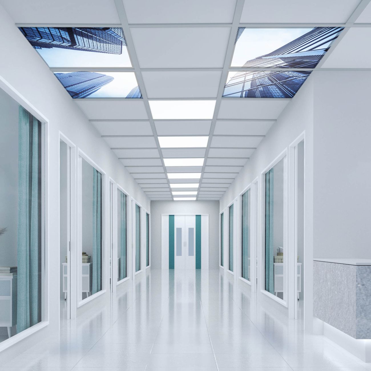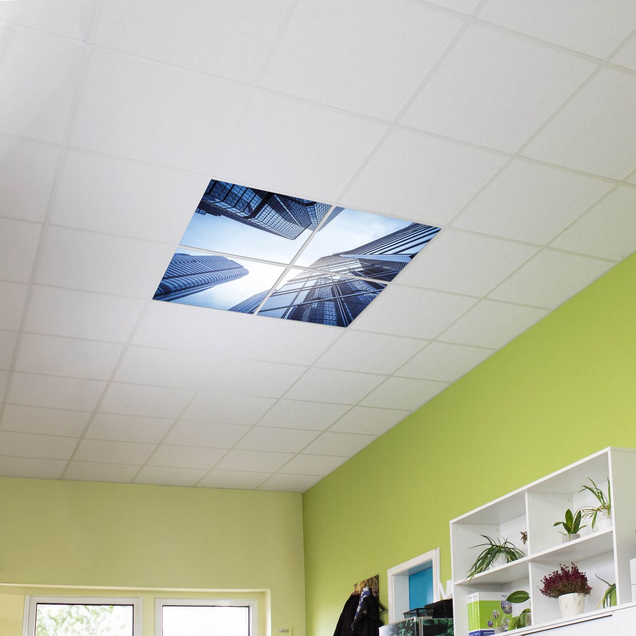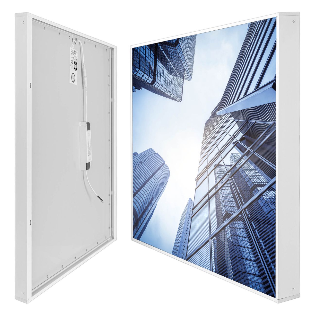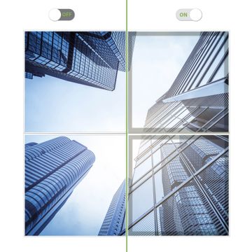 Entdecken Sie unsere vielseitigen Lichtdecken, hier in der Größe 124 x 124cm mit dem Motiv Motiv Wolkenkratzer - Ihre Beleuchtungslösung für jede Umgebung Beleuchten Sie Ihren Raum nicht nur, sondern schaffen Sie Atmosphäre! Die banjado Lichtdecke verwandelt jeden Ort, ob zu Hause, in Praxen, Büros oder Studios in eine Wohlfühloase. Unsere einzelnen Elemente haben eine genormte Einheitsgröße von 62 x 62cm und können somit in jede gängige Rasterdecken verbaut werden. So finden Sie Ihre passende Ausführung: Gern helfen wir Ihnen, die passende Ausführung zu wählen. Hierfür muss die aktuelle Gegebenheit Ihrer Decke oder Wand beachtet werden. Haben Sie bereits eine Rasterdecke (auch Odenwalddecke genannt)? Hier bestellen Sie lediglich das Motiv + Beleuchtungspanel, denn beides wird in die bereits vorhandene Decke eingelegt. Haben Sie eine glatte Decke mit Lichtauslass oder möchten die Lichtdecke an der Wand befestigen? Hier bestellen Sie bitte Motiv + Beleuchtungspanel + Deckenbefestigung, eine Aufbauanleitung liegt immer bei. Die Lichtdecke kann sowohl an der Decke als auch an der Wand montiert werden, perfekt für kreative Lichtakzente oder alternative Beleuchtungslösungen. Haben Sie bereits eine Lichtdecke und möchten nur das Motiv wechseln? Hier bestellen Sie bitte nur Motiv, der Wechsel ist denkbar einfach. Der Aufbau Ihrer banjado Lichtdecke gestaltet sich unkompliziert, dank einer verständlichen Anleitung, die Ihnen Schritt für Schritt durch den Montageprozess hilft. Für die endgültige Installation und den sicheren Anschluss empfehlen wir die Hinzuziehung eines Fachmanns, um die optimale Funktion und Sicherheit Ihrer Beleuchtung zu gewährleisten. Falls Sie einen Fachmann für die Installation benötigen, geben Sie uns gern Bescheid, wir vermitteln Ihnen gern einen geeigneten Ansprechpartner aus Ihrer Nähe. Steuerung: Steigern Sie Ihr Beleuchtungserlebnis mit der nahtlosen Integration in Ihr Smart Home. Durch die Kompatibilität mit der SmartLife App, Alexa und Google Assistant wird Ihr Smartphone zur zentralen Steuerungseinheit. Ihr Handy fungiert hierbei sozusagen als Fernbedienung. Legen Sie individuelle Lichtszenen in der App fest, die bei Aktivierung über den Wand-Ein-/Ausschalter immer wieder abgerufen werden können ohne Handy. Mit der Szenenfunktion in der Smart App können Sie die Beleuchtung personalisieren und steuern, sodass sie auf Ihre individuellen Bedürfnisse, Tagesrhythmus und Stimmung zugeschnitten ist. Beispielsweise können Sie sich in der Morgendämmerung durch ein sanftes Licht wecken lassen oder das Licht der Praxis werktags um 7 Uhr automatisch einschalten lassen. Dieses kann dann natürlich auch zu einer bestimmten Zeit automatisch ausgeschaltet werden. Motivwahl: Diese einzigartige Lichtdecke zeichnet sich durch ihre Fähigkeit aus, die Lichtfarbe je nach gewähltem Motiv anzupassen - ein Baum wirft ein sanftes grünes Licht, während eine Wolkendecke Ihren Raum in ein beruhigendes blaues Leuchten hüllt. Berücksichtigen Sie dies bitte bei Ihrer Motivauswahl. Sie können das Motiv jederzeit ohne großen Aufwand austauschen, ob nach Jahreszeit oder anderem Anlass, unsere Auswahl lässt kaum Wünsche offen. Wir fertigen Ihnen gern eine personalisierte Lichtdecke mit einem eigenen Motiv oder Logo oder Foto, schreiben Sie uns jederzeit an. Technische Daten: Das Motiv ist auf einer 4mm starken Acrylglas Scheibe aufgebracht, das Gesamtgewicht Ihrer Ausführung beträgt 17,7kg. Die Farbtemperatur lässt sich frei einstellen von 3000 bis 6000 Kelvin, damit können Sie stufenlos zwischen warmweiß, neutralweiß und kaltweiß wählen. Die Gesamtleistung bei Ihrer gewählten Ausführung beträgt 160W. Der Lichtstrom beträgt 3600 Lumen, die Nennspannung 230 V. Die Lichtdecke ist mit Schutzart IP20 für den Innenbereich konzipiert und sollte nicht im Nassbereich verwendet werden.