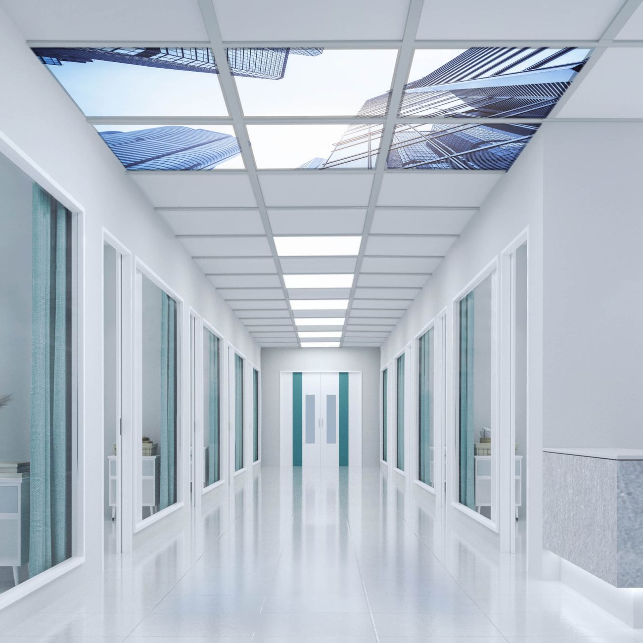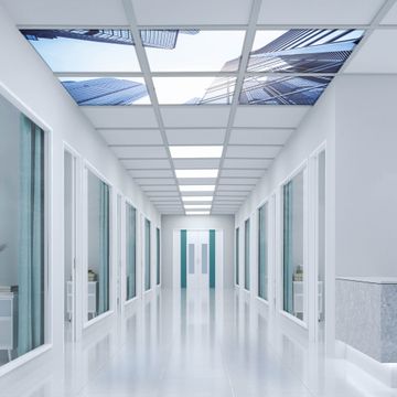 Entdecken Sie unsere vielseitigen Lichtdecken, hier in der Größe 186 x 124cm mit dem Motiv Motiv Wolkenkratzer - Ihre Beleuchtungslösung für jede Umgebung Beleuchten Sie Ihren Raum nicht nur, sondern schaffen Sie Atmosphäre! Die banjado Lichtdecke verwandelt jeden Ort, ob zu Hause, in Praxen, Büros oder Studios in eine Wohlfühloase. Unsere einzelnen Elemente haben eine genormte Einheitsgröße von 62 x 62cm und können somit in jede gängige Rasterdecken verbaut werden. So finden Sie Ihre passende Ausführung: Gern helfen wir Ihnen, die passende Ausführung zu wählen. Hierfür muss die aktuelle Gegebenheit Ihrer Decke oder Wand beachtet werden. Haben Sie bereits eine Rasterdecke (auch Odenwalddecke genannt)? Hier bestellen Sie lediglich das Motiv + Beleuchtungspanel, denn beides wird in die bereits vorhandene Decke eingelegt. Haben Sie eine glatte Decke mit Lichtauslass oder möchten die Lichtdecke an der Wand befestigen? Hier bestellen Sie bitte Motiv + Beleuchtungspanel + Deckenbefestigung, eine Aufbauanleitung liegt immer bei. Die Lichtdecke kann sowohl an der Decke als auch an der Wand montiert werden, perfekt für kreative Lichtakzente oder alternative Beleuchtungslösungen. Haben Sie bereits eine Lichtdecke und möchten nur das Motiv wechseln? Hier bestellen Sie bitte nur Motiv, der Wechsel ist denkbar einfach. Der Aufbau Ihrer banjado Lichtdecke gestaltet sich unkompliziert, dank einer verständlichen Anleitung, die Ihnen Schritt für Schritt durch den Montageprozess hilft. Für die endgültige Installation und den sicheren Anschluss empfehlen wir die Hinzuziehung eines Fachmanns, um die optimale Funktion und Sicherheit Ihrer Beleuchtung zu gewährleisten. Falls Sie einen Fachmann für die Installation benötigen, geben Sie uns gern Bescheid, wir vermitteln Ihnen gern einen geeigneten Ansprechpartner aus Ihrer Nähe. Steuerung: Steigern Sie Ihr Beleuchtungserlebnis mit der nahtlosen Integration in Ihr Smart Home. Durch die Kompatibilität mit der SmartLife App, Alexa und Google Assistant wird Ihr Smartphone zur zentralen Steuerungseinheit. Ihr Handy fungiert hierbei sozusagen als Fernbedienung. Legen Sie individuelle Lichtszenen in der App fest, die bei Aktivierung über den Wand-Ein-/Ausschalter immer wieder abgerufen werden können ohne Handy. Mit der Szenenfunktion in der Smart App können Sie die Beleuchtung personalisieren und steuern, sodass sie auf Ihre individuellen Bedürfnisse, Tagesrhythmus und Stimmung zugeschnitten ist. Beispielsweise können Sie sich in der Morgendämmerung durch ein sanftes Licht wecken lassen oder das Licht der Praxis werktags um 7 Uhr automatisch einschalten lassen. Dieses kann dann natürlich auch zu einer bestimmten Zeit automatisch ausgeschaltet werden. Motivwahl: Diese einzigartige Lichtdecke zeichnet sich durch ihre Fähigkeit aus, die Lichtfarbe je nach gewähltem Motiv anzupassen - ein Baum wirft ein sanftes grünes Licht, während eine Wolkendecke Ihren Raum in ein beruhigendes blaues Leuchten hüllt. Berücksichtigen Sie dies bitte bei Ihrer Motivauswahl. Sie können das Motiv jederzeit ohne großen Aufwand austauschen, ob nach Jahreszeit oder anderem Anlass, unsere Auswahl lässt kaum Wünsche offen. Wir fertigen Ihnen gern eine personalisierte Lichtdecke mit einem eigenen Motiv oder Logo oder Foto, schreiben Sie uns jederzeit an. Technische Daten: Das Motiv ist auf einer 4mm starken Acrylglas Scheibe aufgebracht, das Gesamtgewicht Ihrer Ausführung beträgt 26,6kg. Die Farbtemperatur lässt sich frei einstellen von 3000 bis 6000 Kelvin, damit können Sie stufenlos zwischen warmweiß, neutralweiß und kaltweiß wählen. Die Gesamtleistung bei Ihrer gewählten Ausführung beträgt 240W. Der Lichtstrom beträgt 3600 Lumen, die Nennspannung 230 V. Die Lichtdecke ist mit Schutzart IP20 für den Innenbereich konzipiert und sollte nicht im Nassbereich verwendet werden.